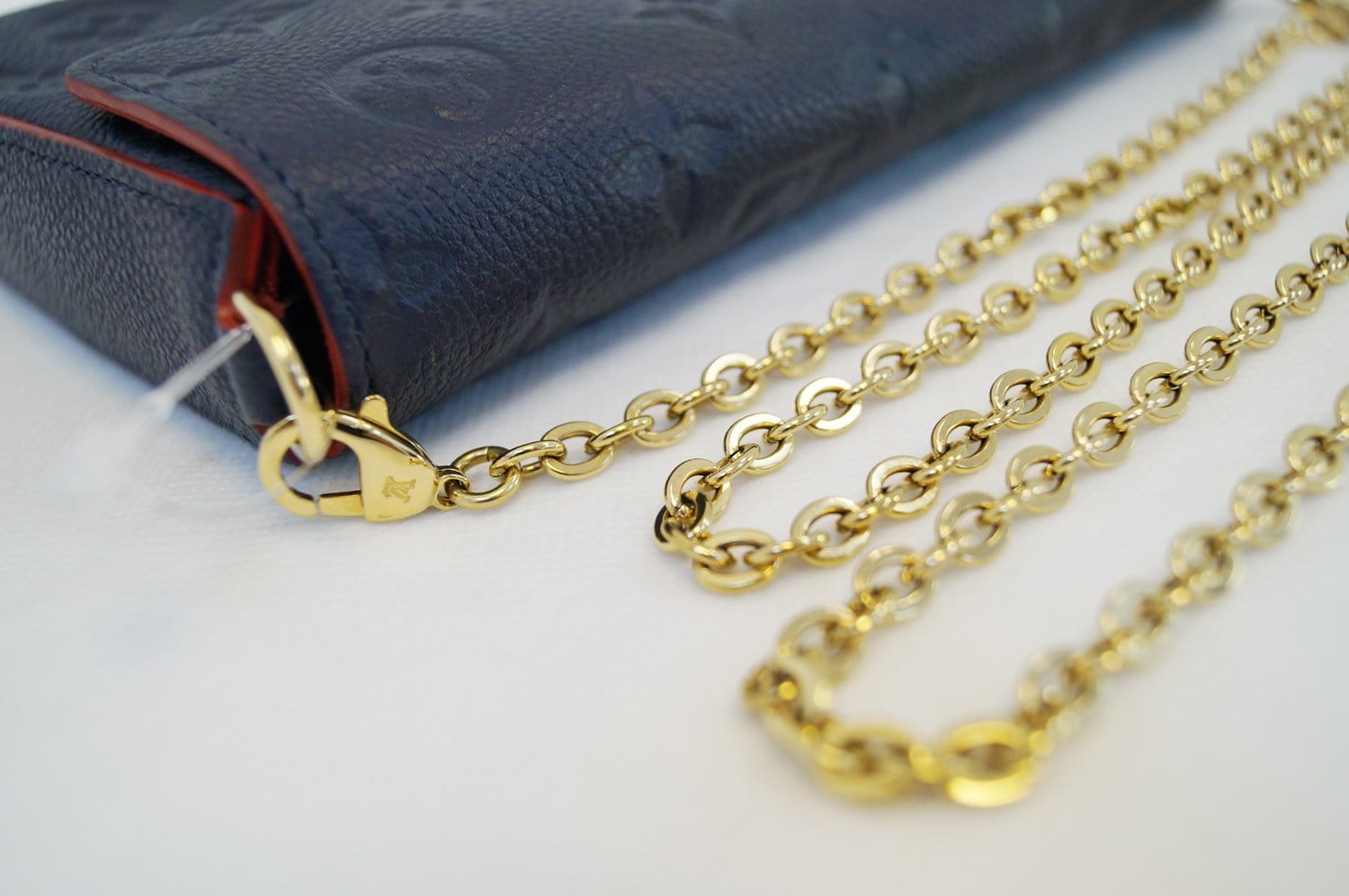 With its two removable interior pockets, the Pochette Felicie in Monogram Empreinte is the stylish solution to carry and organize your daily essentials. Much more than a wallet, it can be transformed into a glamorous shoulder bag or clutch thanks to its removable gold chain.