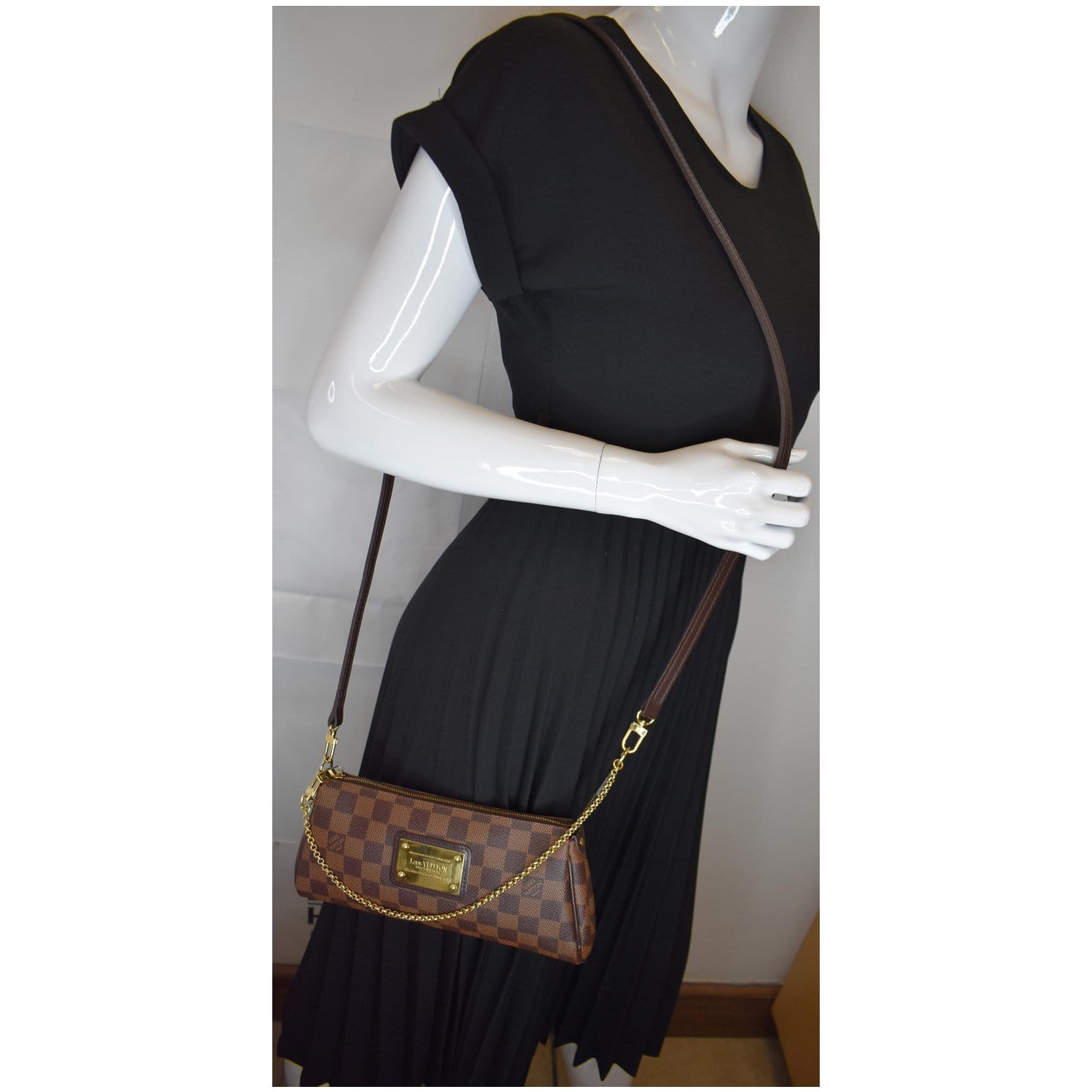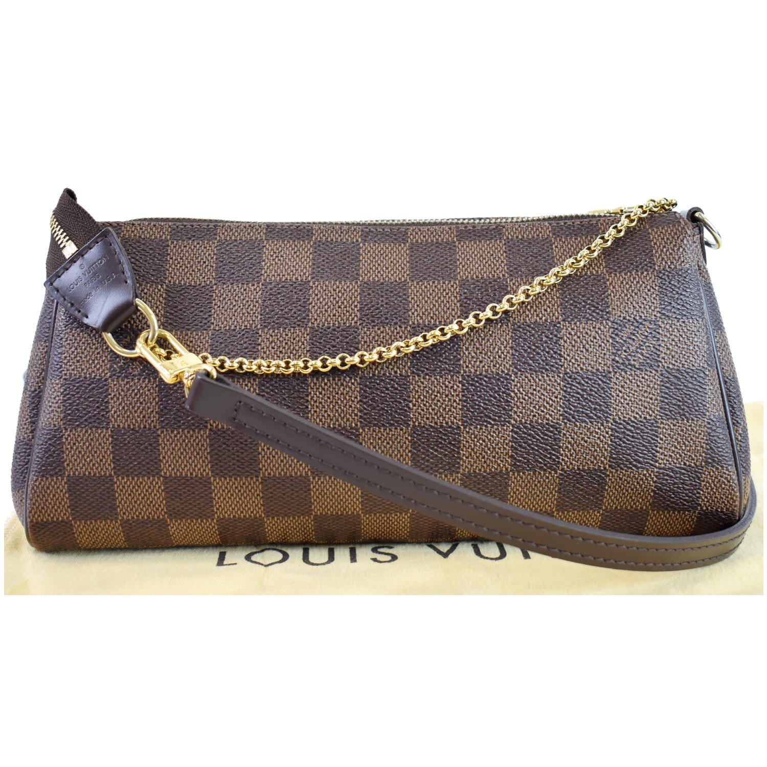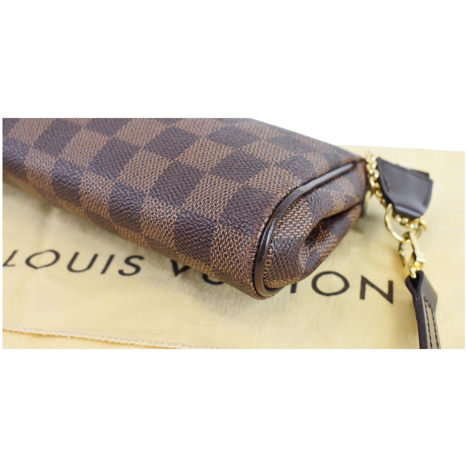 LOUIS VUITTON Pochette Eva Damier Ebene Clutch Crossbody Bag Brown