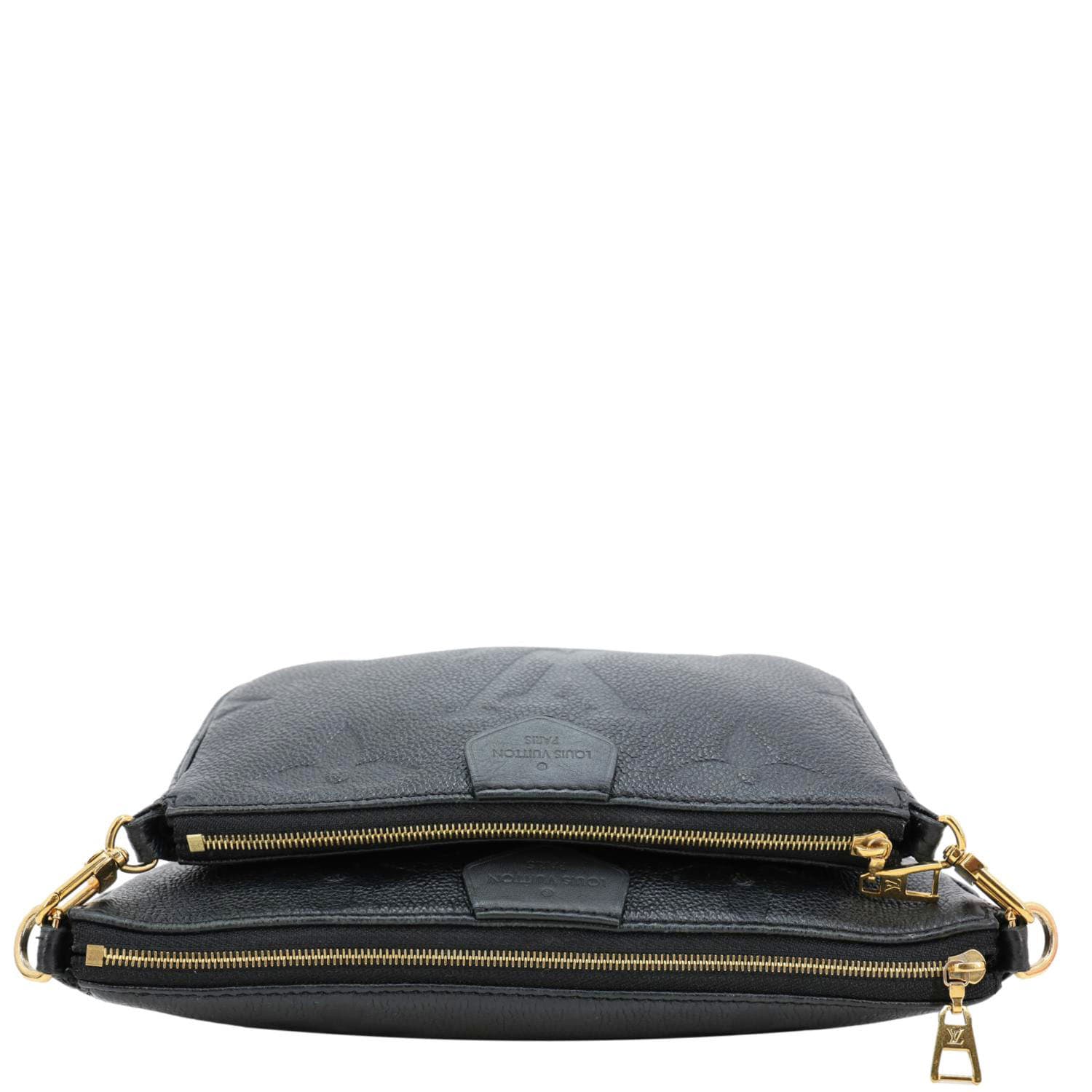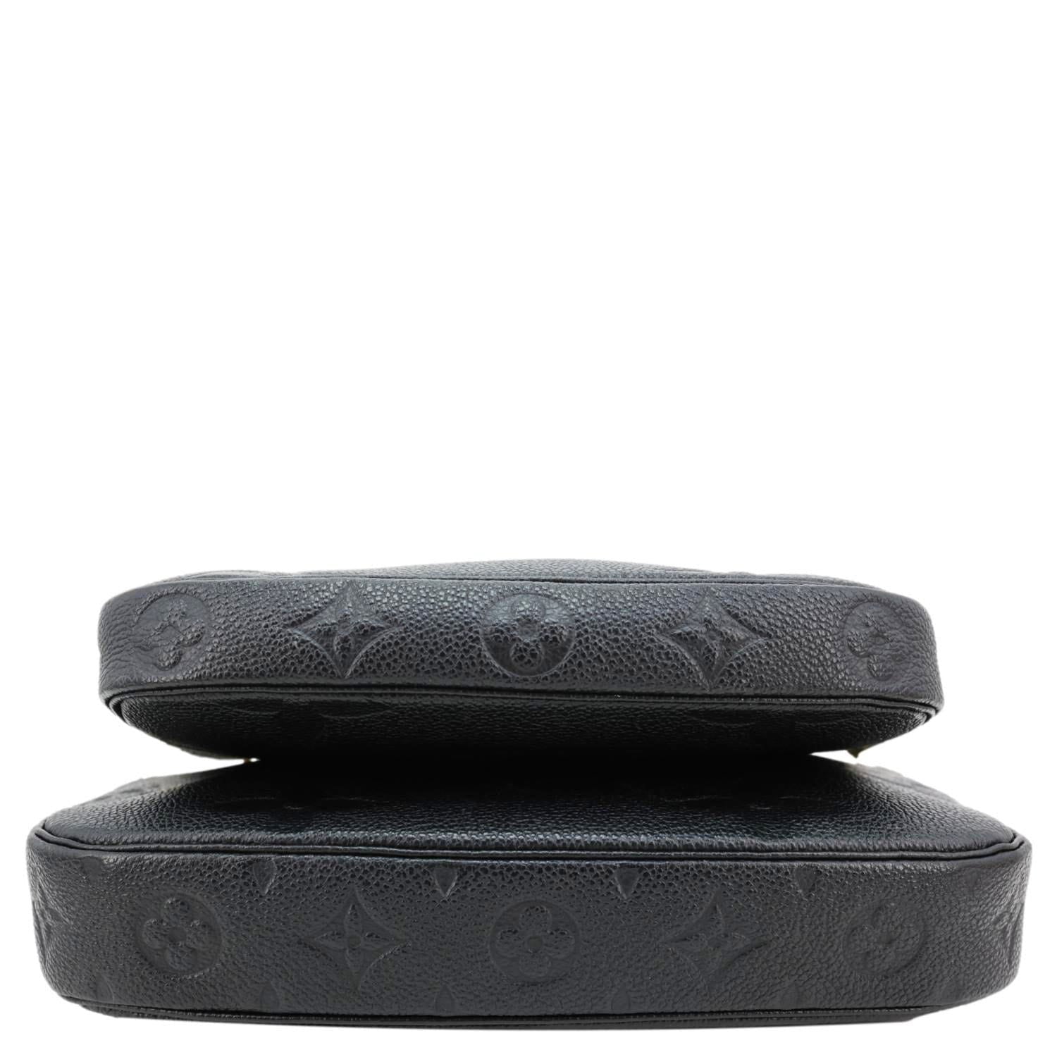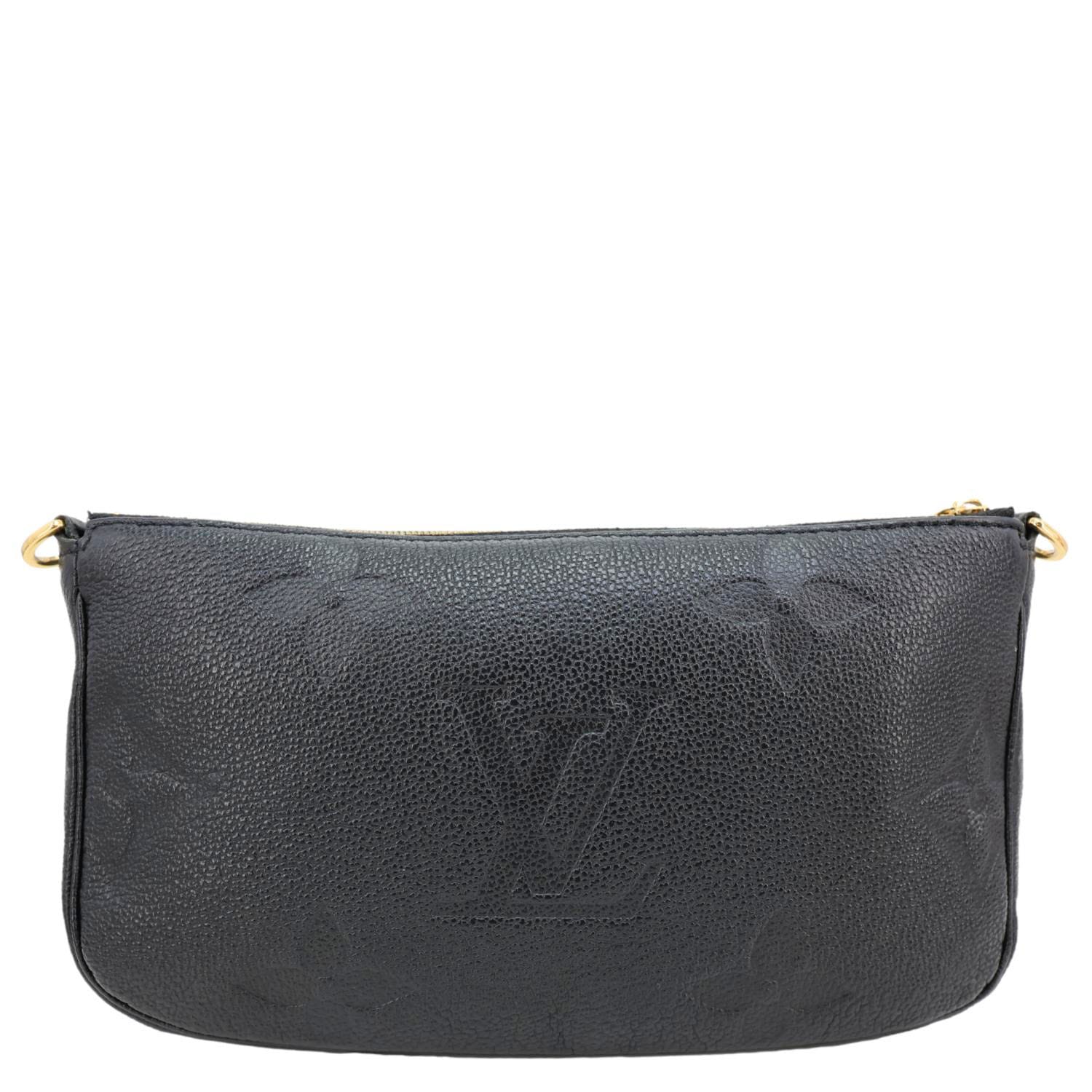 Sporty yet luxurious, this Louis Vuitton Multi Pochette Accessoires is crafted from Monogram Empreinte embossed leather in classic black with gold-tone hardware. Versatile 2-in-1 design, it features two removable pouches, a chain, and an adjustable strap for multiple styling options.