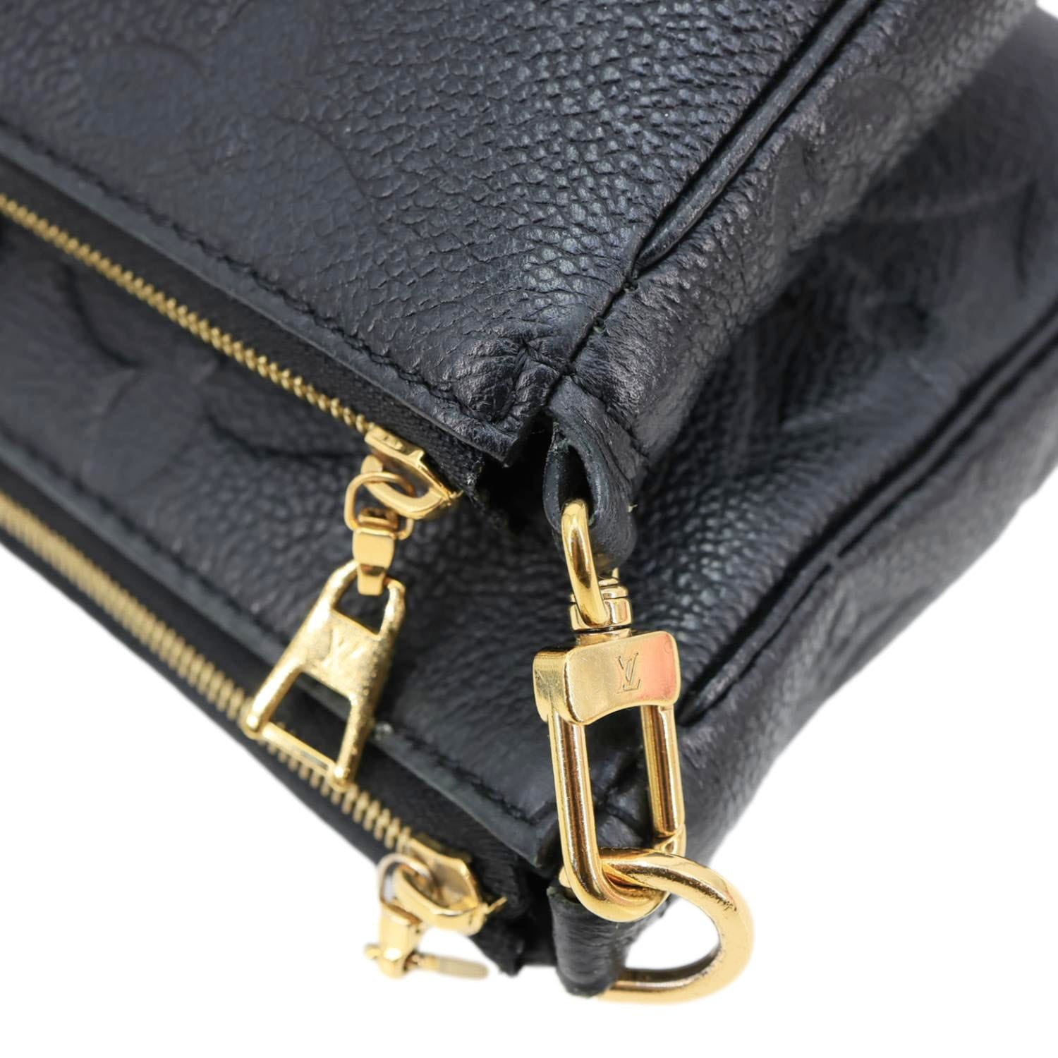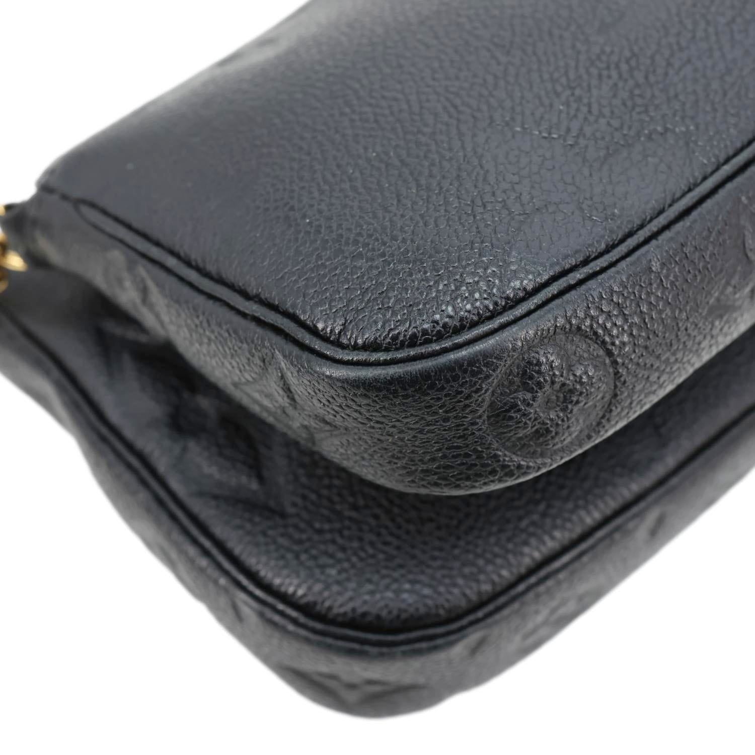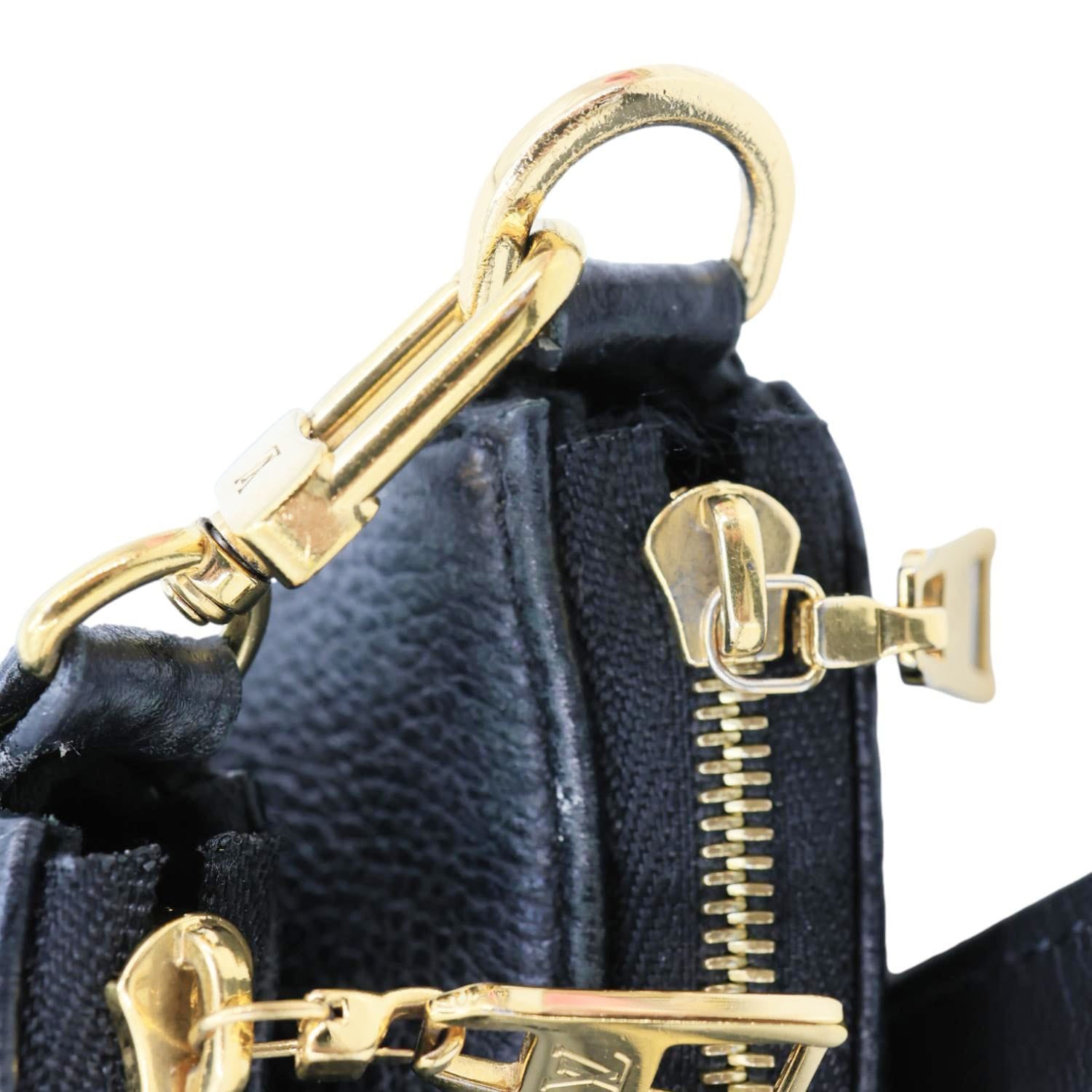 Sporty yet luxurious, this Louis Vuitton Multi Pochette Accessoires is crafted from Monogram Empreinte embossed leather in classic black with gold-tone hardware. Versatile 2-in-1 design, it features two removable pouches, a chain, and an adjustable strap for multiple styling options.