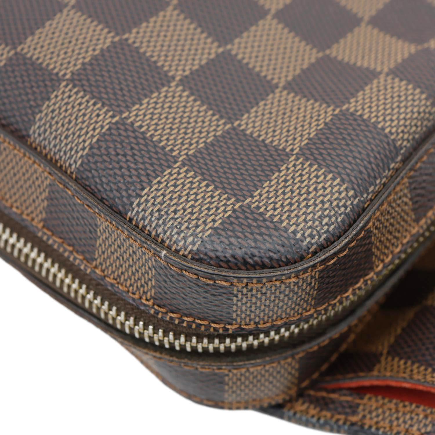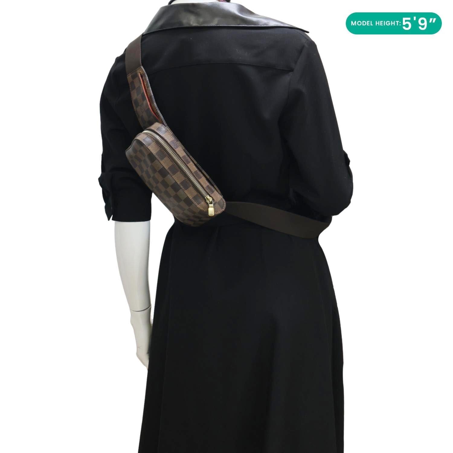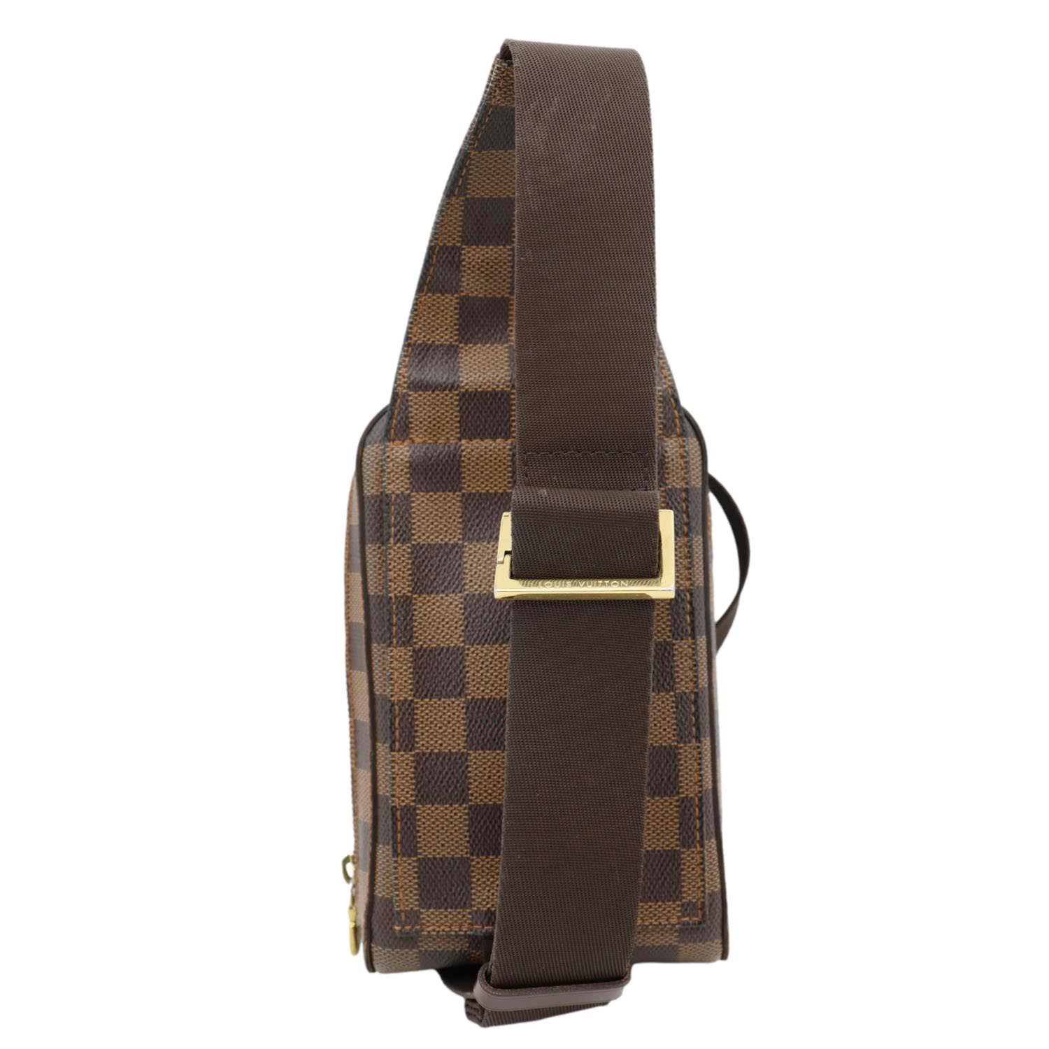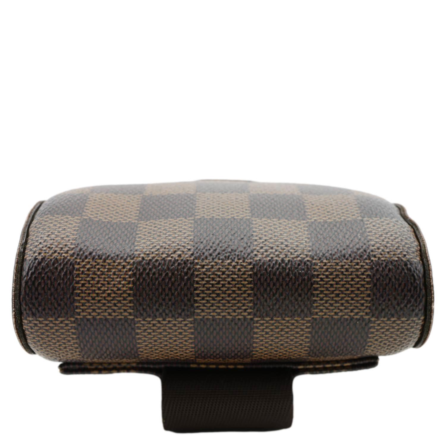 LOUIS VUITTON Geronimos Sling Damier Ebene Crossbody Bag Brown features the signature checkered canvas in a compact, hands-free sling design. Its ergonomic shape and adjustable strap make it perfect for stylish everyday convenience.