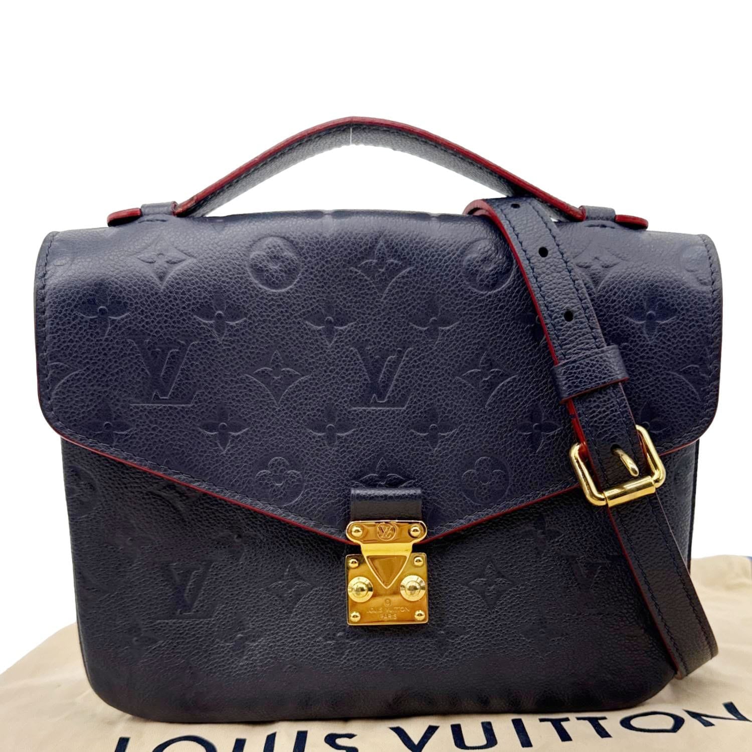 The LOUIS VUITTON Pochette Métis Crossbody in navy blue Empreinte leather exudes timeless elegance. Compact yet functional, it’s perfect for chic everyday wear.
