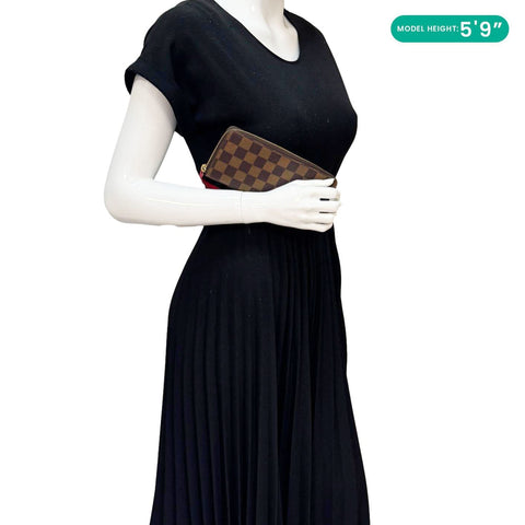 Item Details: A classic zip-around wallet crafted in Damier Ebene canvas with refined gold-tone detailing. Slim, durable, and functional,...