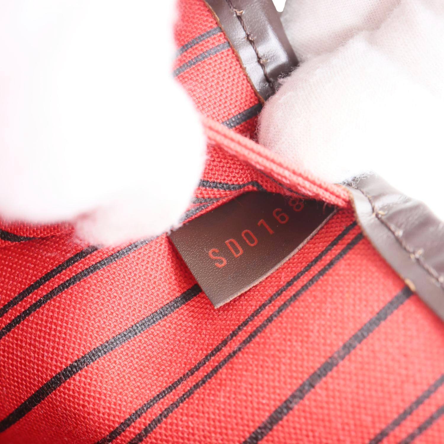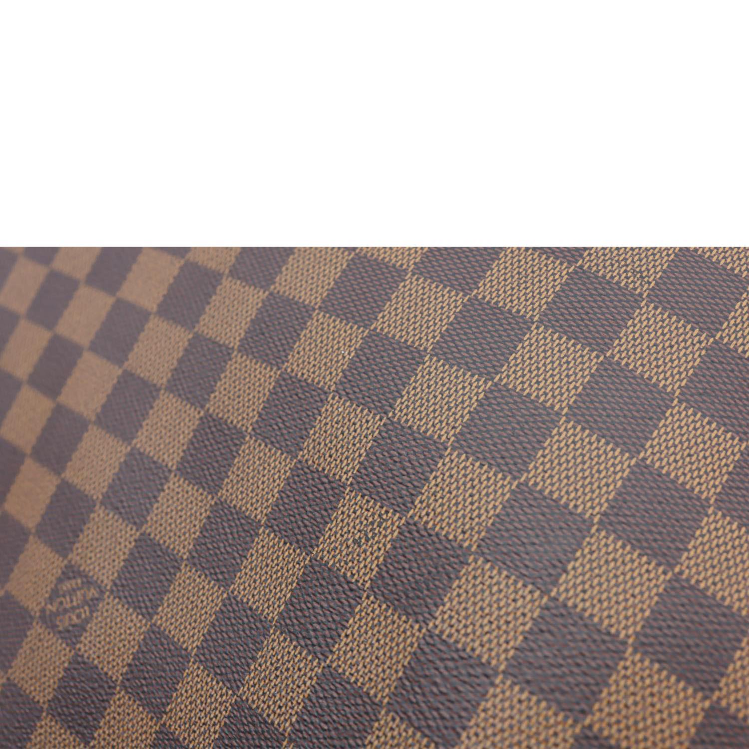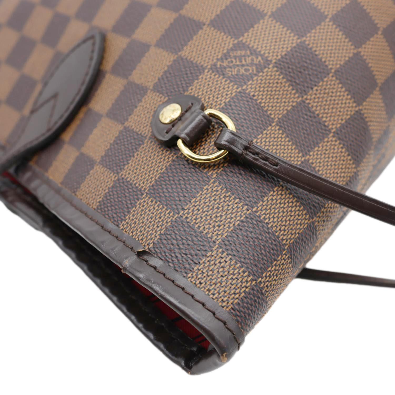 LOUIS VUITTON Neverfull MM Damier Ebene Tote Bag in Brown features the signature checkered canvas with leather trim. Spacious, stylish, and perfect for everyday versatility.