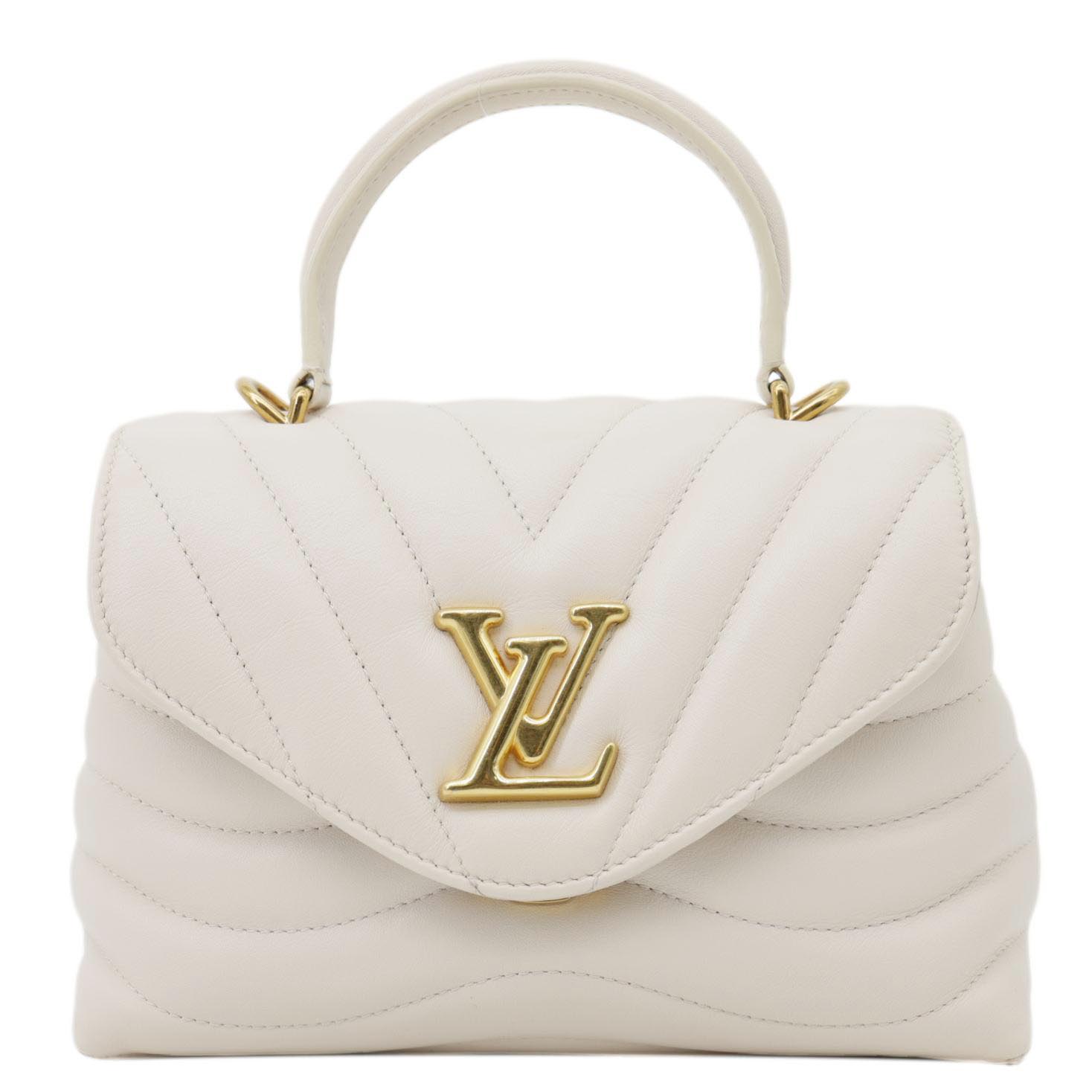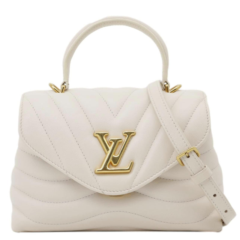 This stylish crossbody bag from LOUIS VUITTON's New Wave collection features supple calfskin leather in a chic off-white hue. The Hold Me bag's sleek design and compact size make it perfect for everyday essentials on the go.