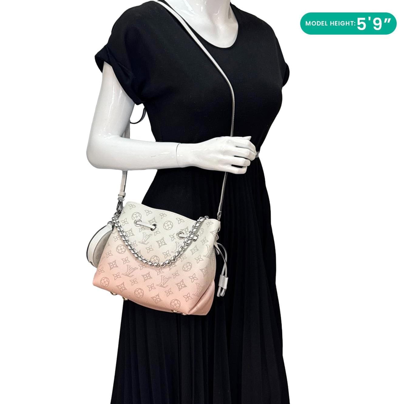 The Louis Vuitton Bella in Mahina calf leather comes in a soft lilas shade with intricate perforated monogram detailing. Its feminine bucket silhouette is paired with a braided top handle and crossbody strap. A chic and practical piece for daily elegance.