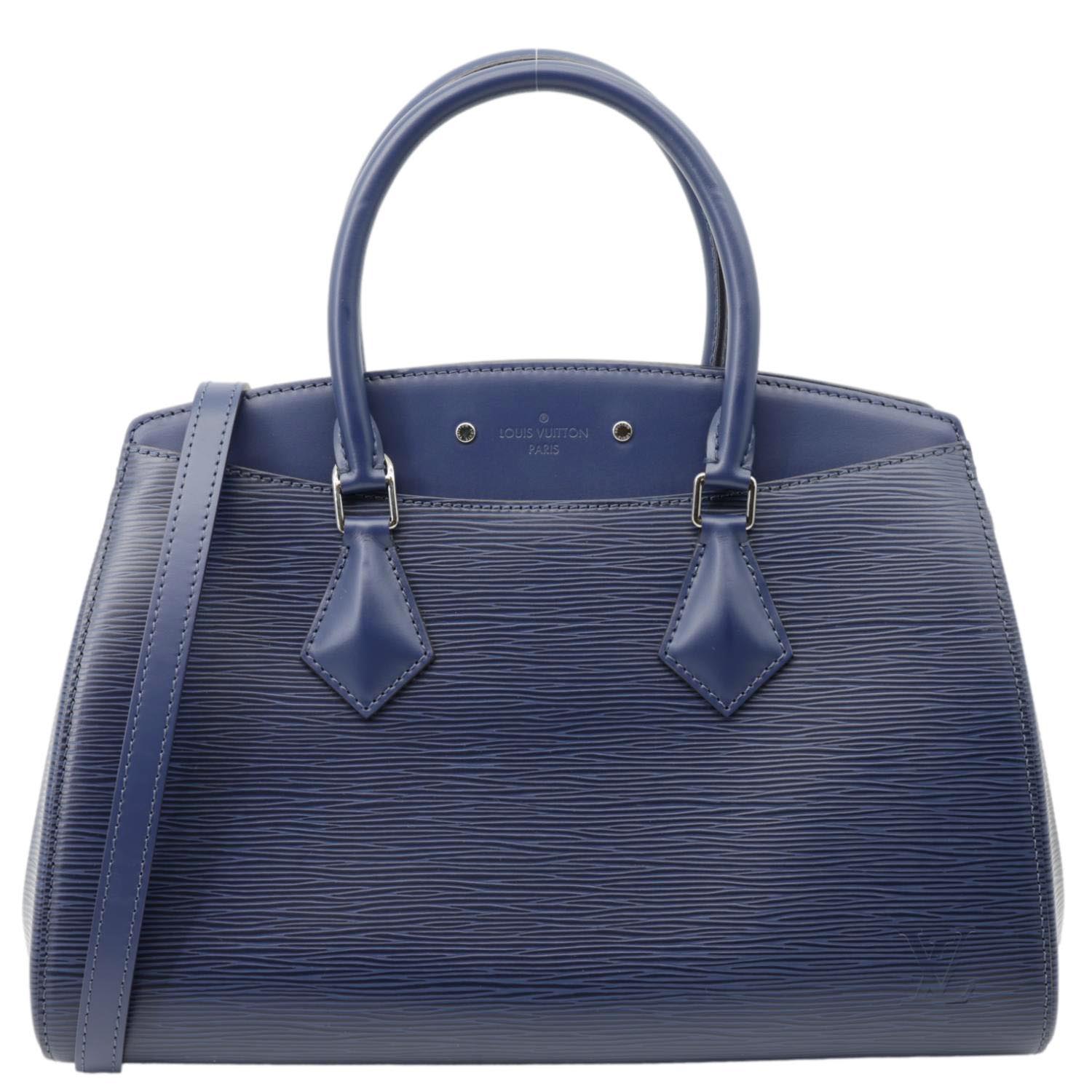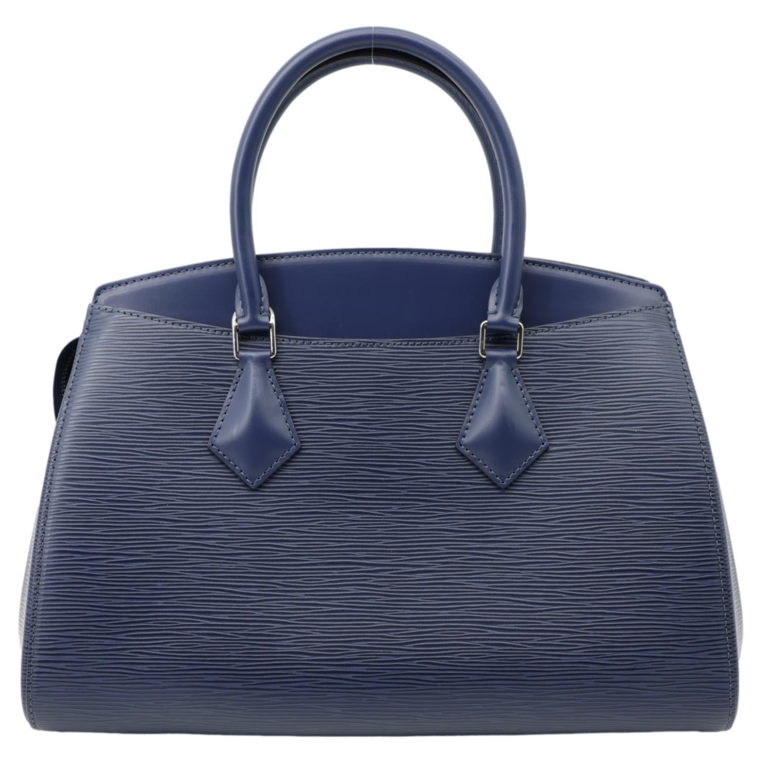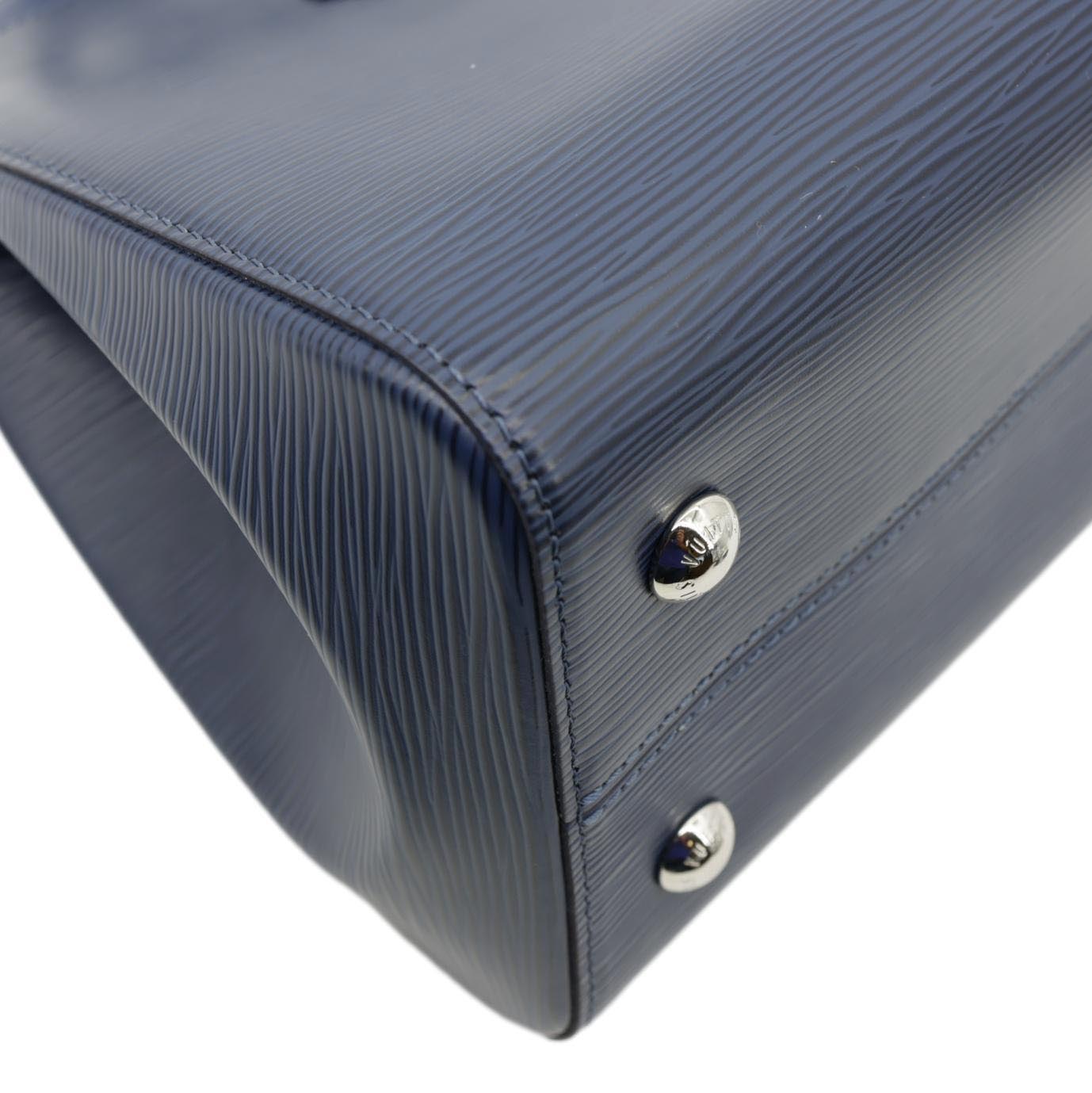 The LOUIS VUITTON Soufflot NM MM Epi Leather Crossbody Bag in Navy Blue features textured Epi leather with a durable finish, perfect for daily use. This stylish bag offers modern elegance and timeless luxury, ideal for adding a touch of sophistication to any outfit.