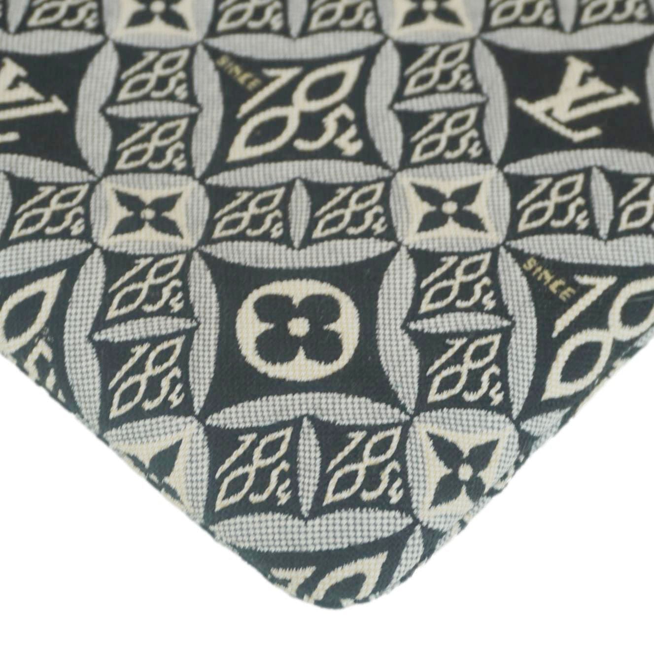 The Louis Vuitton Neverfull Since 1854 Jacquard Wristlet Pouch in black combines a vintage-inspired "Since 1854" motif with modern elegance. It is compact yet functional and features a removable wrist strap and iconic monogram detailing.