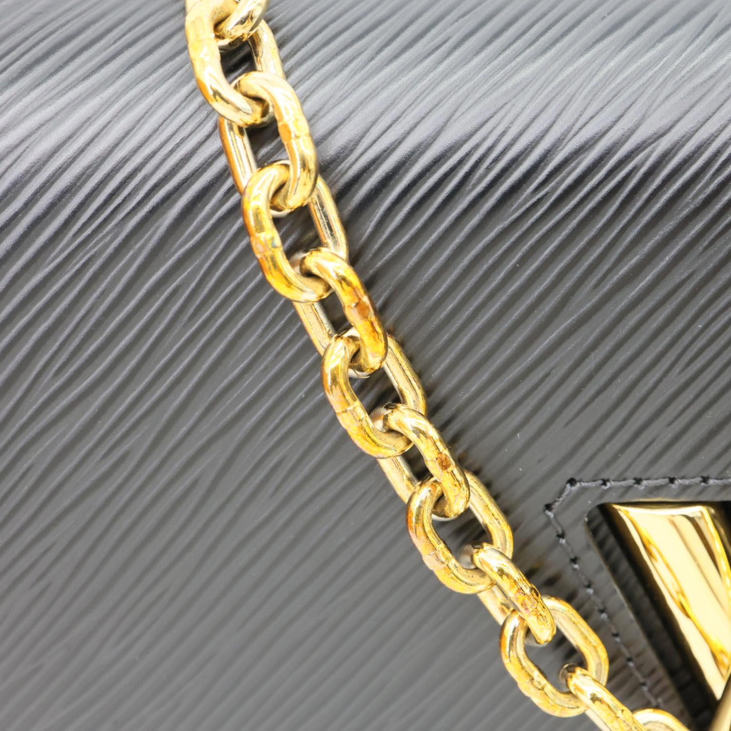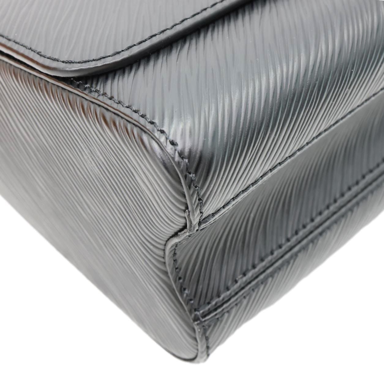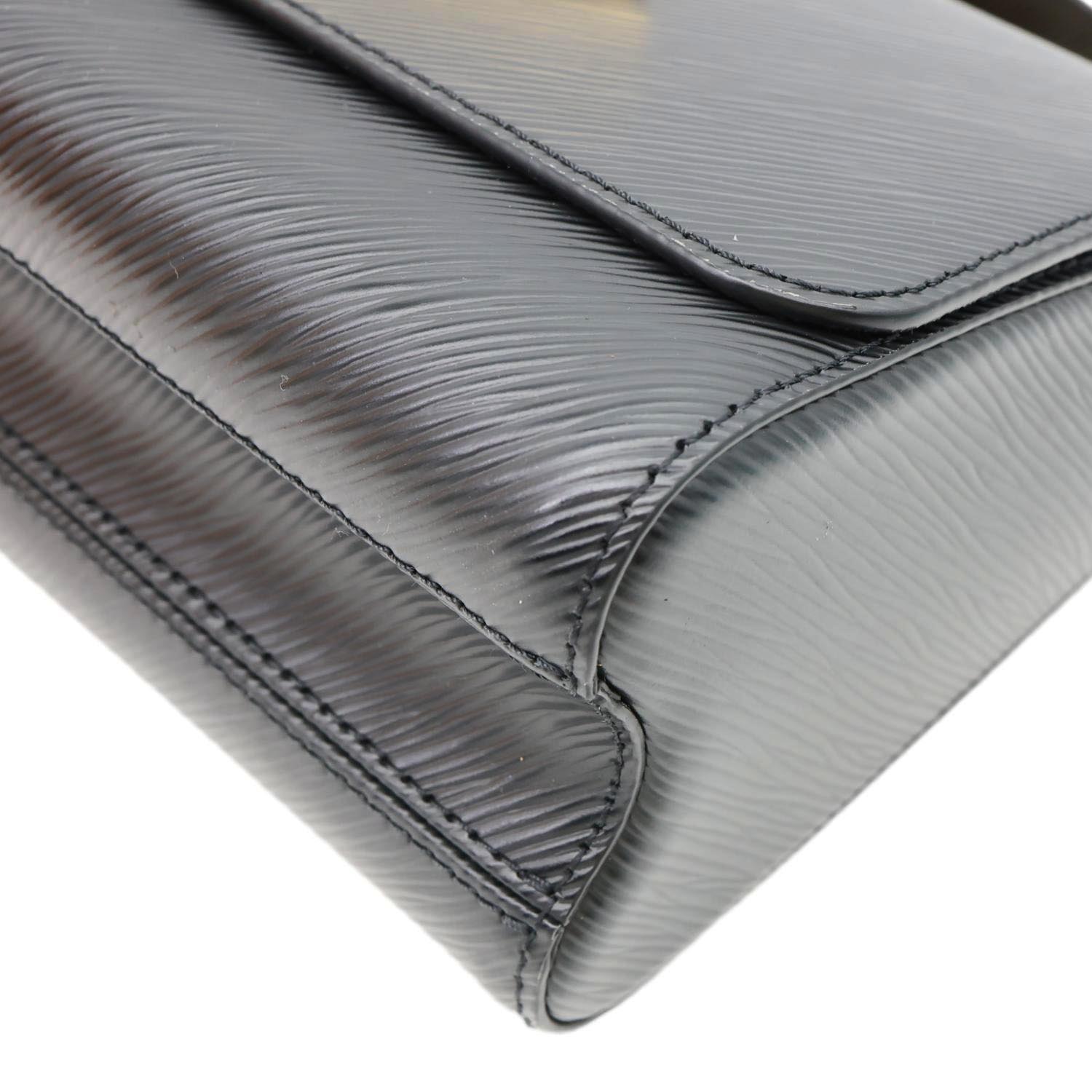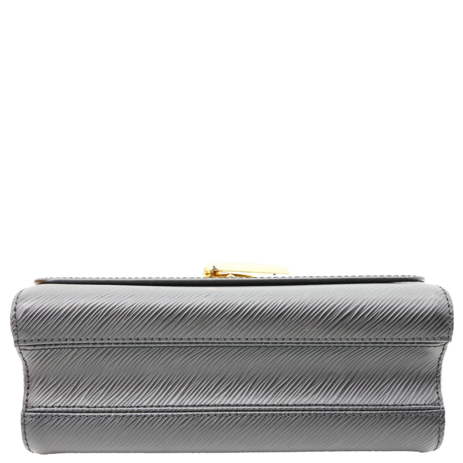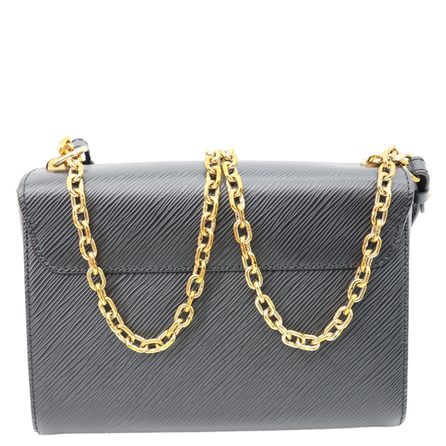 LOUIS VUITTON Twist MM in black Epi leather features a structured silhouette with the iconic LV twist-lock closure. Finished with a sliding chain strap, it offers versatile shoulder or crossbody wear with refined elegance.