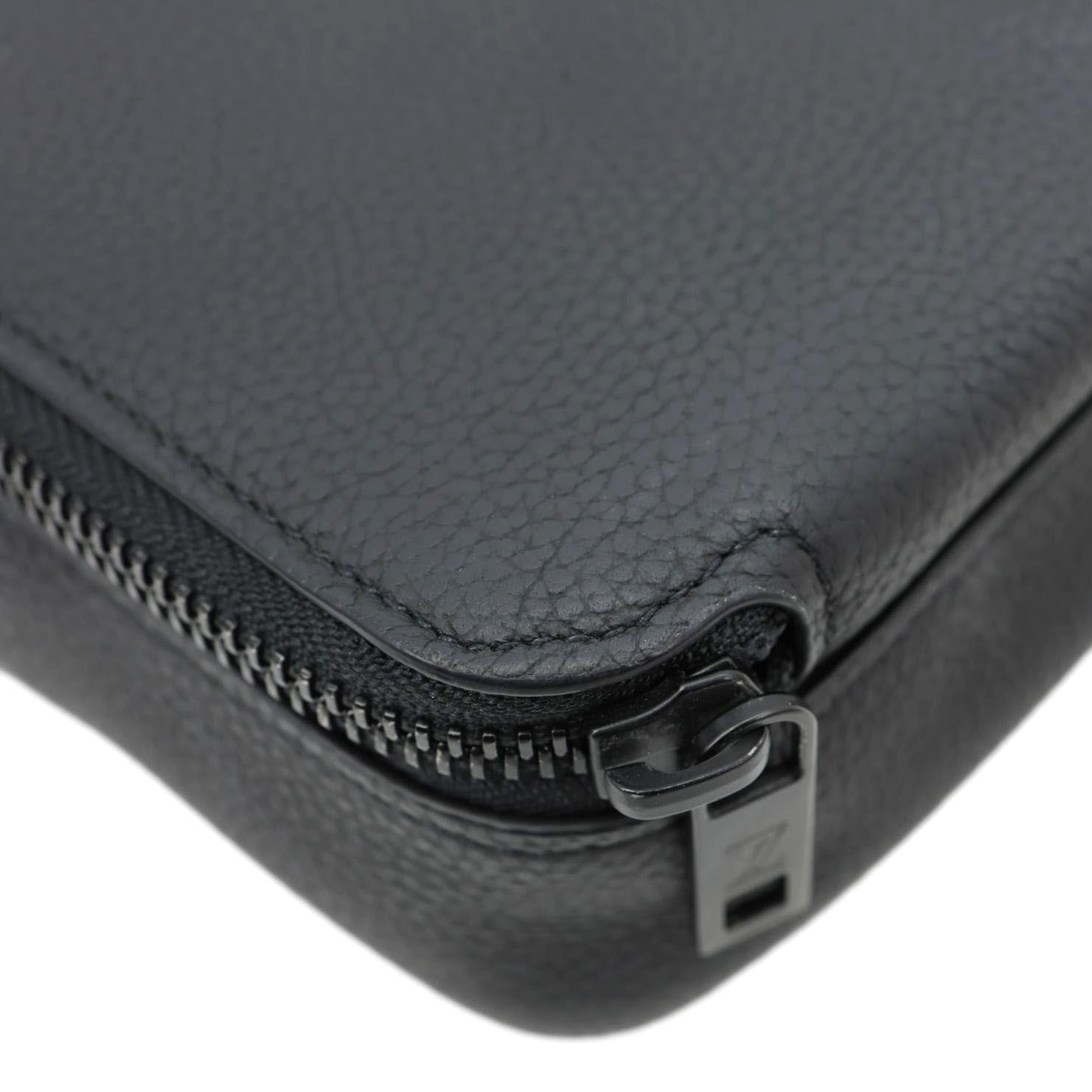 LOUIS VUITTON Alpha Wearable Wallet LV Aerogram Leather Shoulder Bag Black features sleek, soft Aerogram leather with minimalist LV lettering for a modern, refined look. Its compact, crossbody design offers hands-free convenience for carrying daily essentials in style.