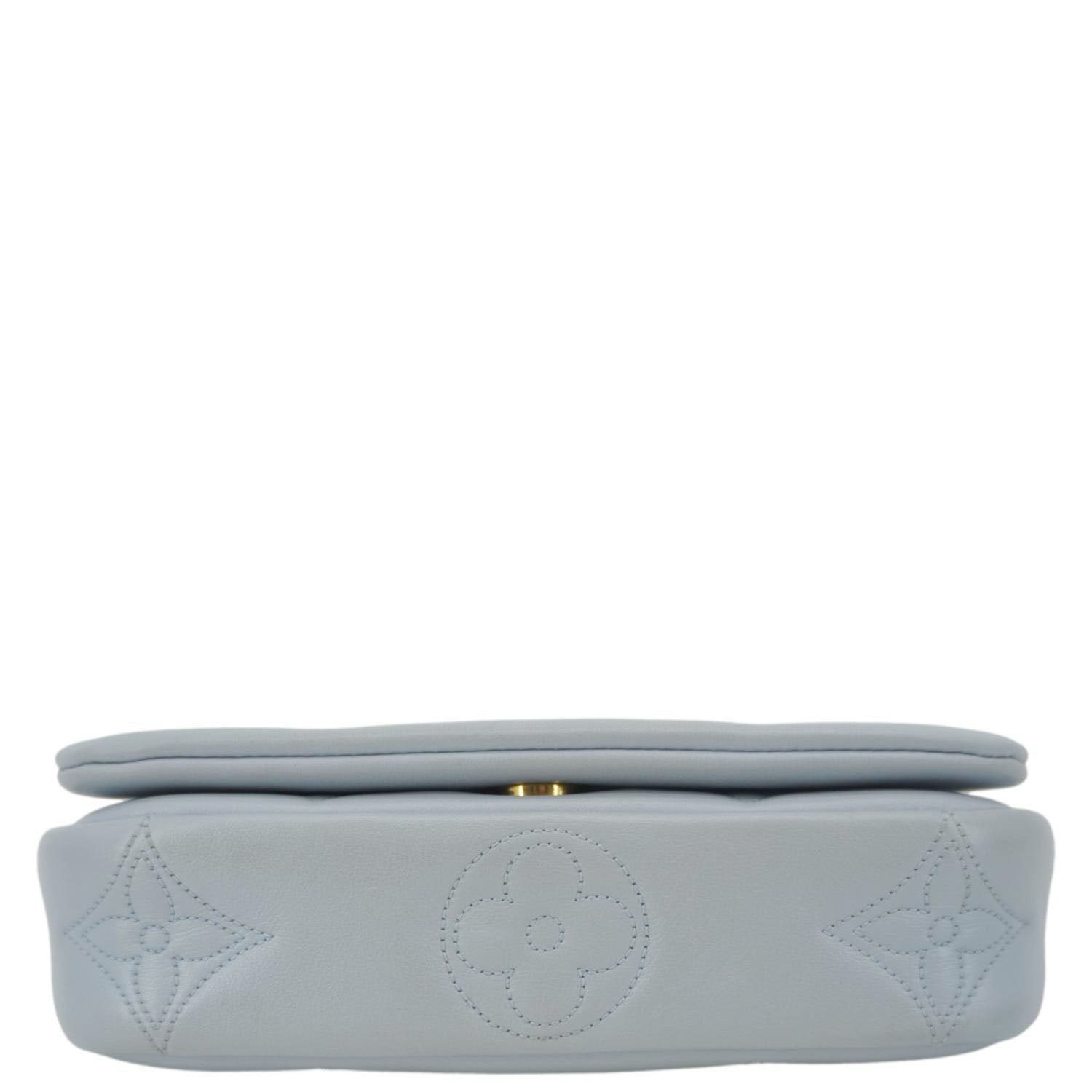 LOUIS VUITTON Calfskin Bubblegram Leather Wallet on Strap Bag Light Blue