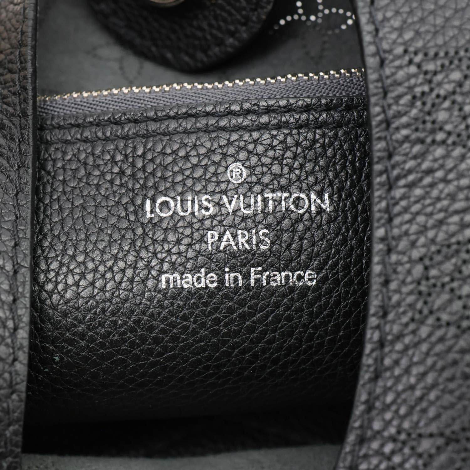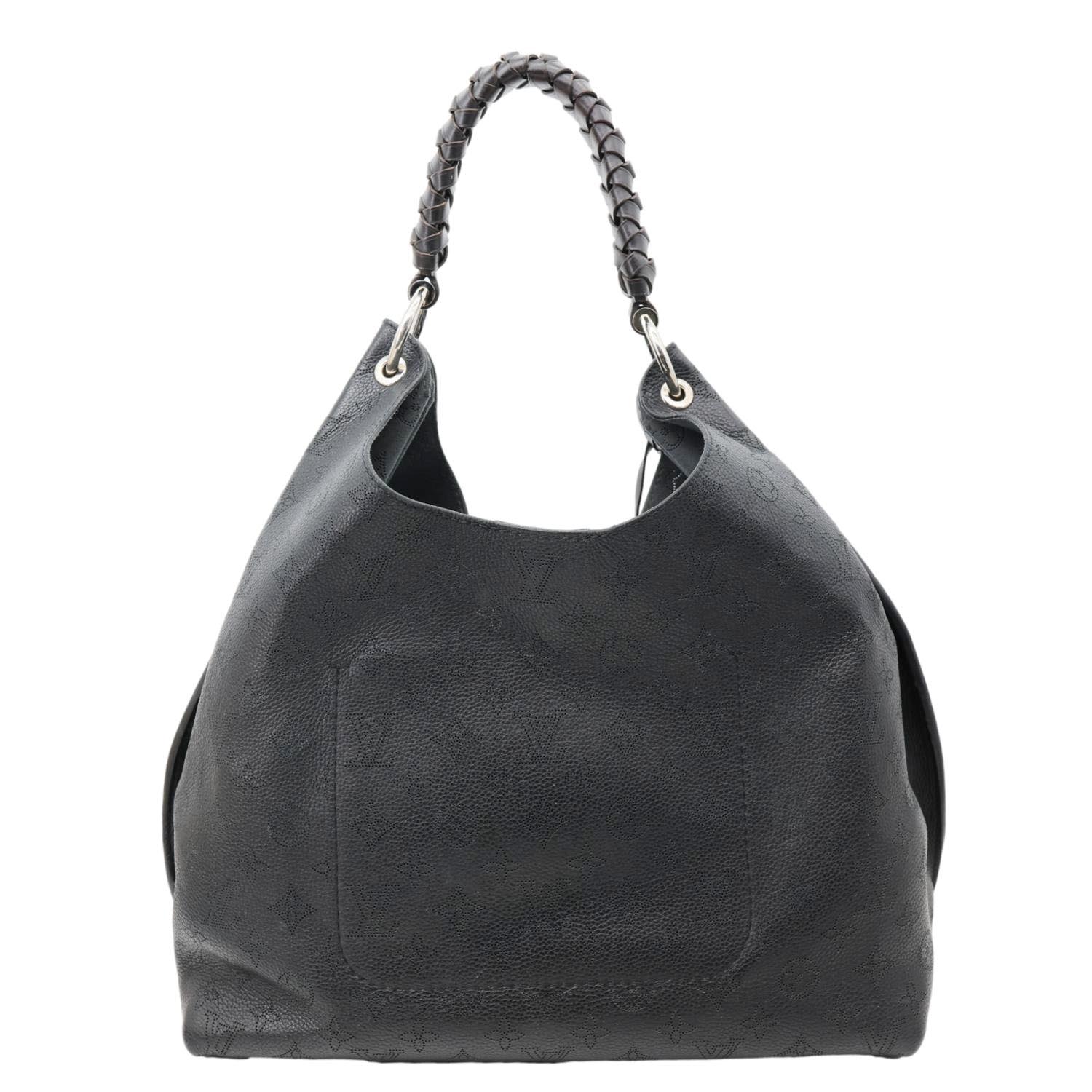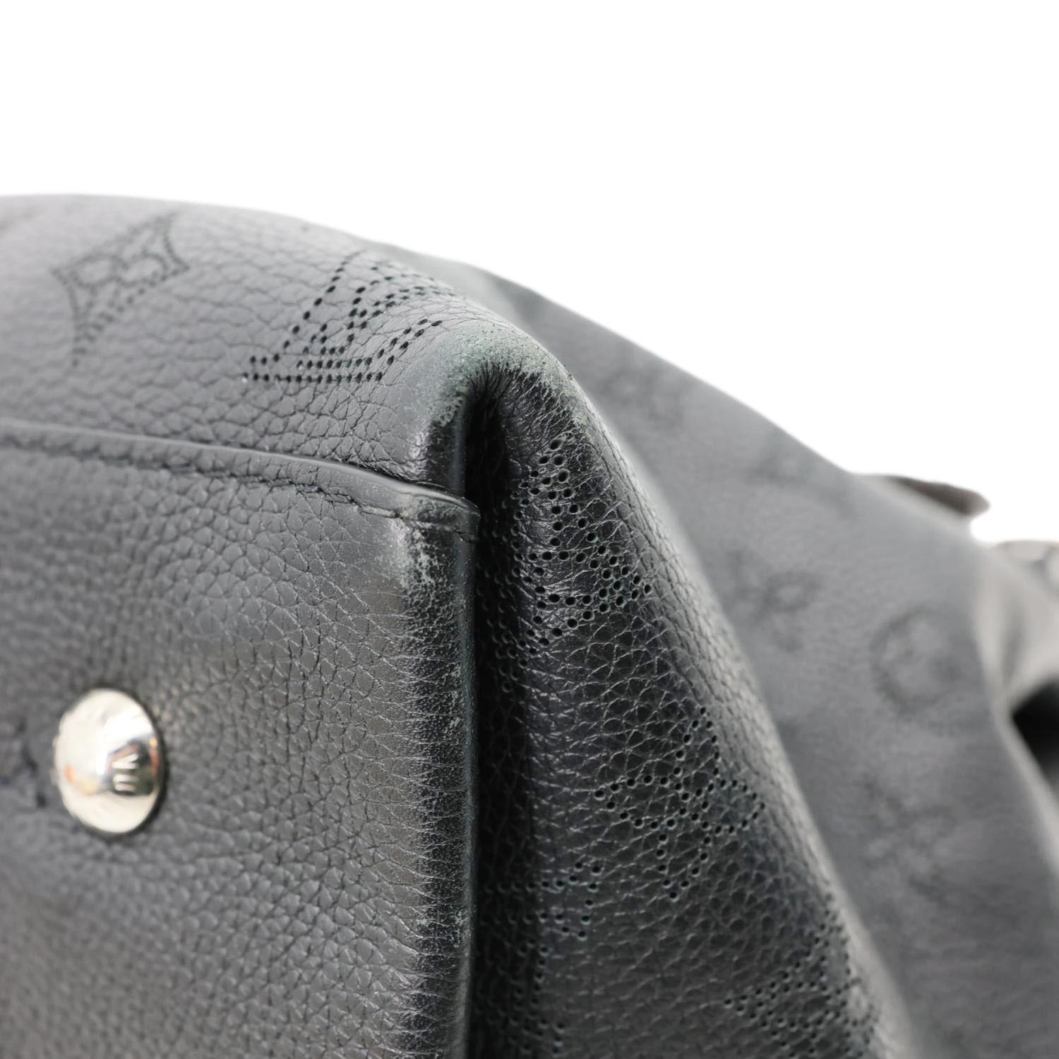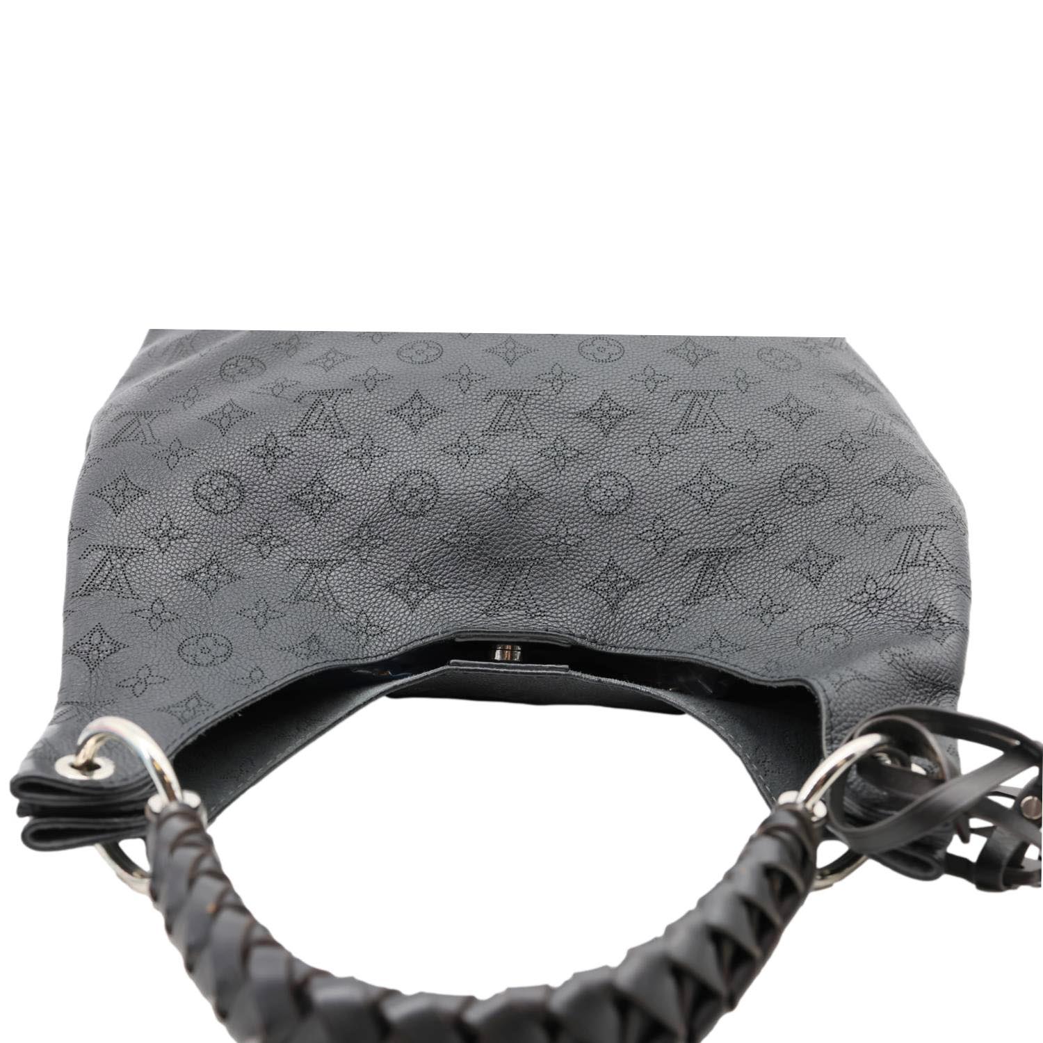 LOUIS VUITTON Carmel Hobo bag crafted in perforated Mahina leather with a sleek black finish. Soft, slouchy design with a single shoulder strap, offering effortless elegance for everyday wear.