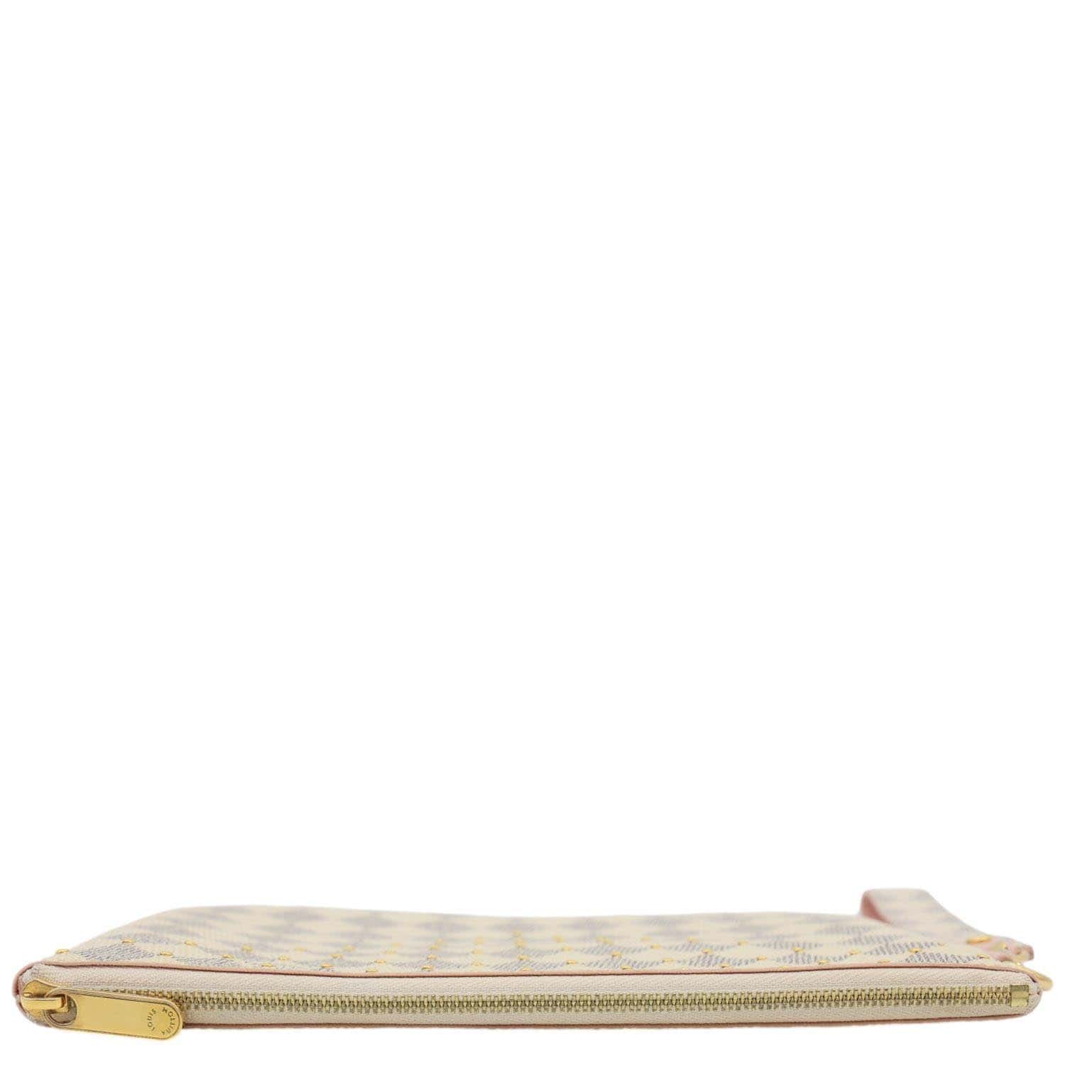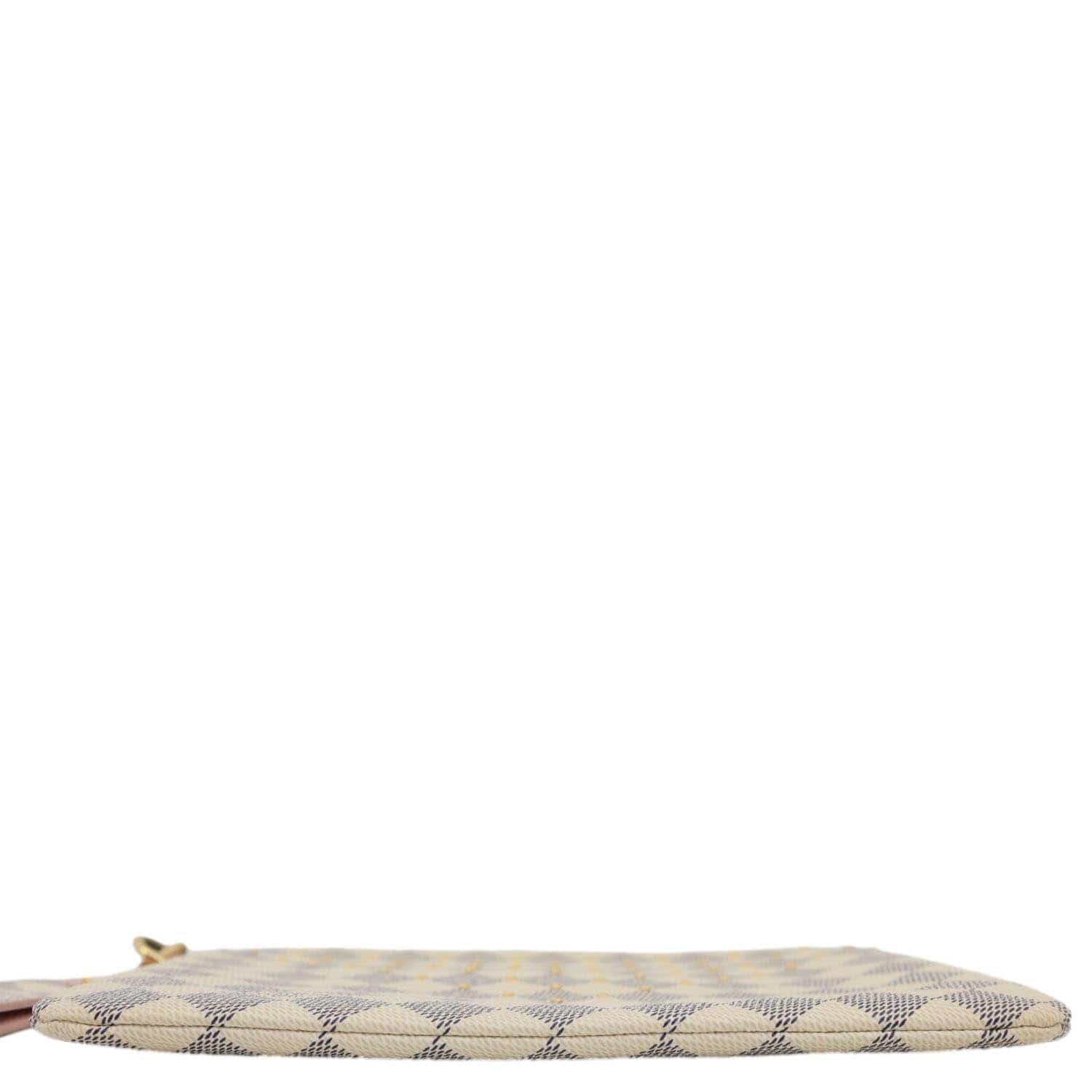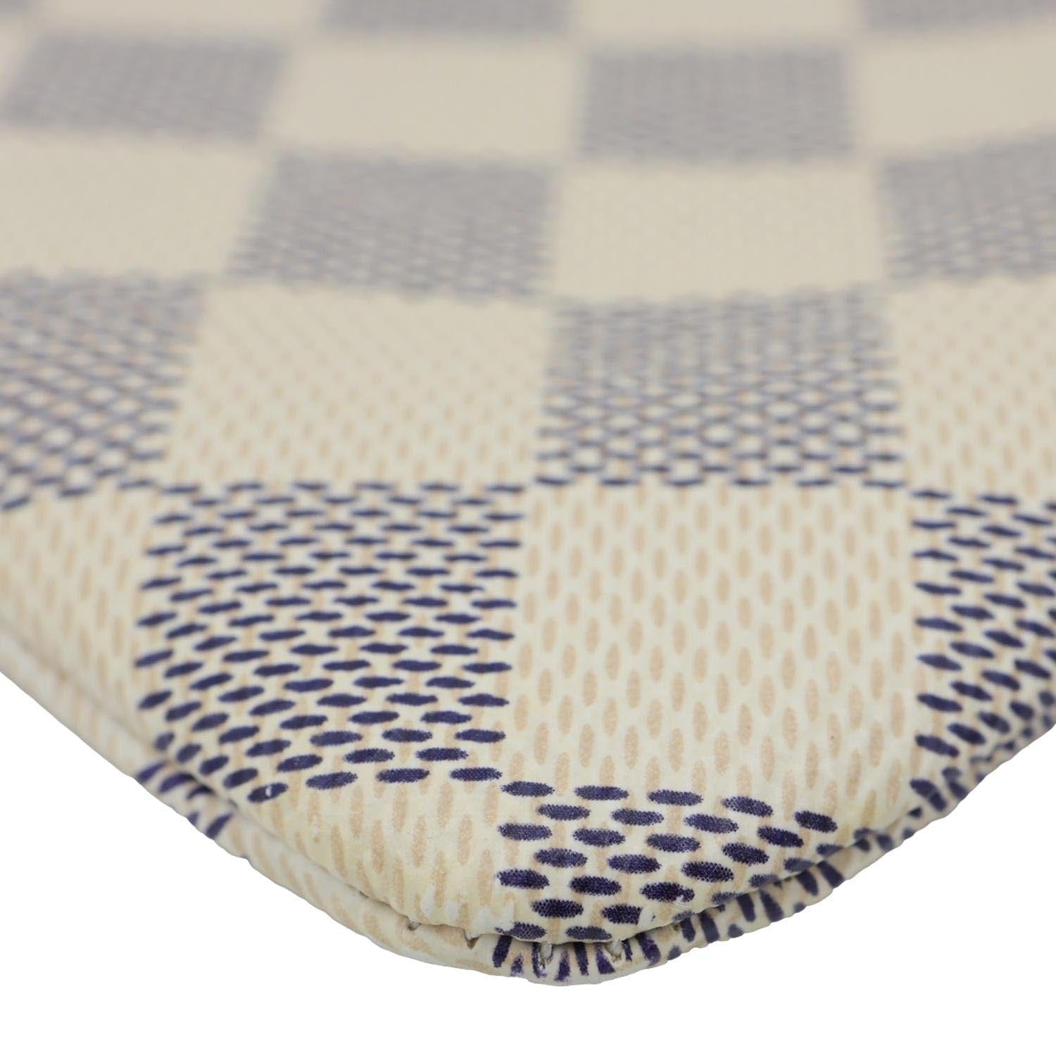 Louis Vuitton City Pouch in Damier Azur with Rose Ballerine trim, featuring a soft pink and white checkerboard canvas. Compact zip-top design with wrist strap, stylish for essentials or as a sleek clutch.