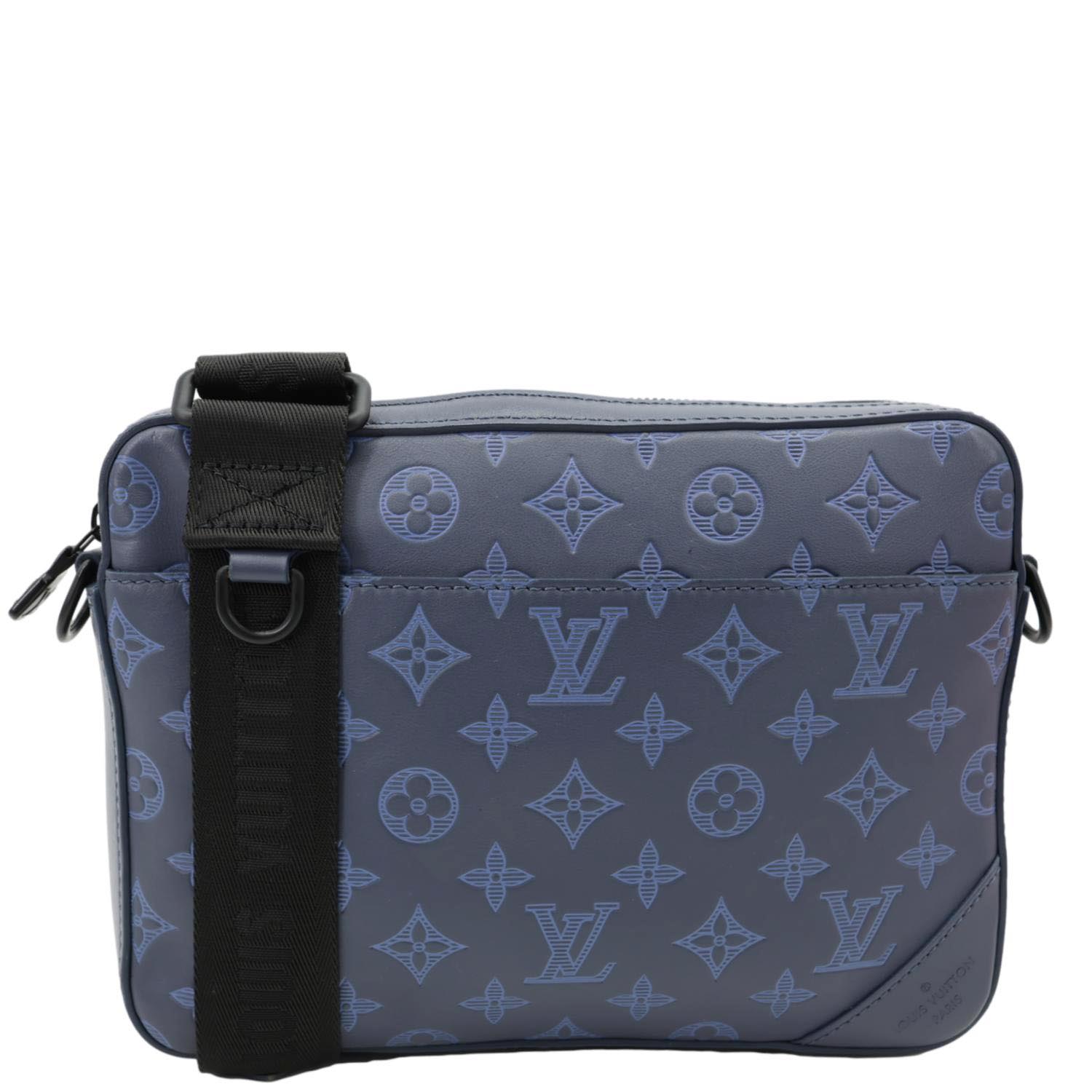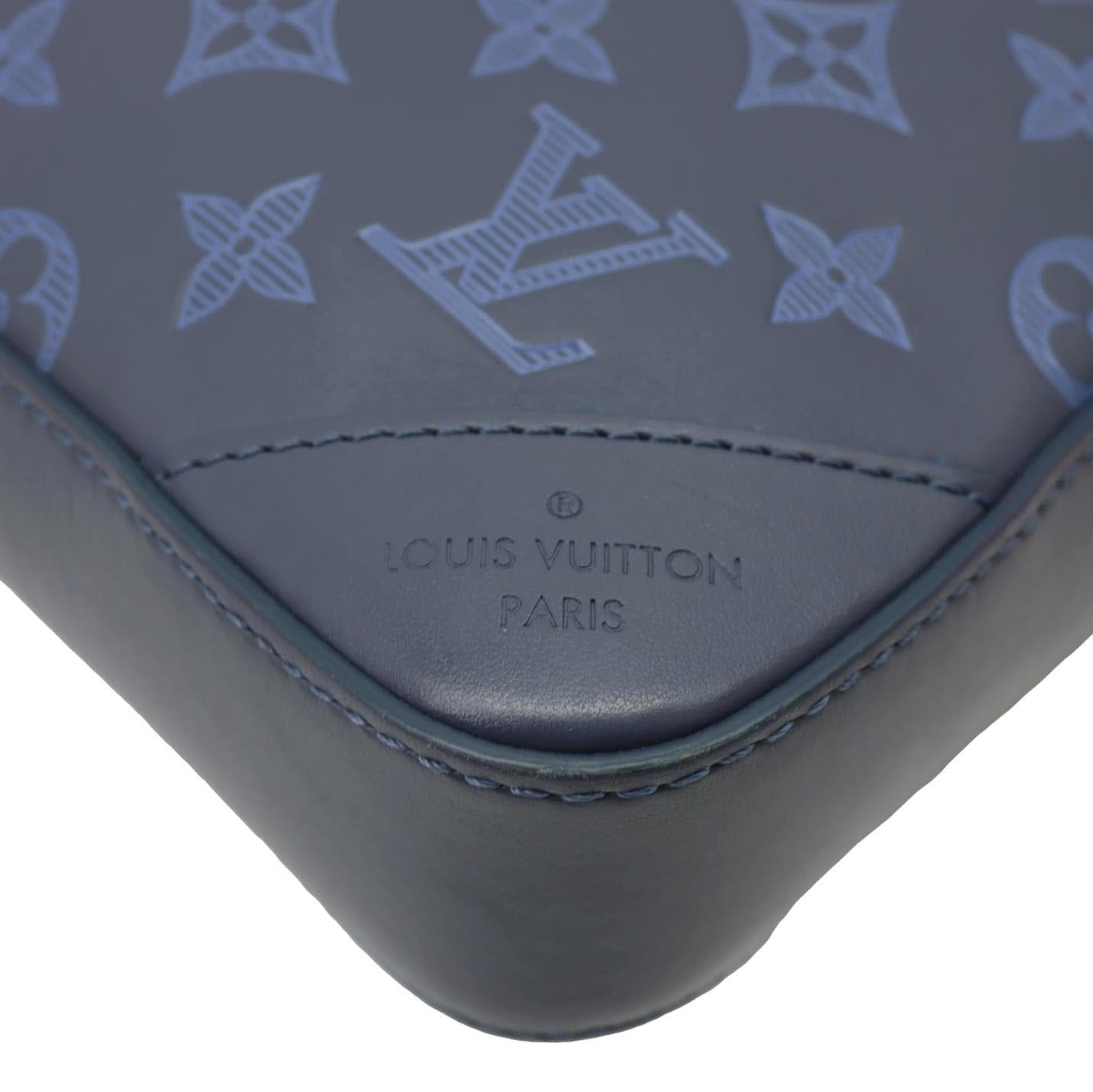 The LOUIS VUITTON Duo Monogram Shadow Leather Shoulder Bag in Navy Blue features a sleek, embossed monogram design on premium leather, offering both elegance and functionality. This stylish shoulder bag is perfect for versatile, everyday use.