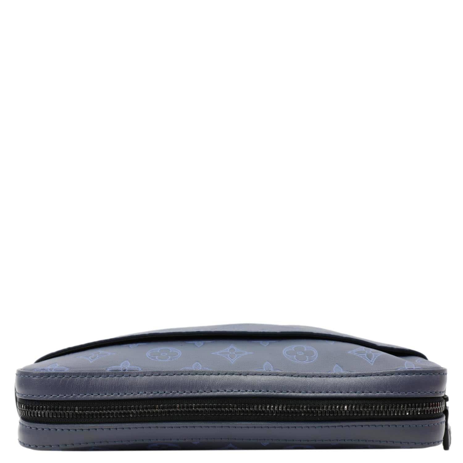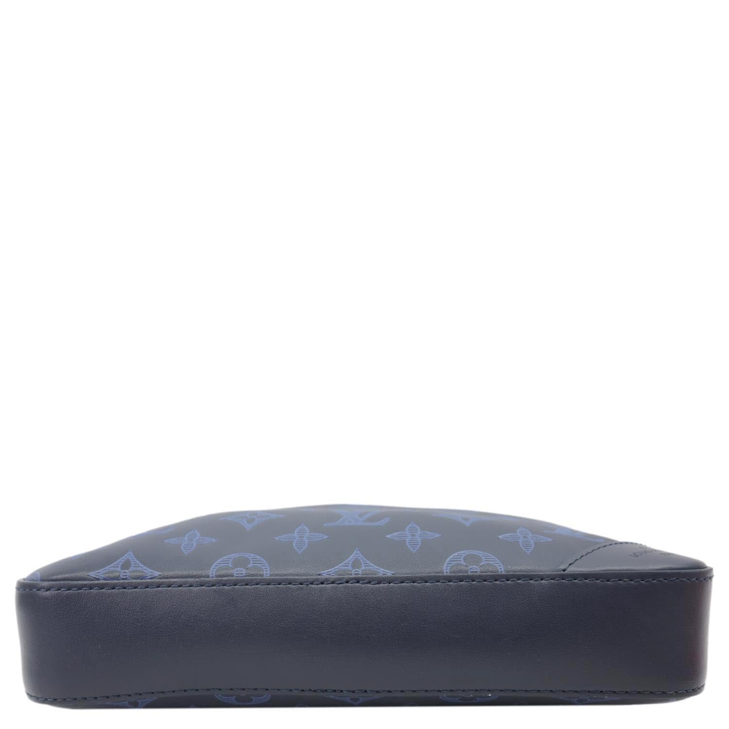 LOUIS VUITTON Duo Monogram Shadow Leather Shoulder Bag Navy Blue