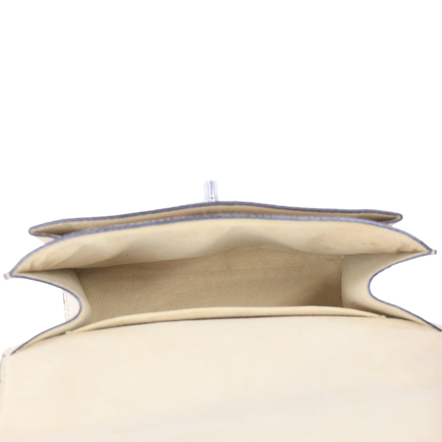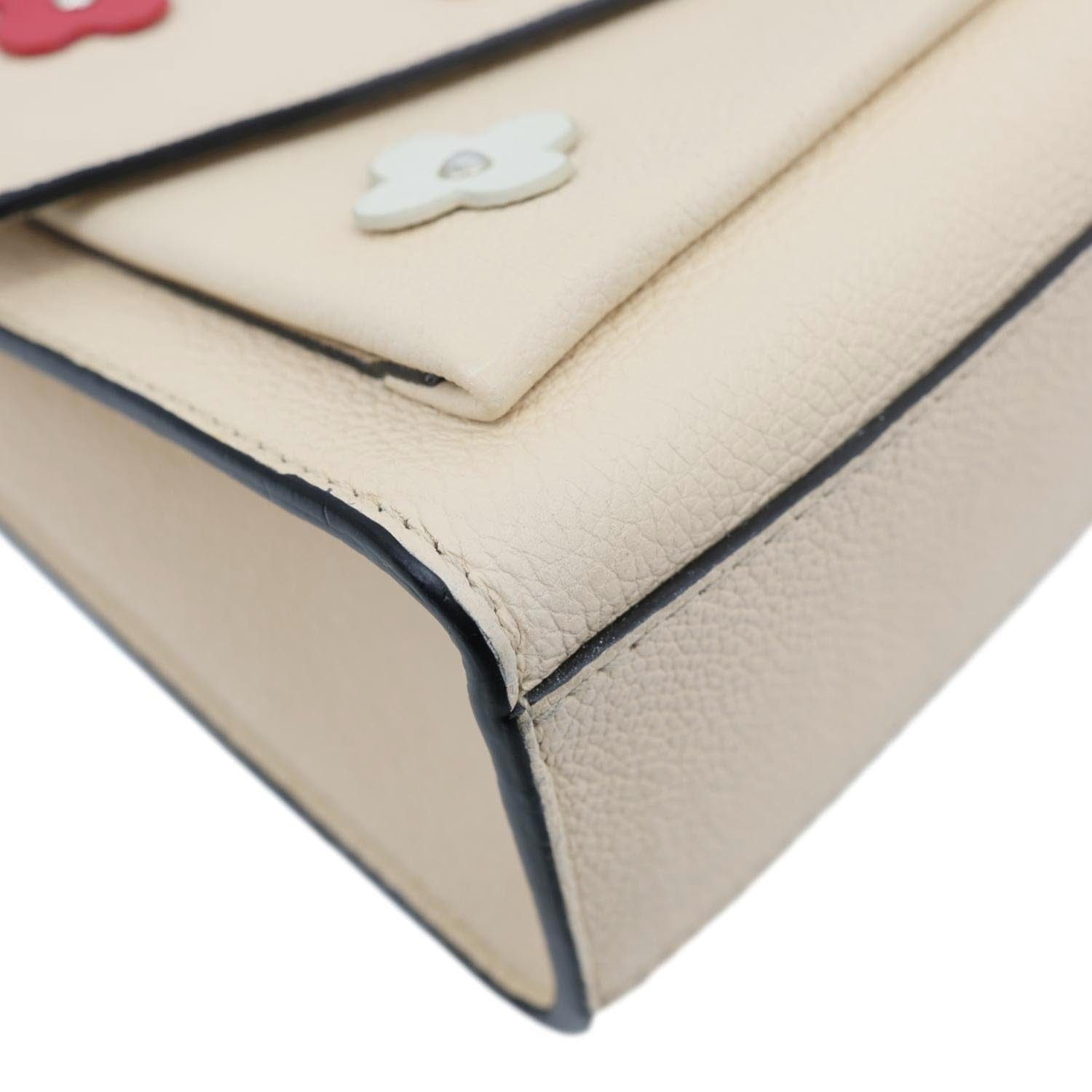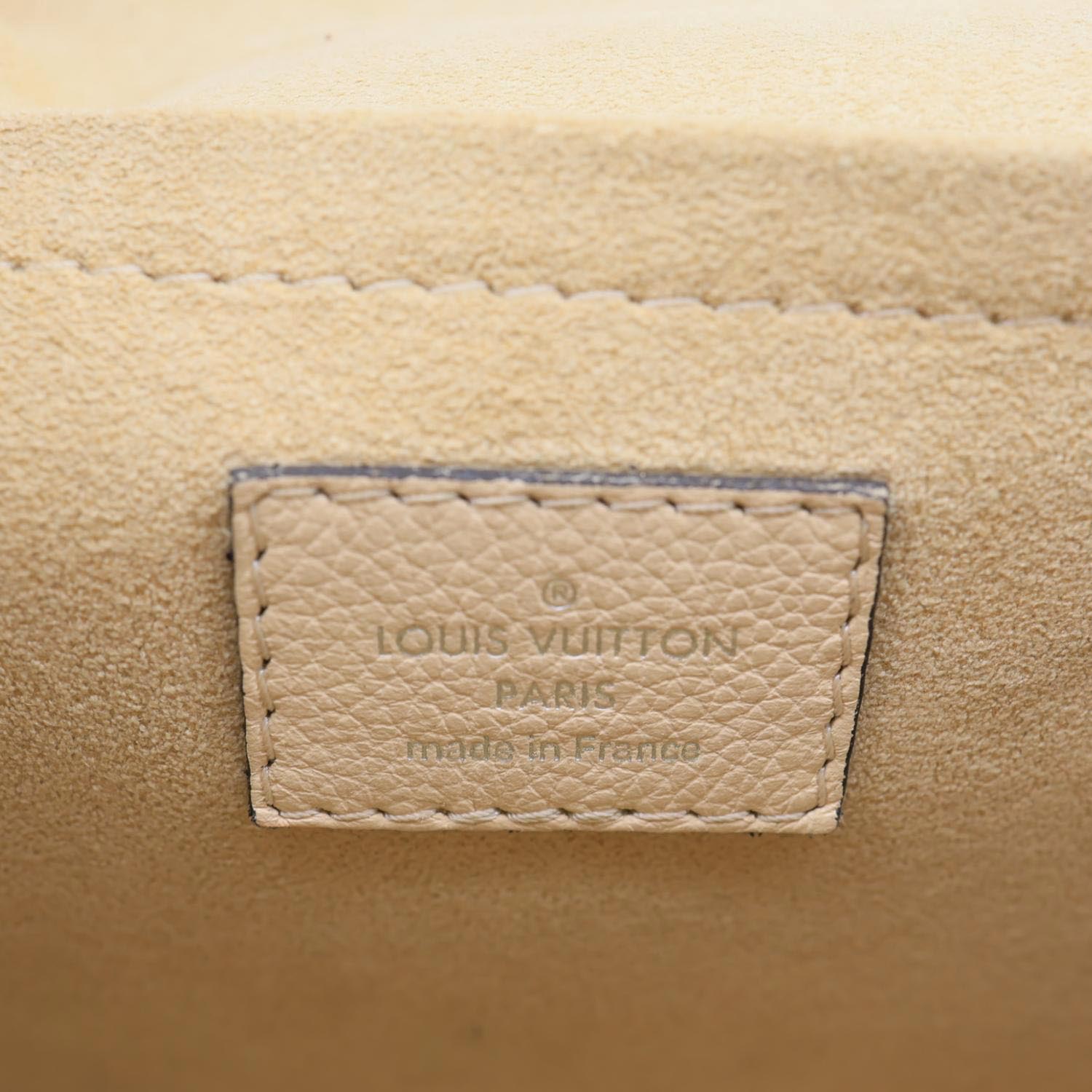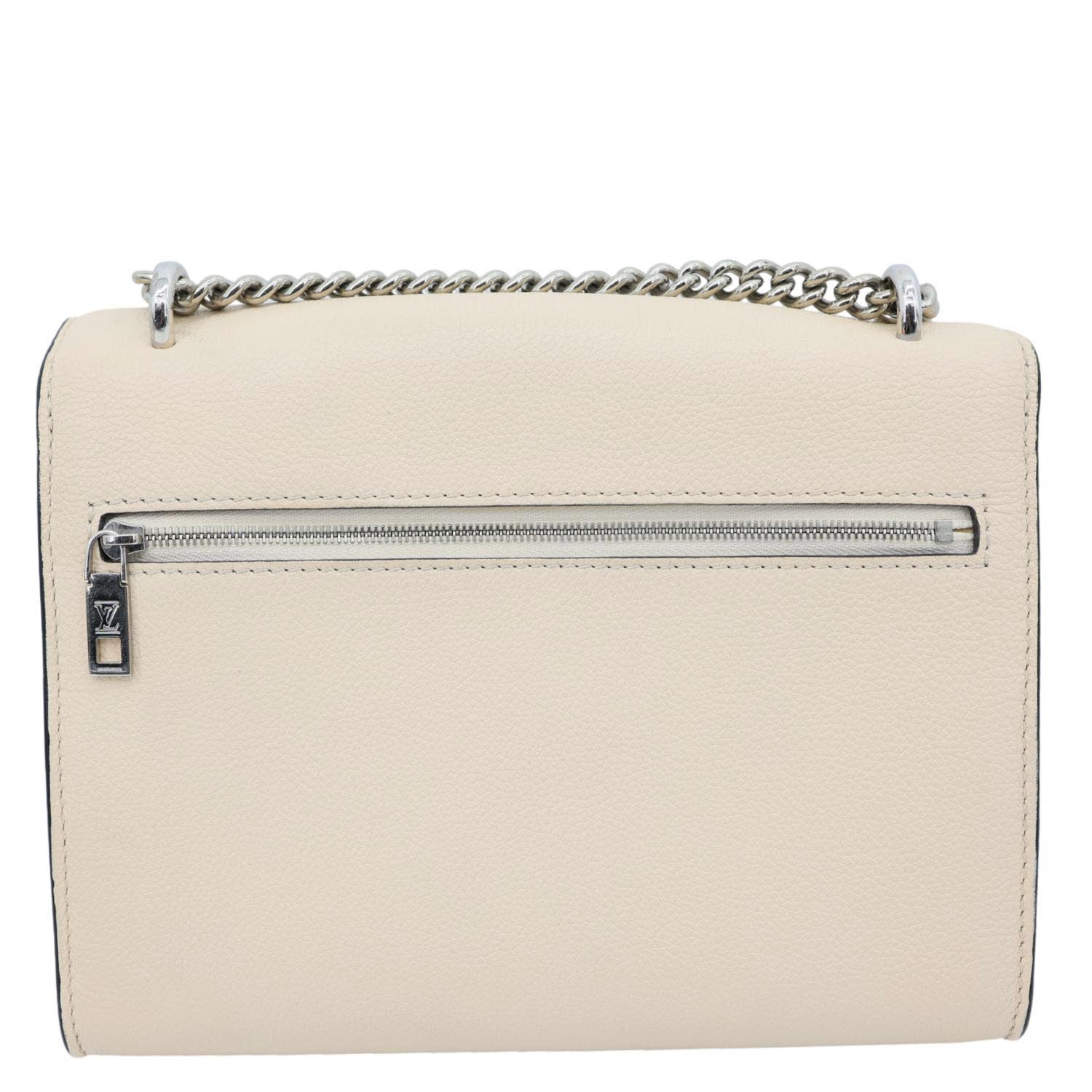 LOUIS VUITTON MyLockMe Fleurs BB in cream leather showcases a refined envelope flap with subtle floral accents. Equipped with a chain shoulder strap, it combines compact elegance with versatile, stylish wear.