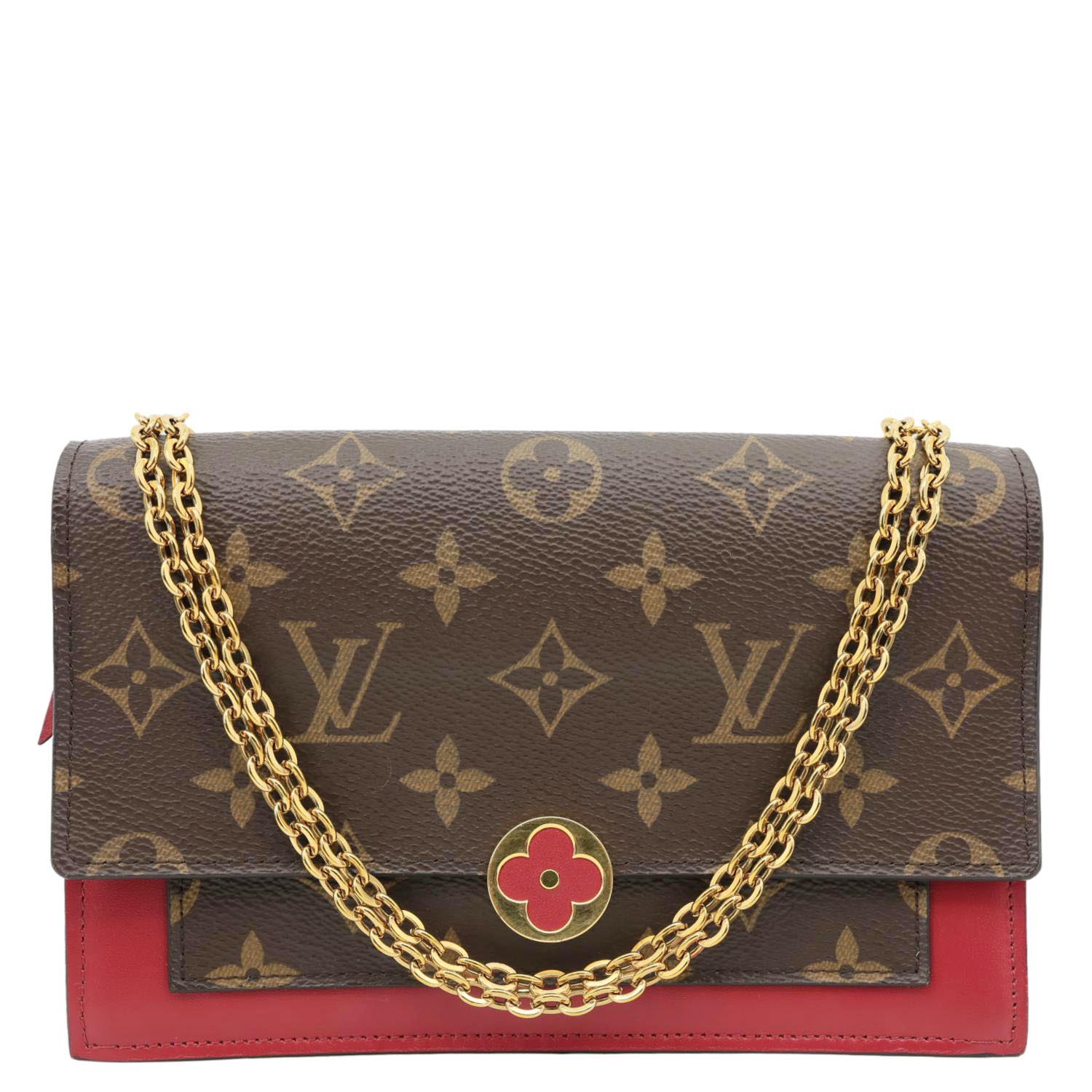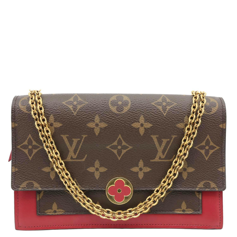 LOUIS VUITTON Flore chain wallet crafted in classic Monogram canvas with a vibrant fuchsia leather lining. Chic and functional, featuring a removable chain strap and organized interior for day-to-night elegance.