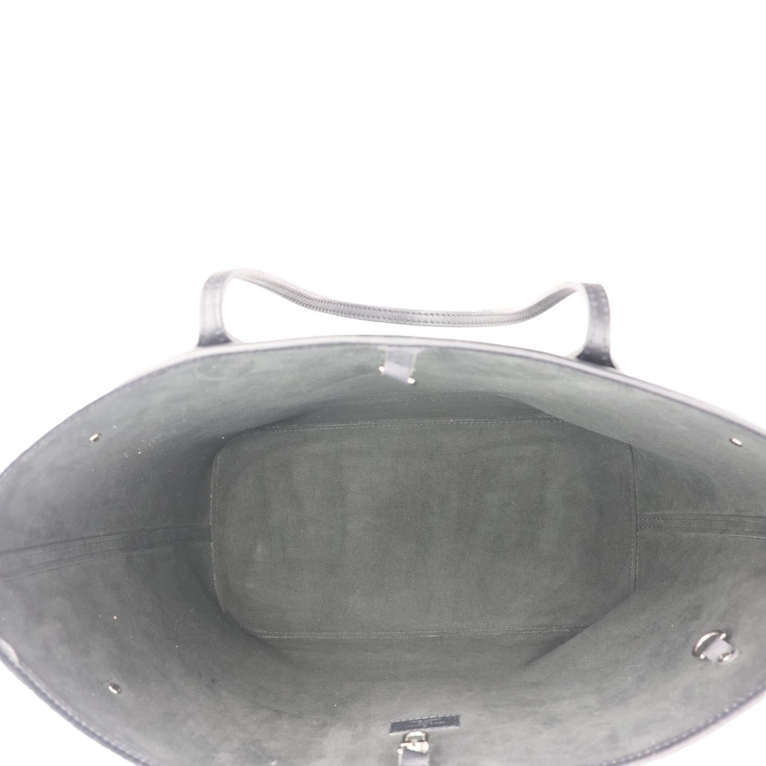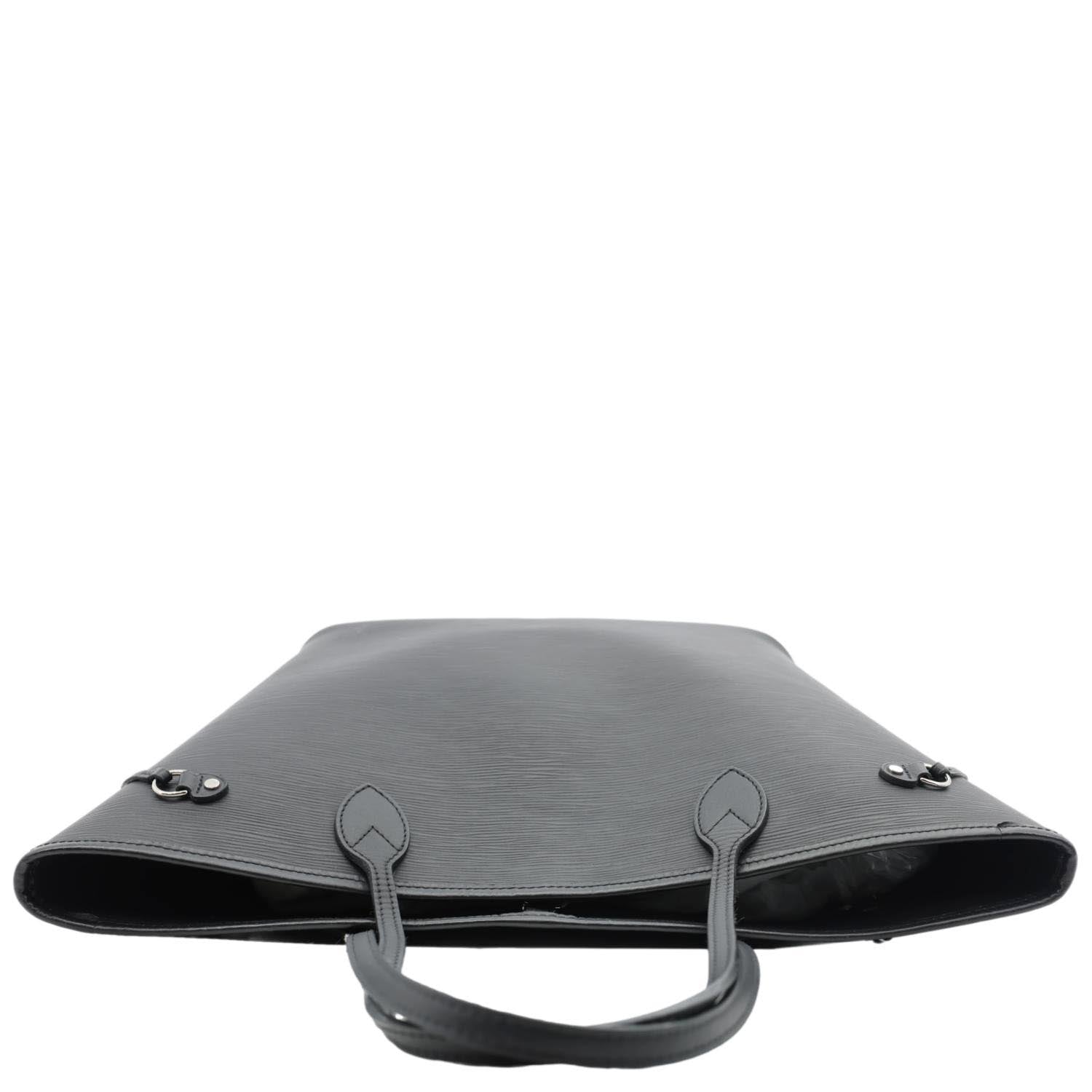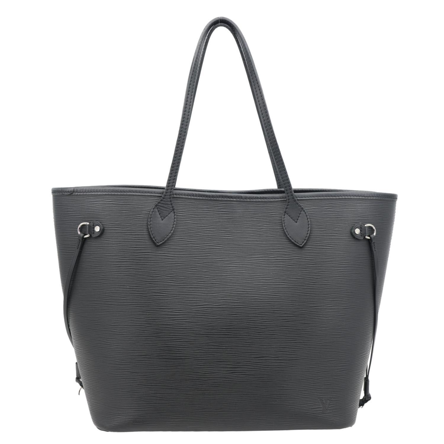 The Louis Vuitton Neverfull MM Epi Leather Tote Shoulder Bag Black features textured Epi leather with sleek silver-tone hardware. Its roomy interior and versatile design make it a timeless everyday companion.