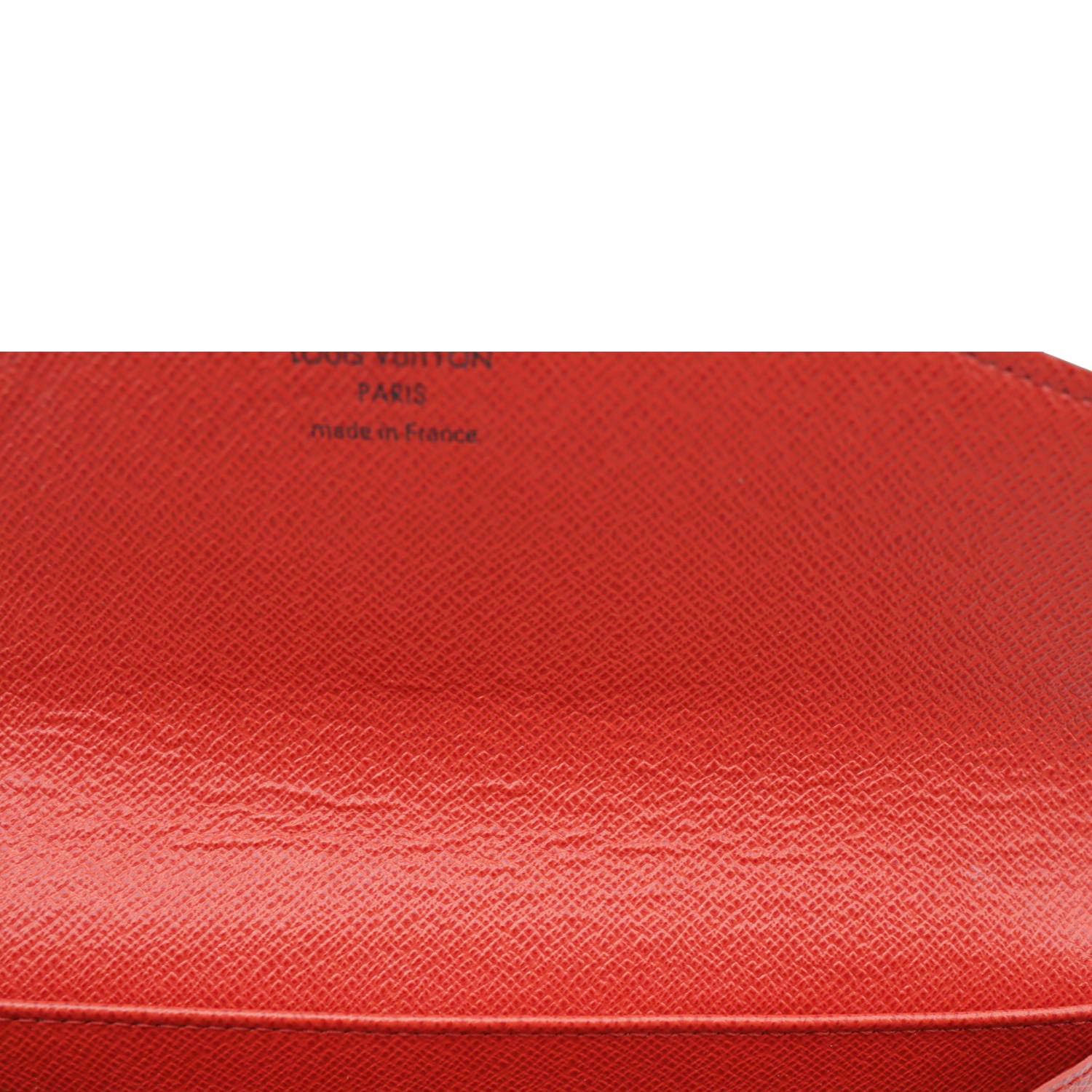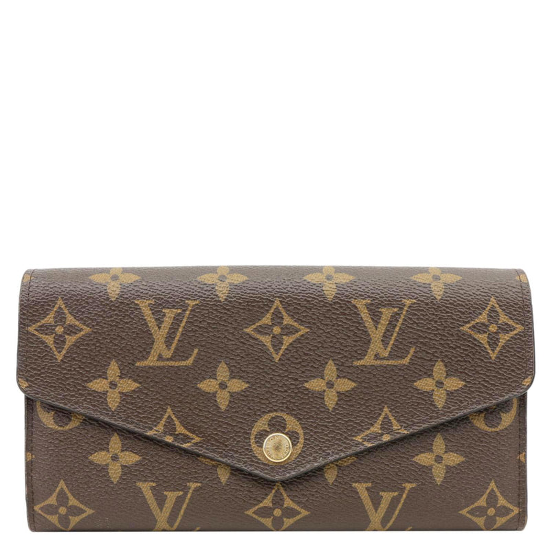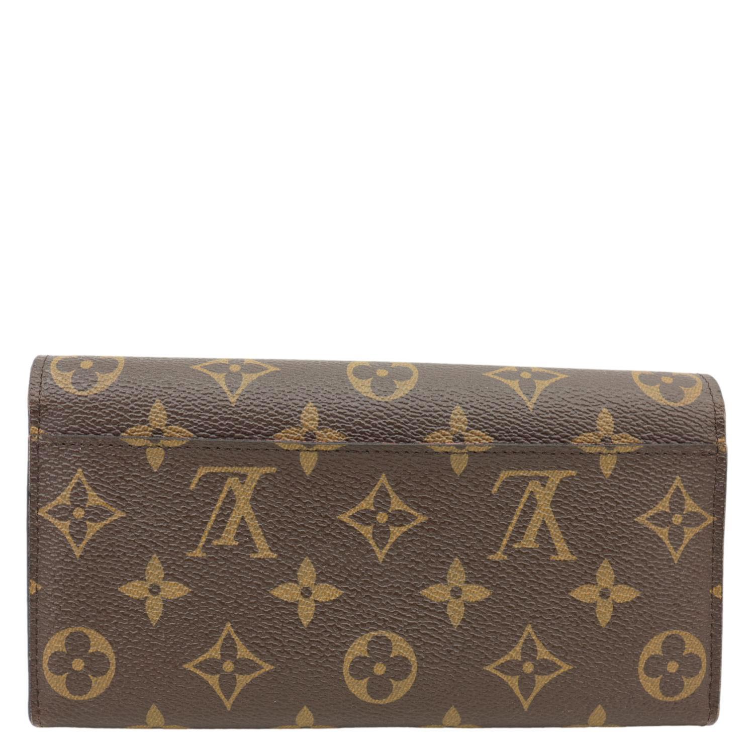 LOUIS VUITTON Sarah Wallet in Monogram Canvas features the classic LV pattern paired with a vibrant red interior. Elegant and practical, it offers multiple card slots and compartments for everyday organization.