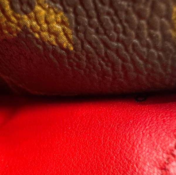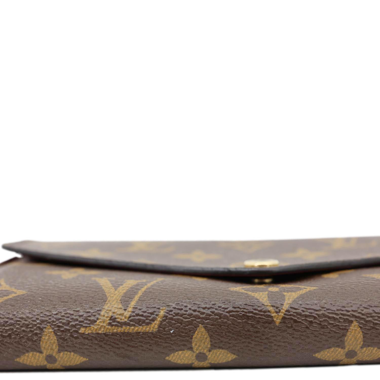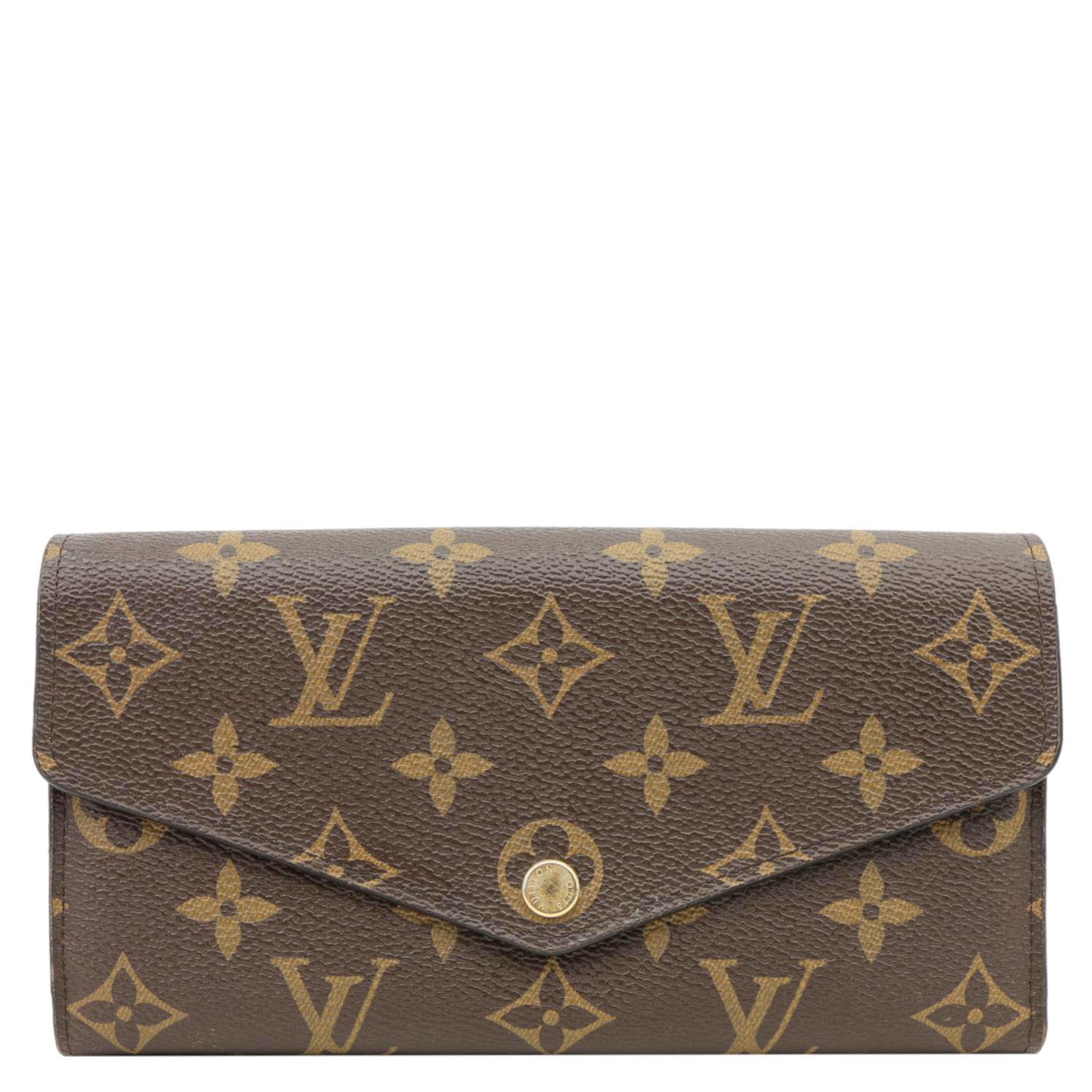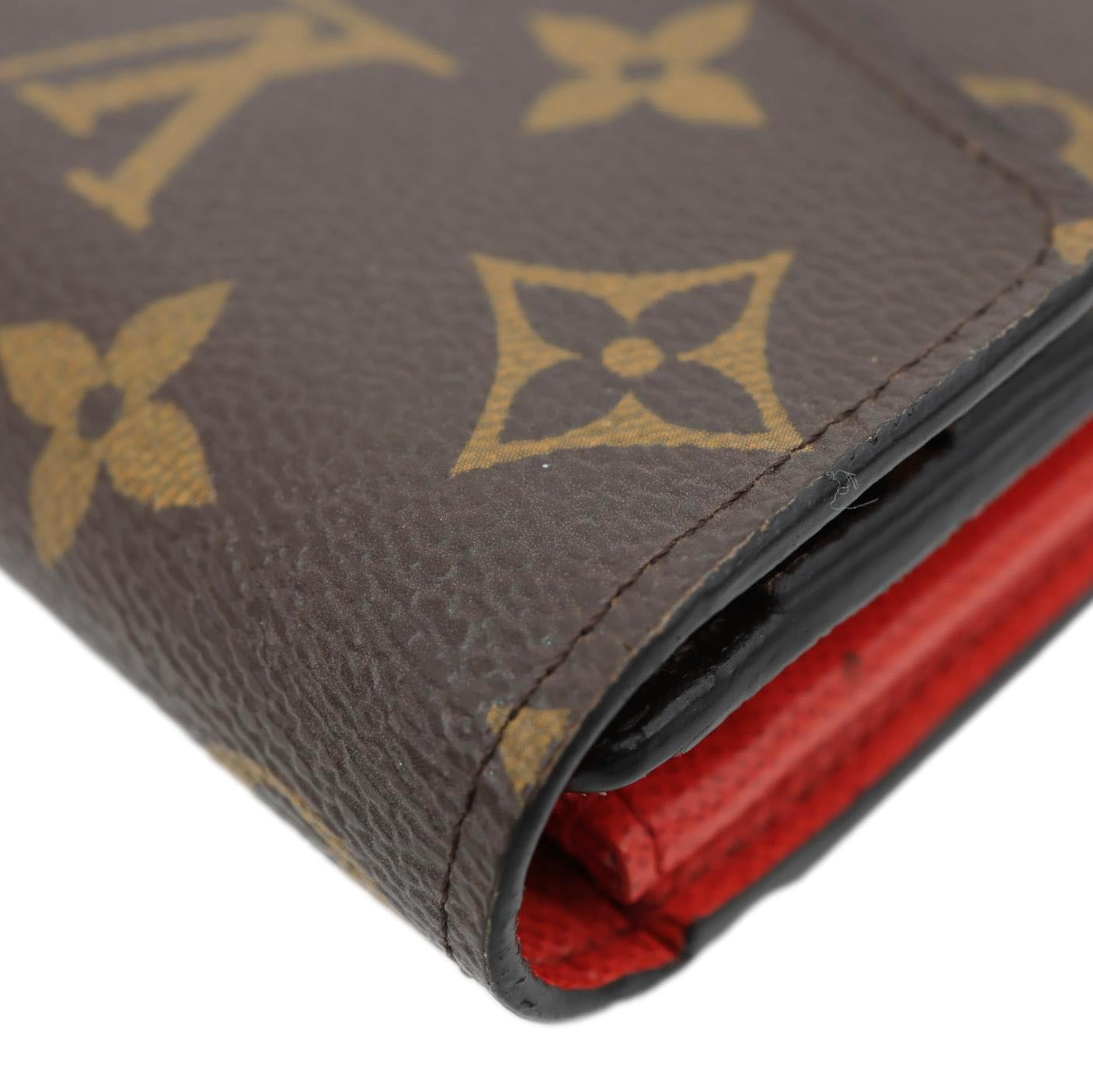 LOUIS VUITTON Sarah Wallet in Monogram Canvas features the classic LV pattern paired with a vibrant red interior. Elegant and practical, it offers multiple card slots and compartments for everyday organization.