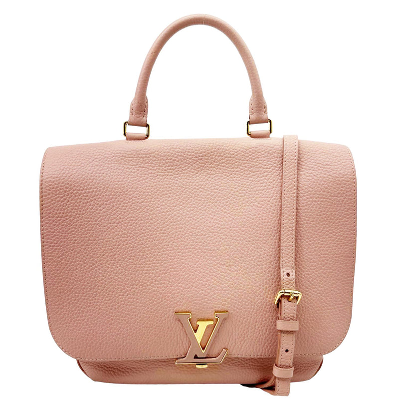 Louis Vuitton Volta shoulder bag in pink Taurillon leather with a sleek, contemporary silhouette. Structured design with top handle and optional strap, perfect for refined everyday or evening wear. Smooth leather finish and subtle hardware add elegant, modern flair to any outfit.
