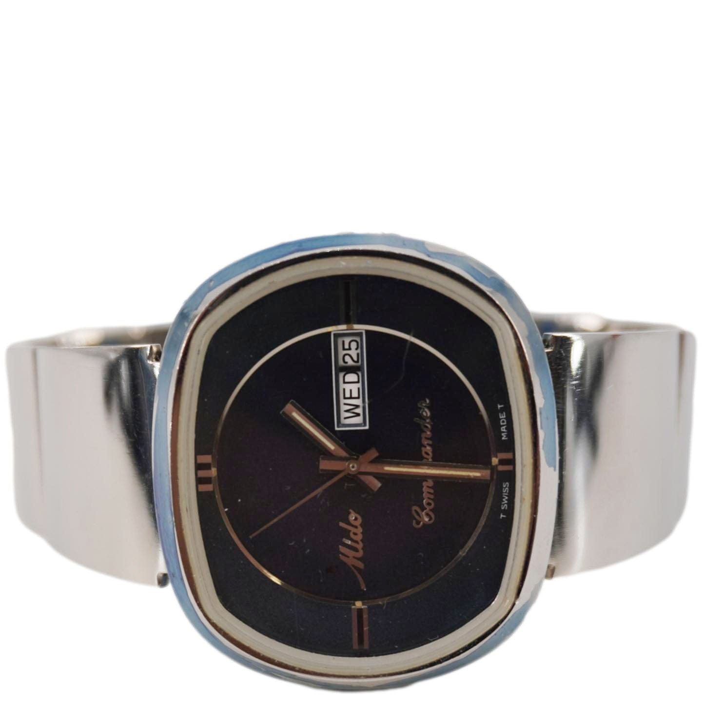 Mido Commander 1970 Day Date Men's Stainless Steel Watch Blue Dial 41MM
