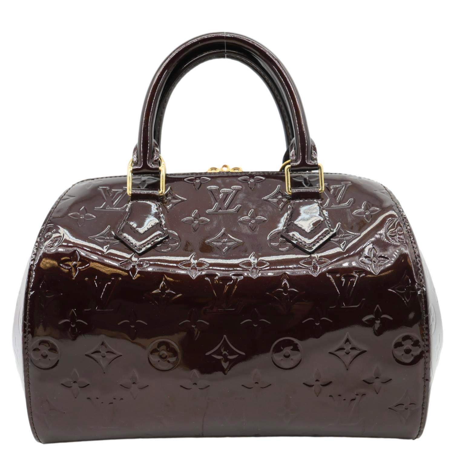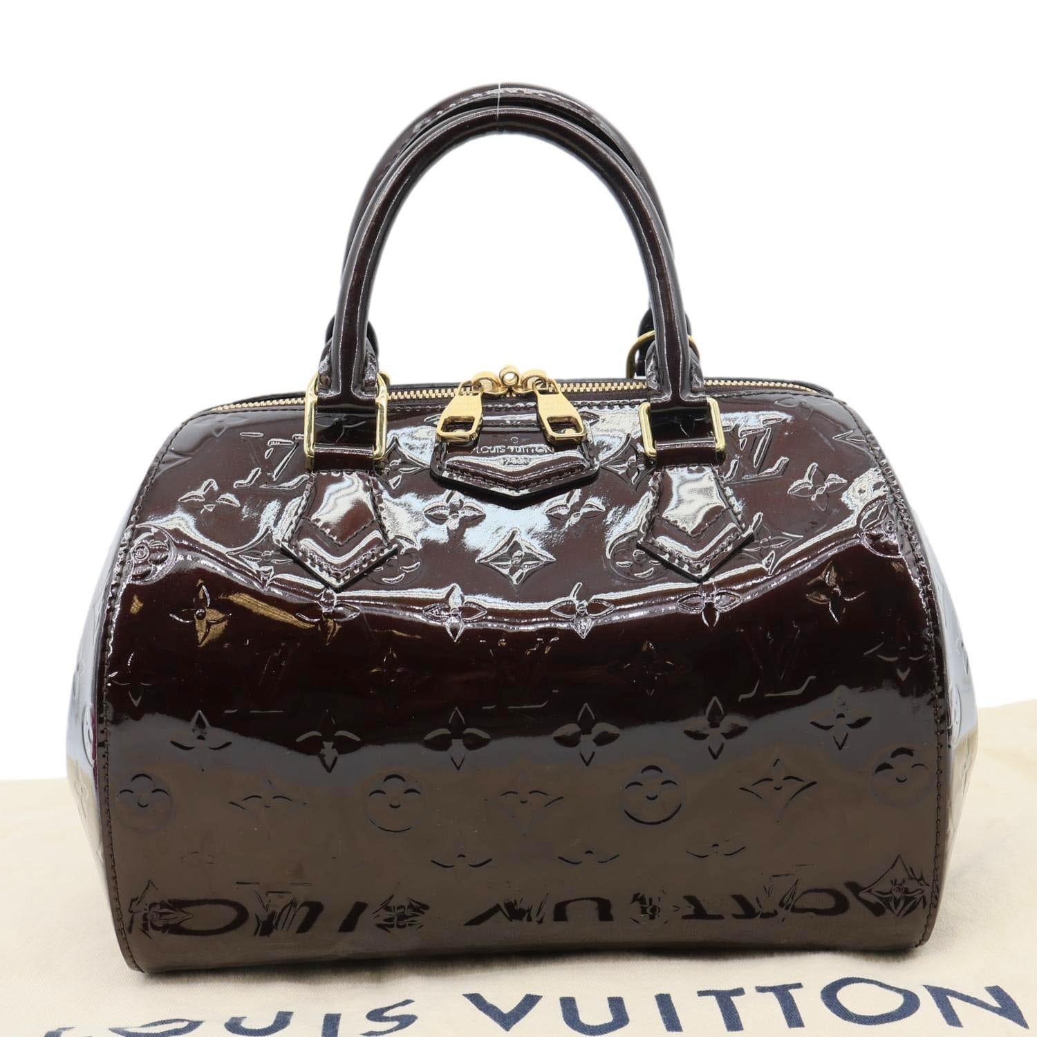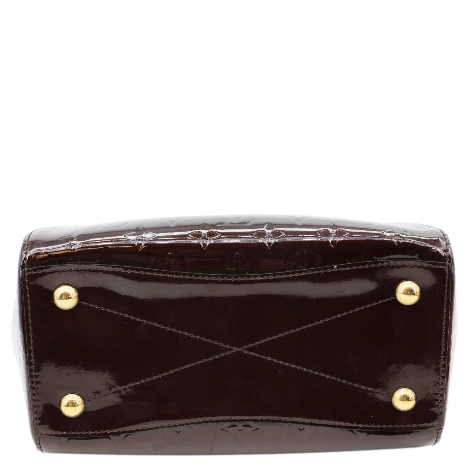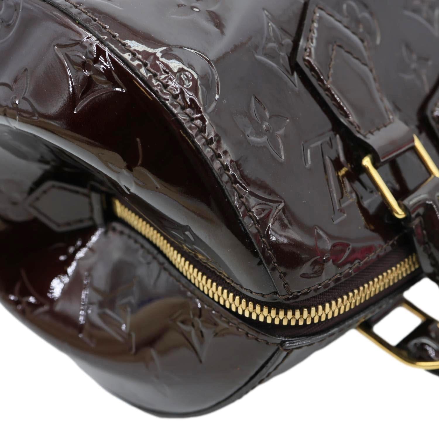 LOUIS VUITTON Montana satchel bag in Amarante Monogram Vernis leather with a glossy patent finish and embossed LV pattern. Elegant and structured, perfect for sophisticated day-to-evening styling.