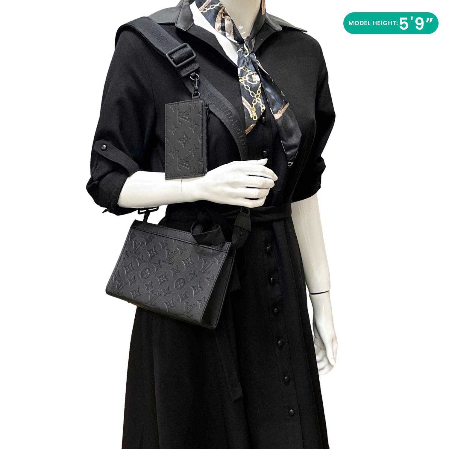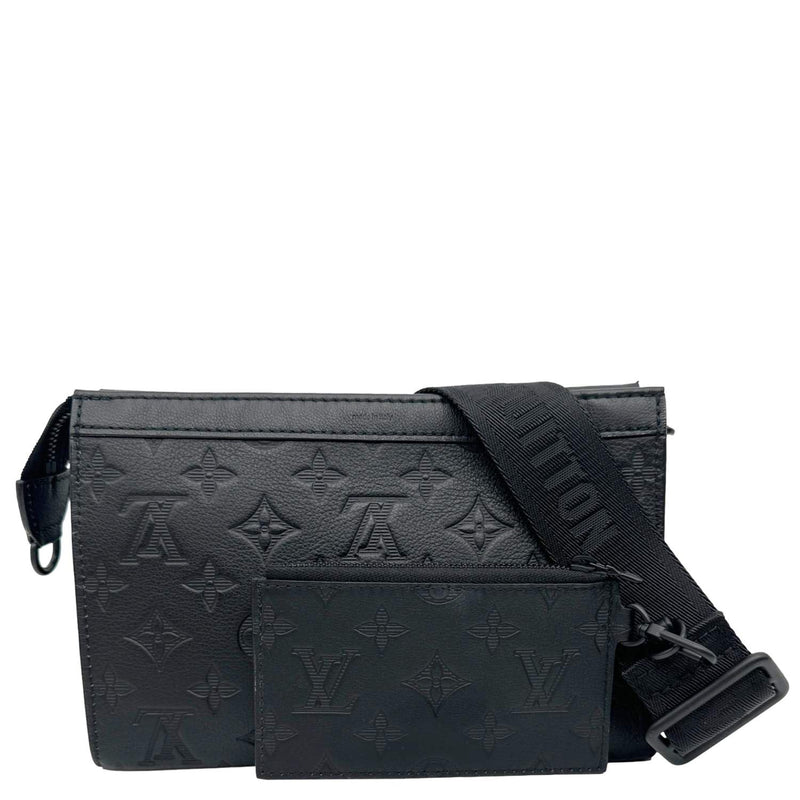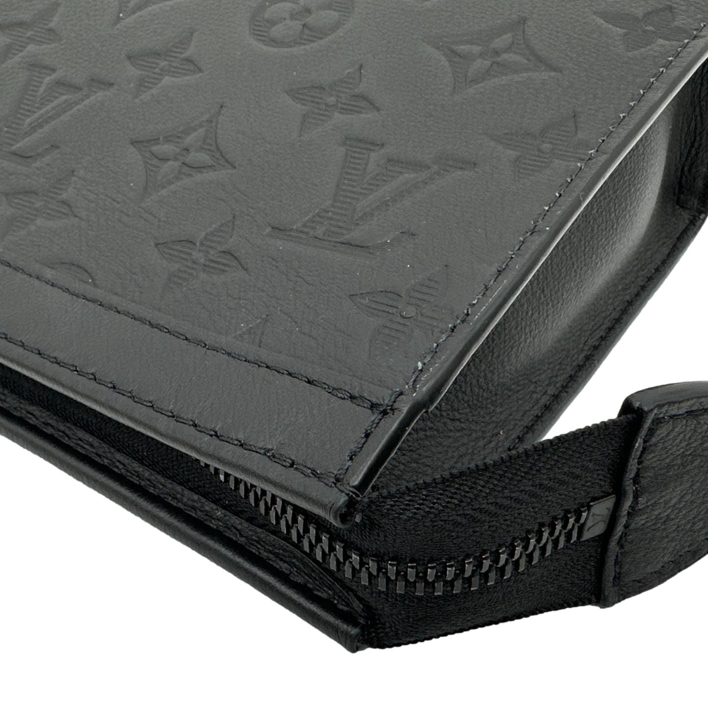 LOUIS VUITTON Gaston Wearable crossbody bag crafted in Monogram Shadow leather with a sleek black finish. Modern and compact design with multiple compartments and an adjustable strap for versatile everyday use.