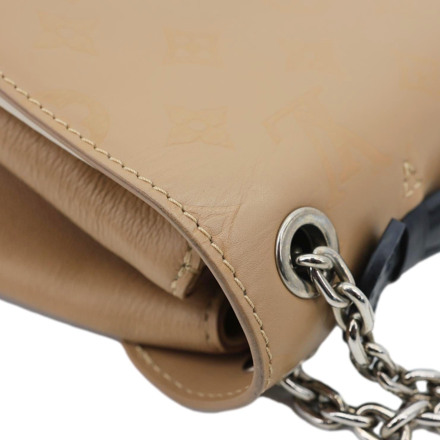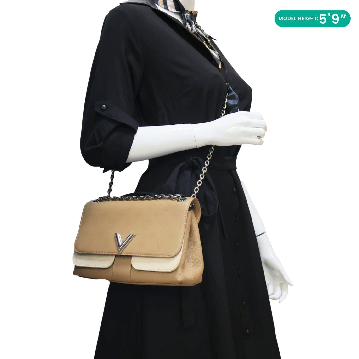 LOUIS VUITTON Very Chain Monogram Cuir Plume Écume shoulder bag in light Monogram Cuir Plume leather with subtle LV embossing and elegant chain strap. Soft yet structured, perfect for refined everyday wear with a modern luxury touch. Chic and versatile, ideal for carrying essentials in effortless designer style.