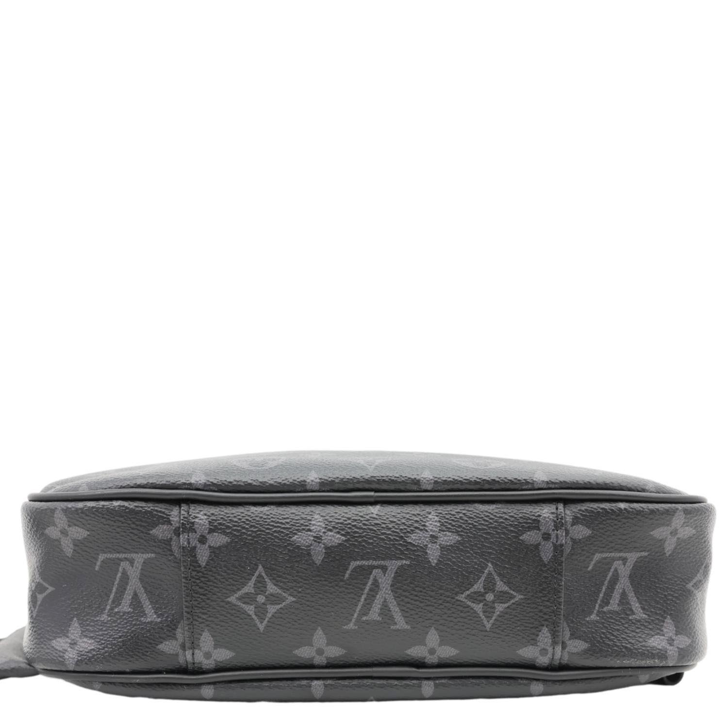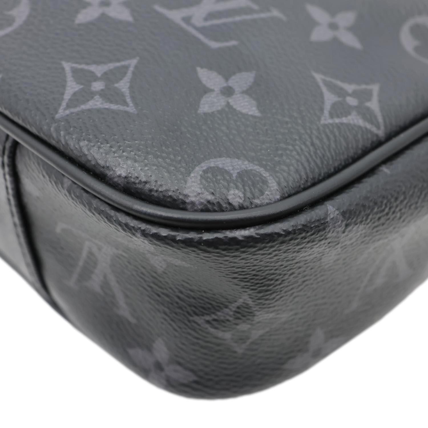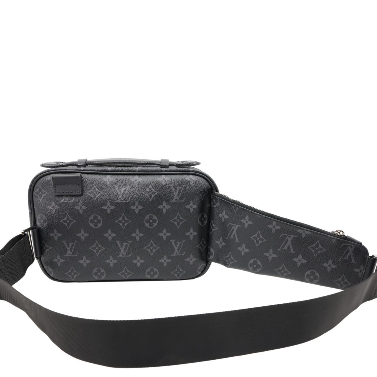 LOUIS VUITTON Explorer Monogram Eclipse Canvas Bumbag Black features sleek Monogram Eclipse canvas with black leather trim and silver-tone hardware. Compact and sporty, it offers hands-free convenience with a modern luxury edge.