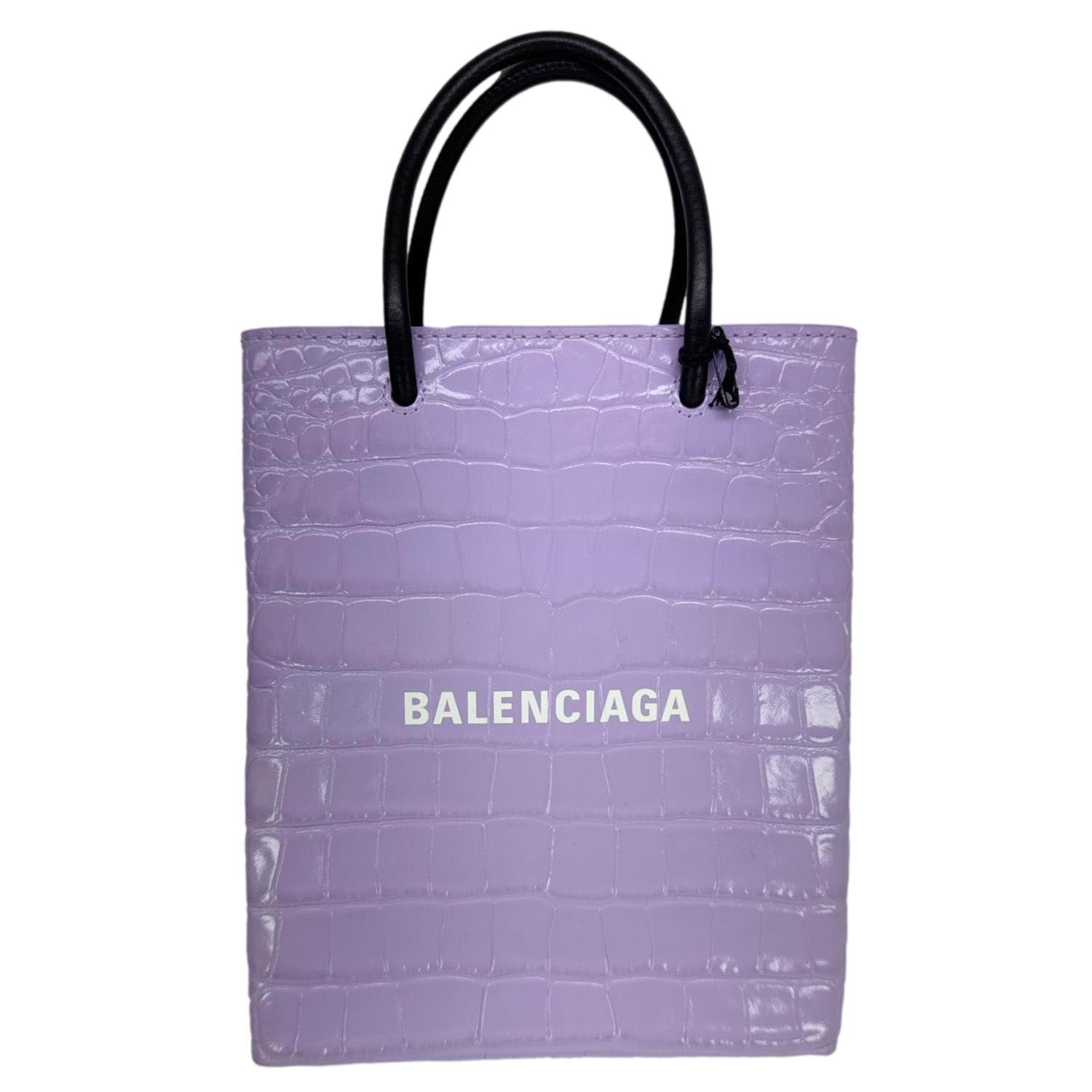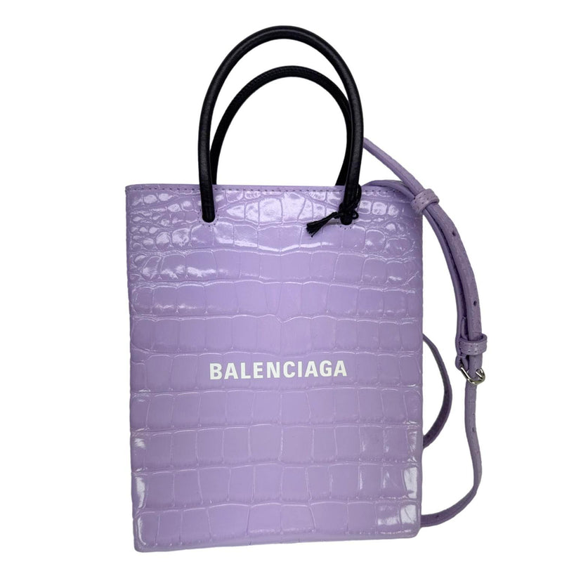 BALENCIAGA Small Leather Shopping Tote Bag Purple