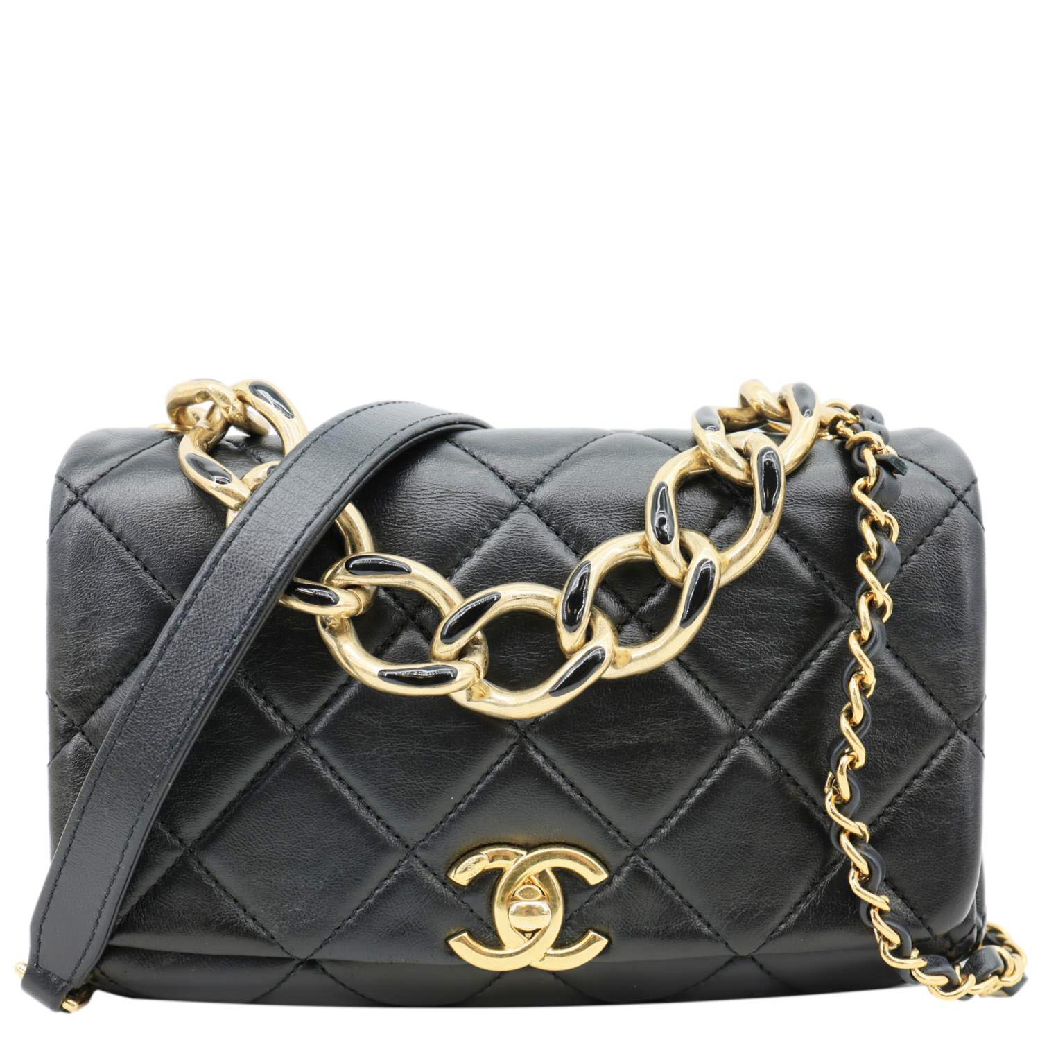 CHANEL Match Flap Small Quilted Lambskin Leather Crossbody Bag Black