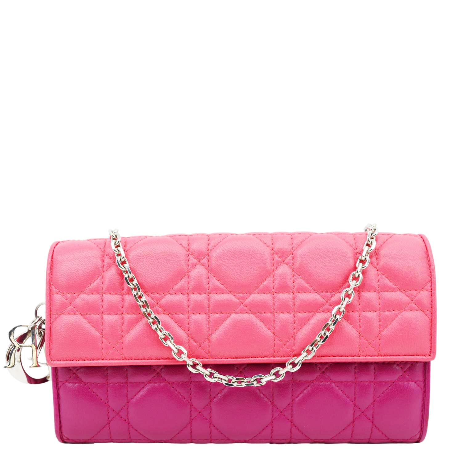 CHRISTIAN DIOR Lady Dior Quilted Cannage Leather Chain Wallet Pink