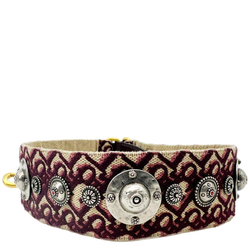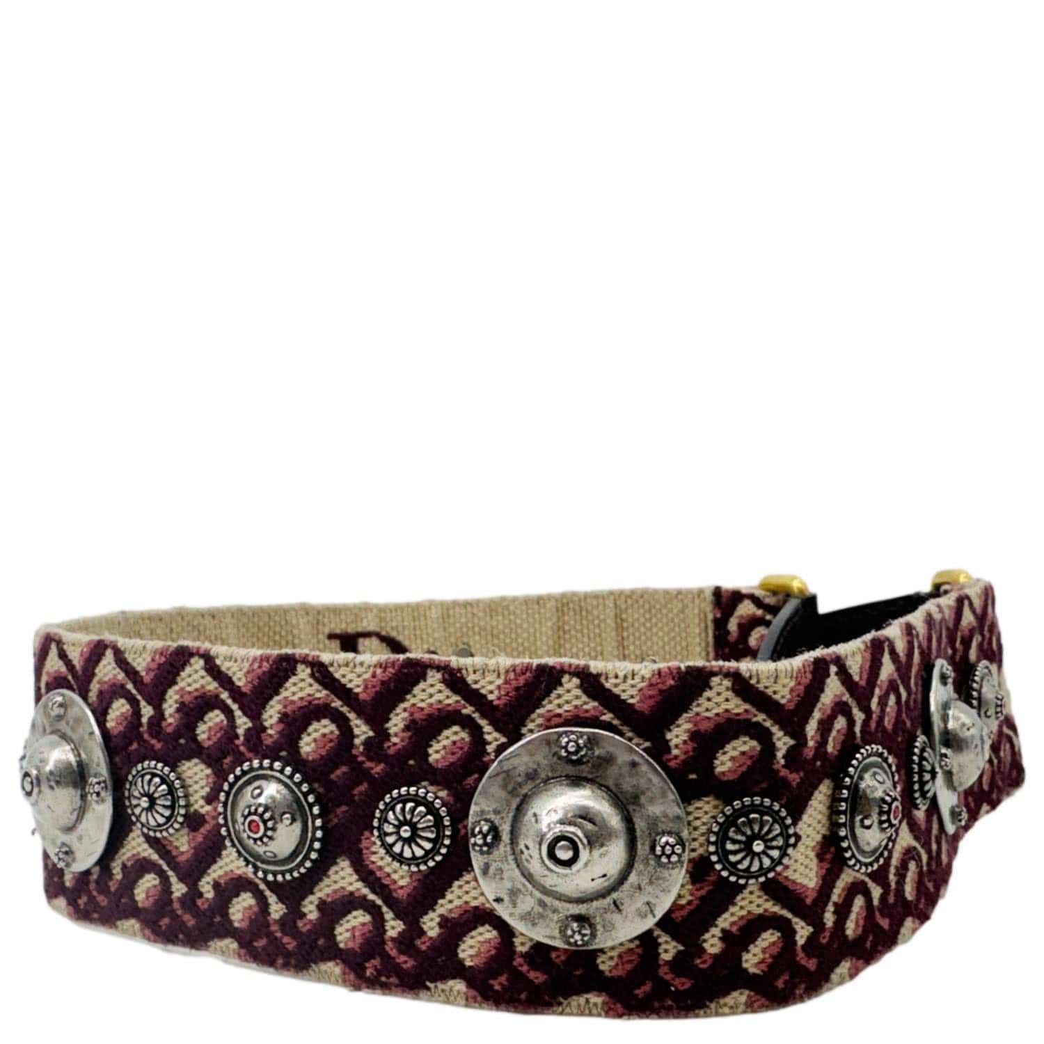 CHRISTIAN DIOR Studded Oblique Canvas Strap Burgundy