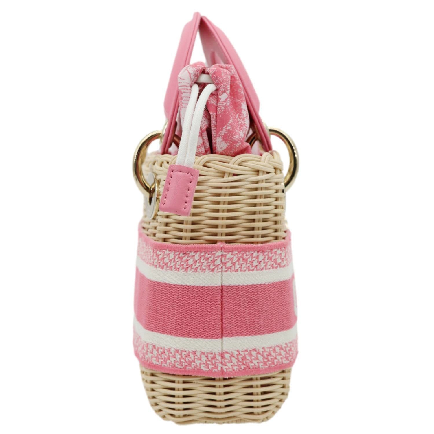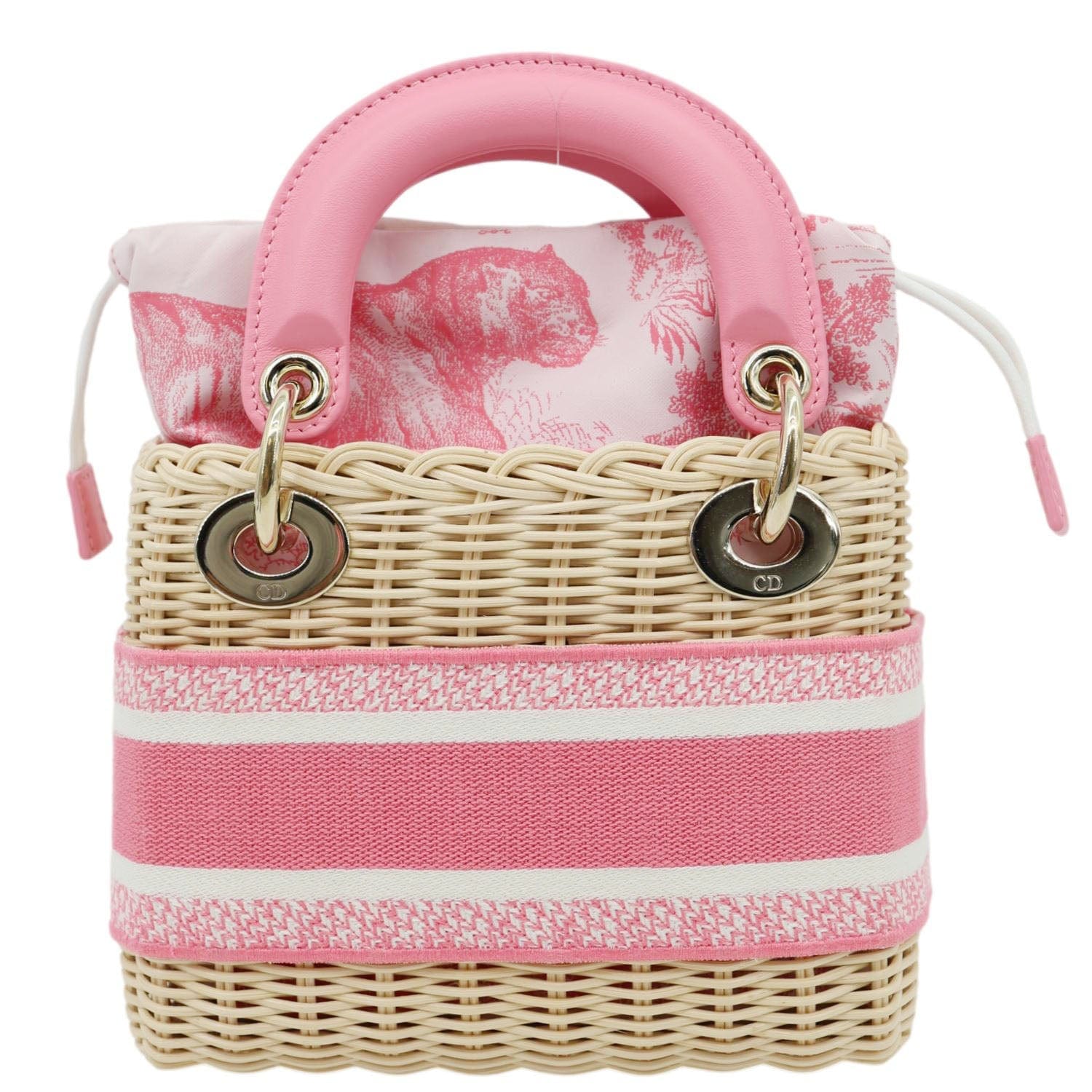 The Lady Dior Wicker Bag features the iconic Dior Oblique canvas with a wicker body in fluorescent pink accents. Elegant and bold, it blends classic craftsmanship with a modern statement look.