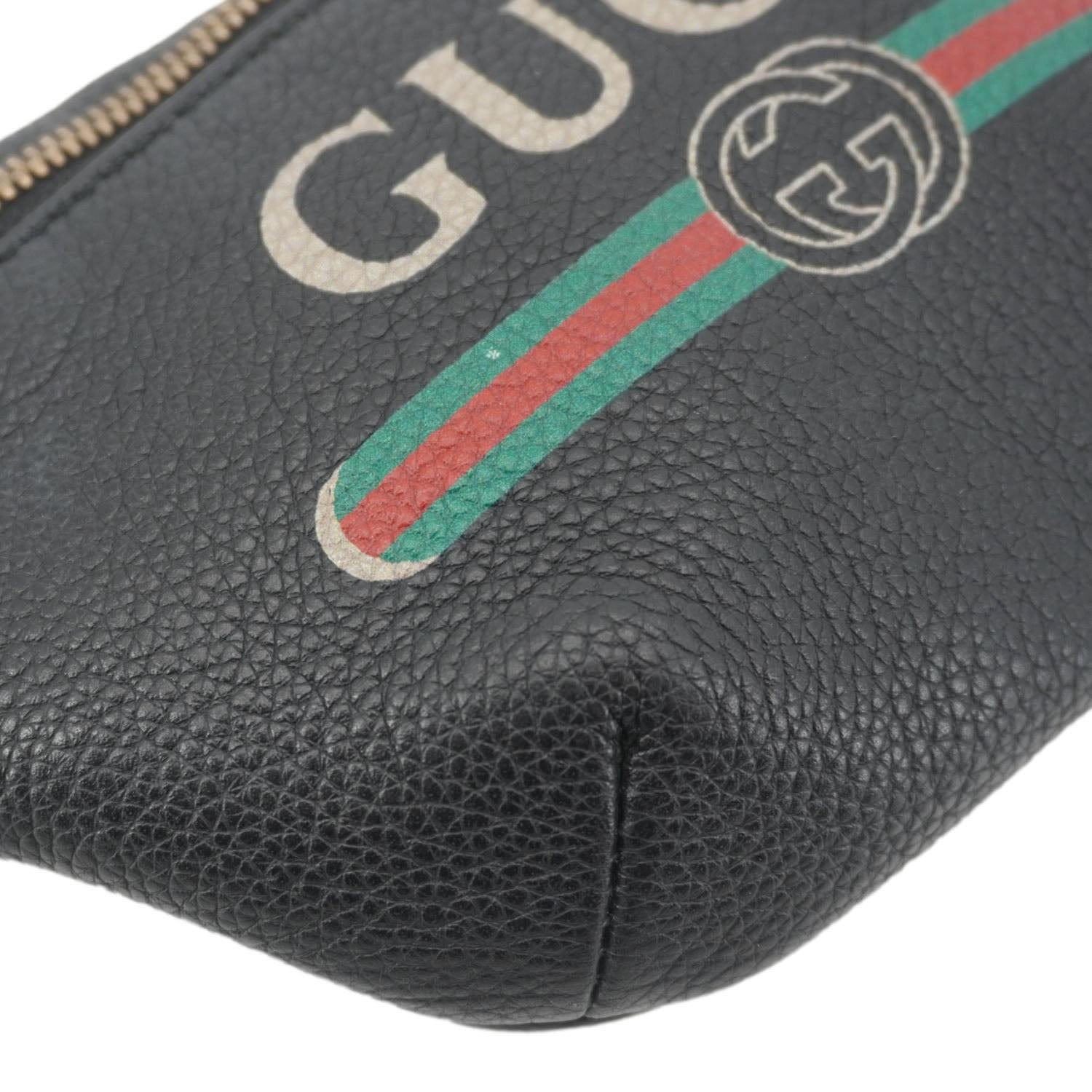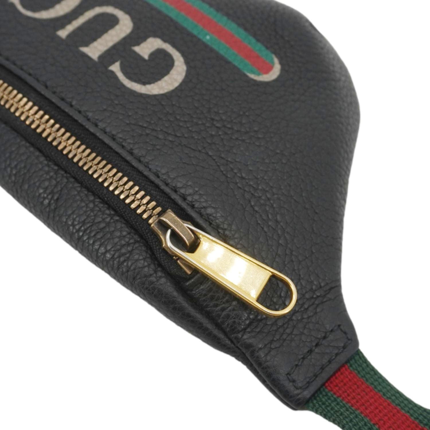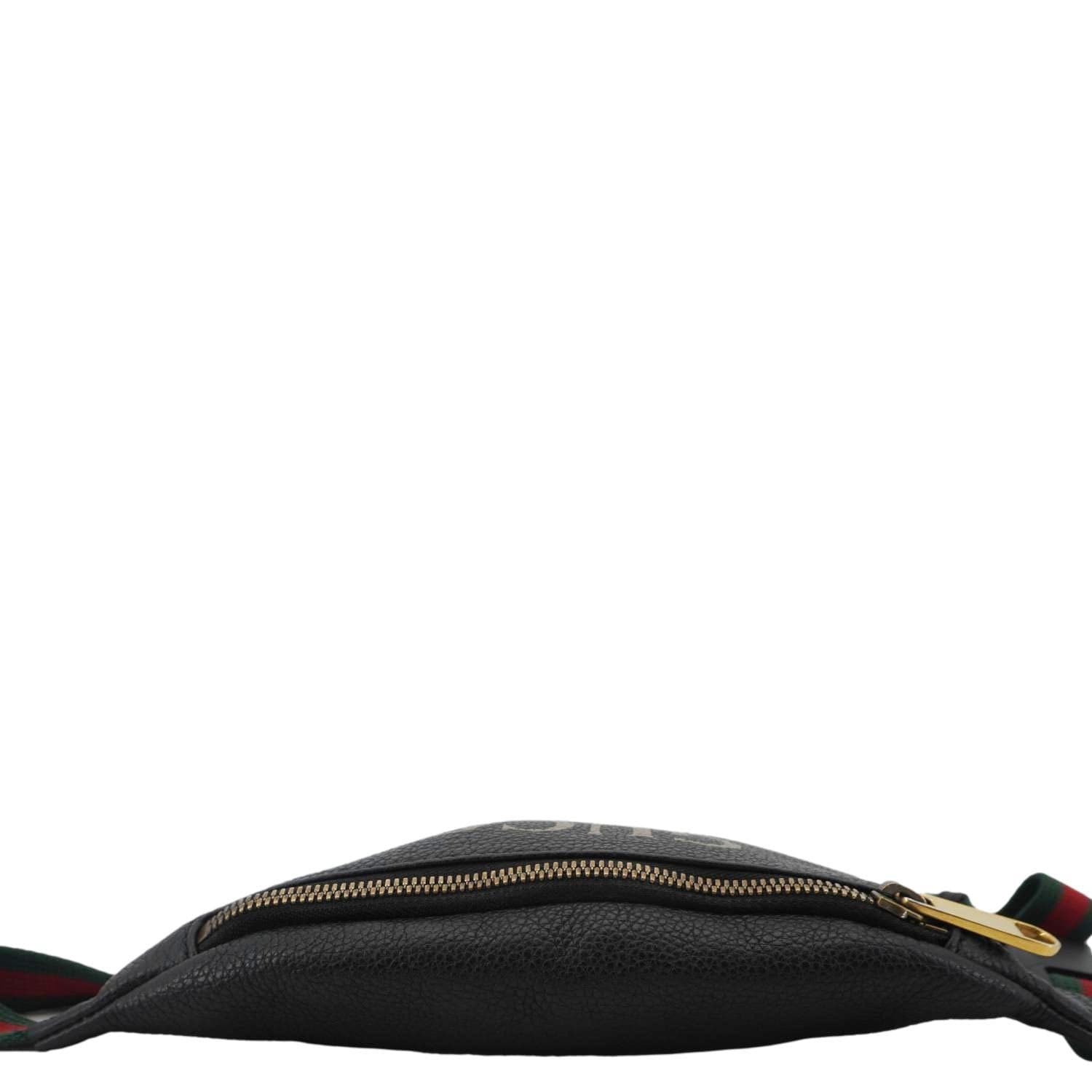 GUCCI Logo Print Small Grained Calfskin Leather Belt Bag Black 527792