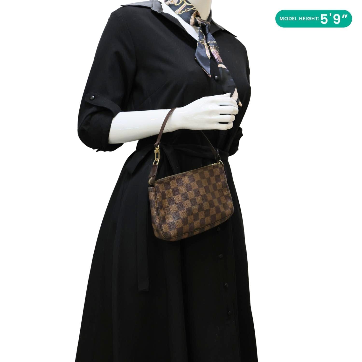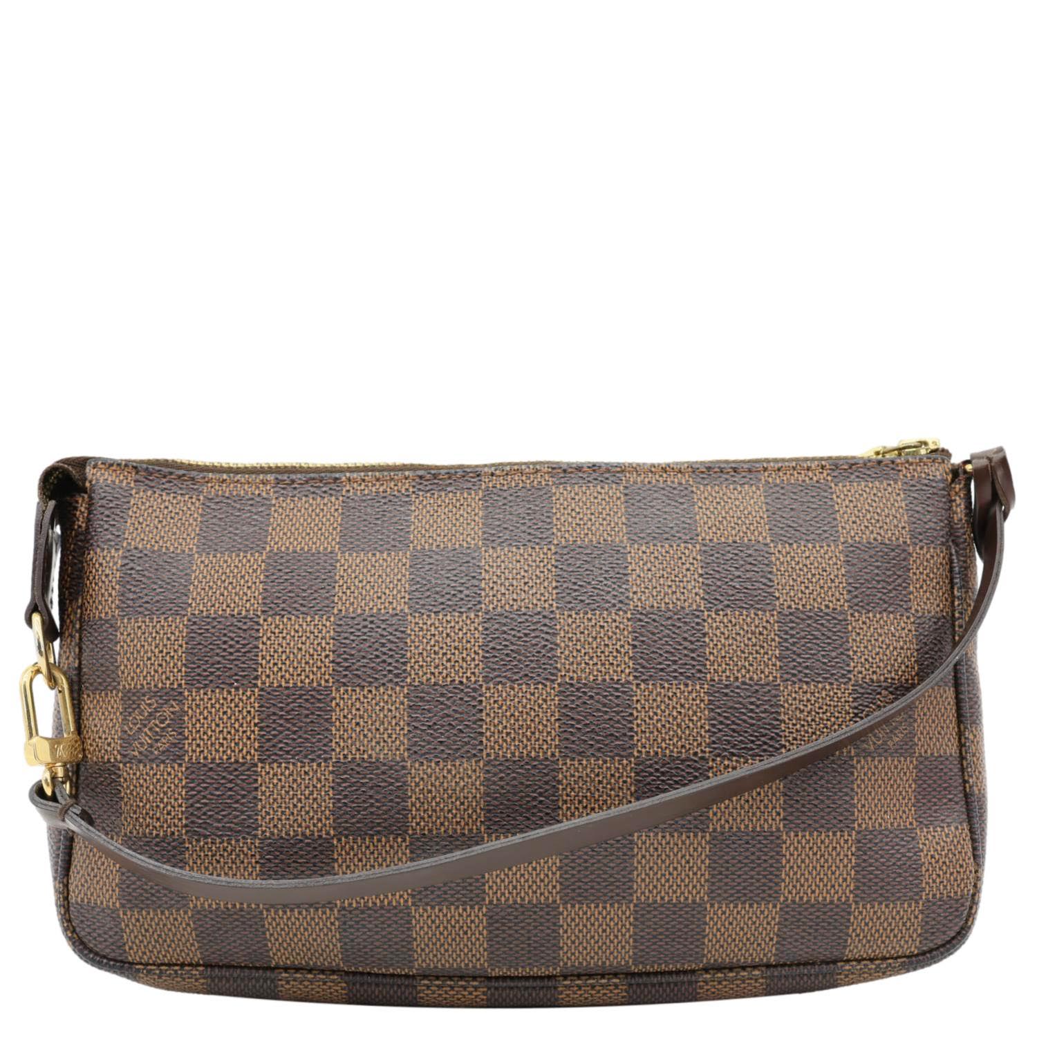 Iconic Louis Vuitton Pochette Accessoires crafted in Damier Ebene coated canvas in classic brown. A versatile pouch with a sleek silhouette, perfect for carrying daily essentials in style.