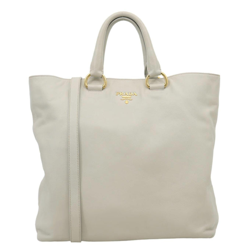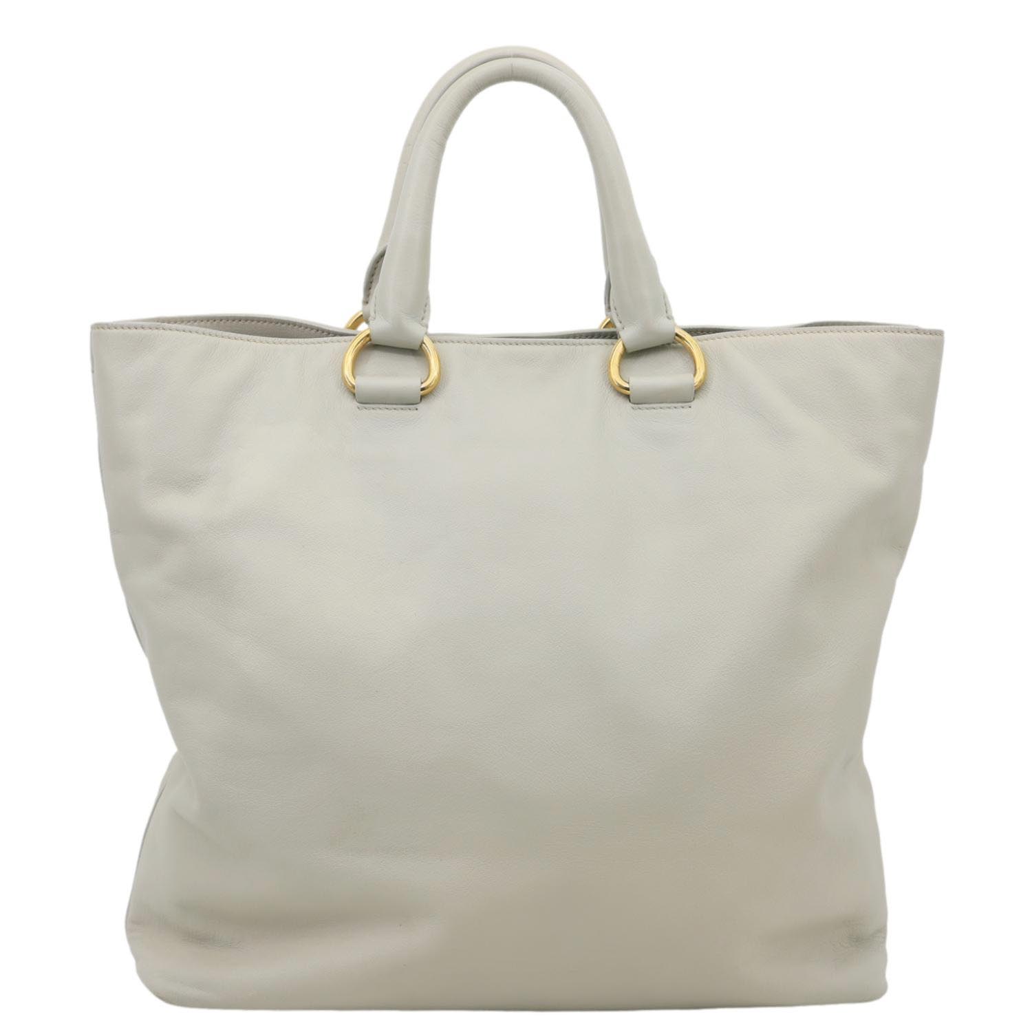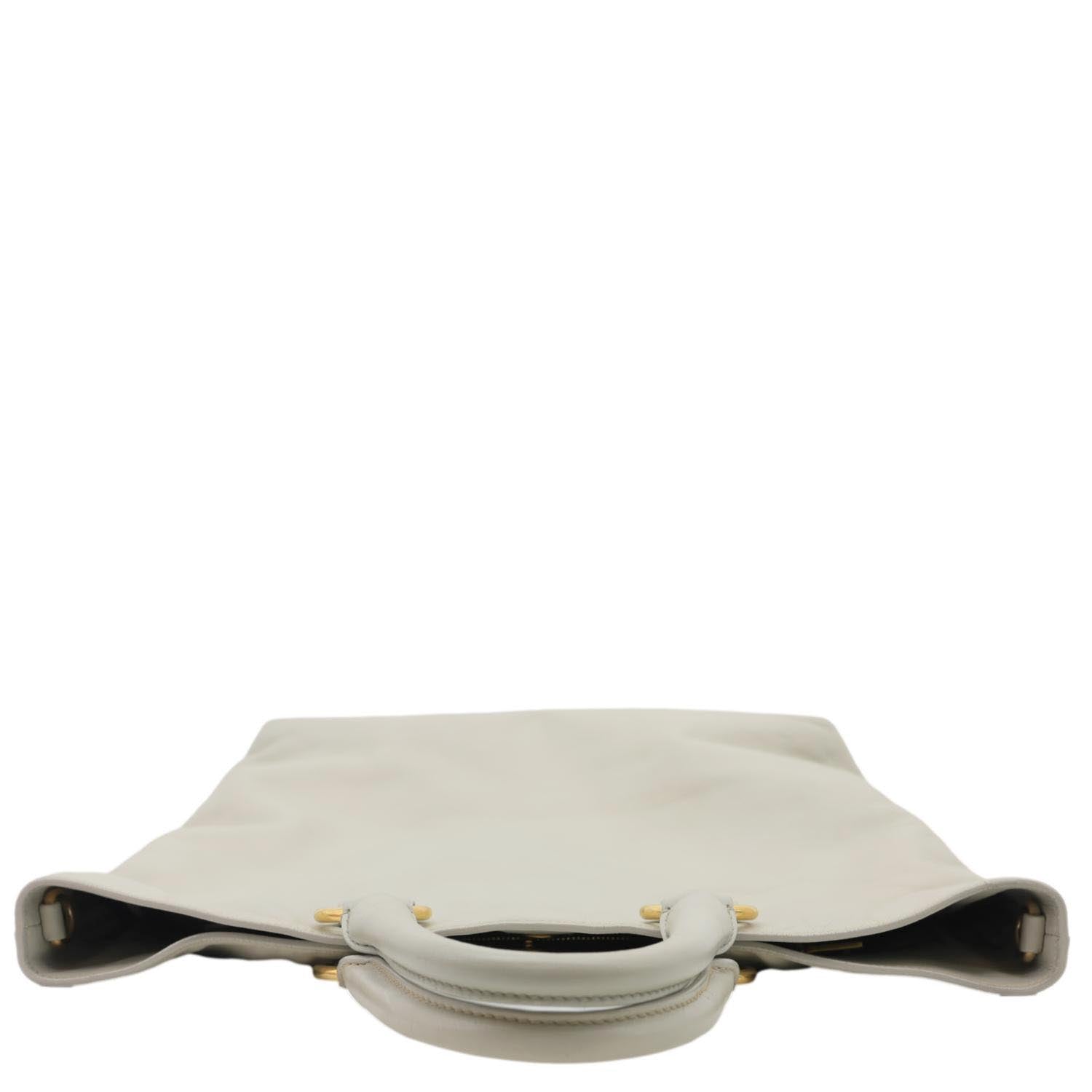 Vitello Daino Leather Shopping Tote Bag Beige