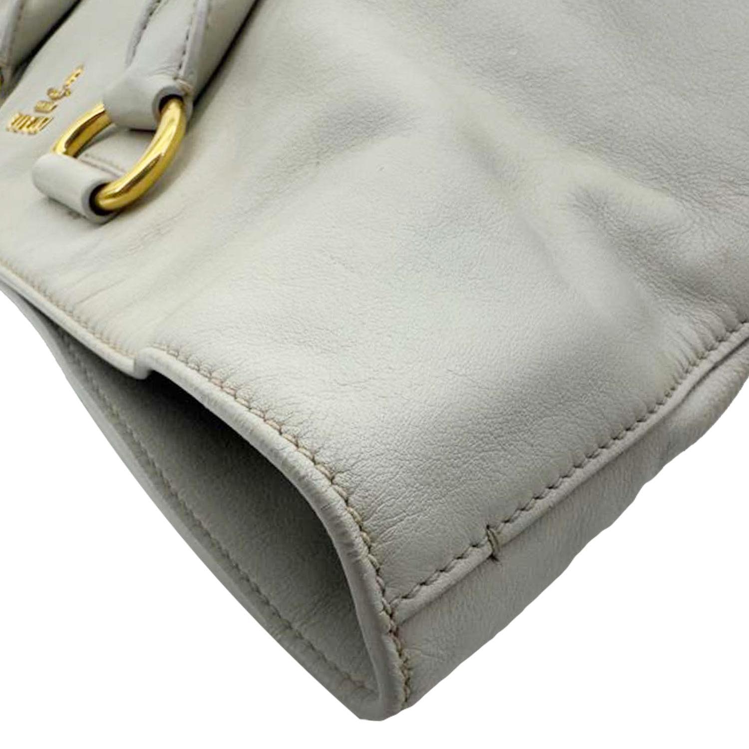 The Prada Vitello Daino shopping tote is crafted from soft grained leather in a classic beige tone. Featuring a spacious interior and refined silhouette, it’s a versatile everyday luxury tote.