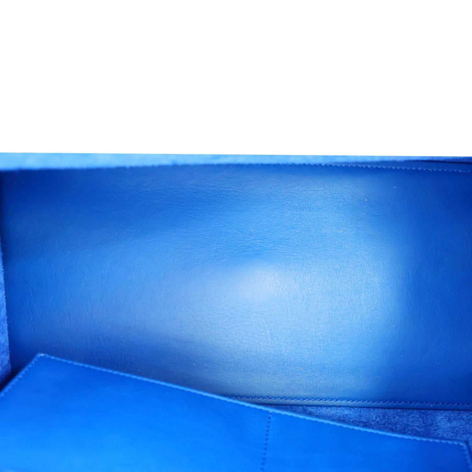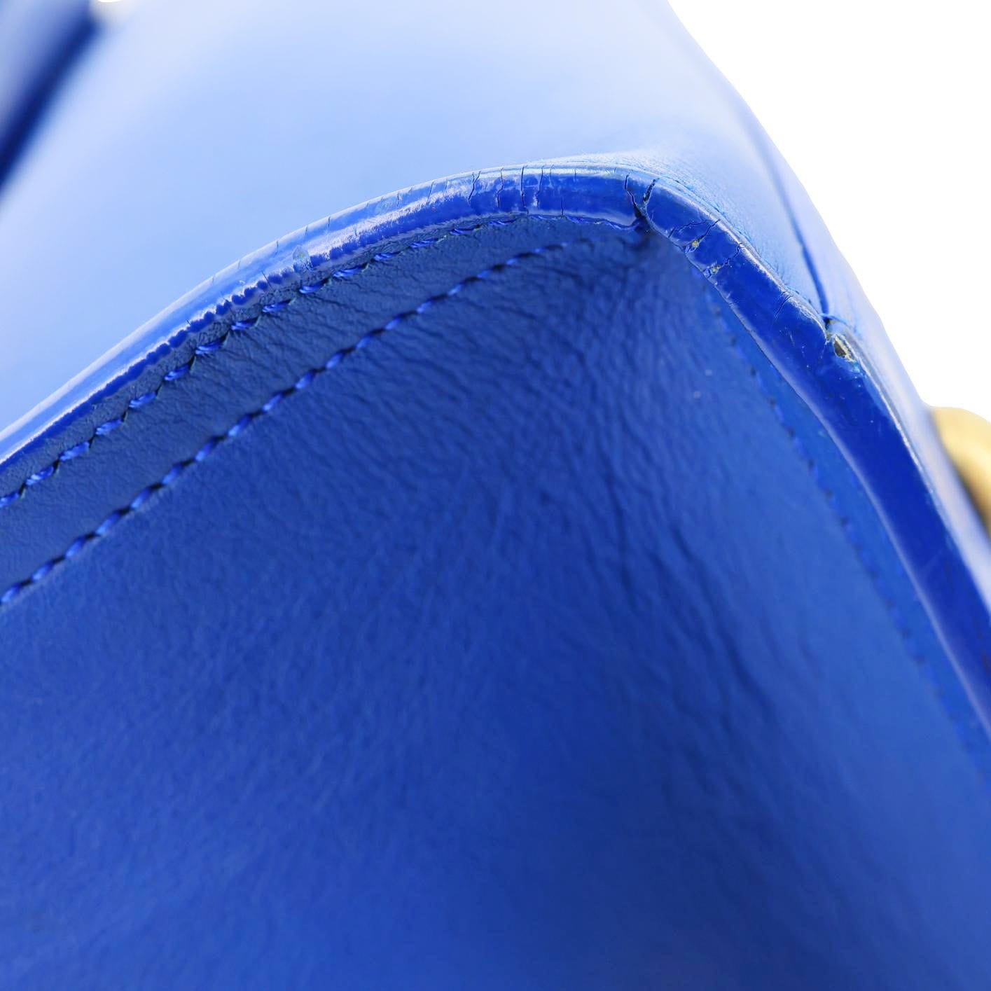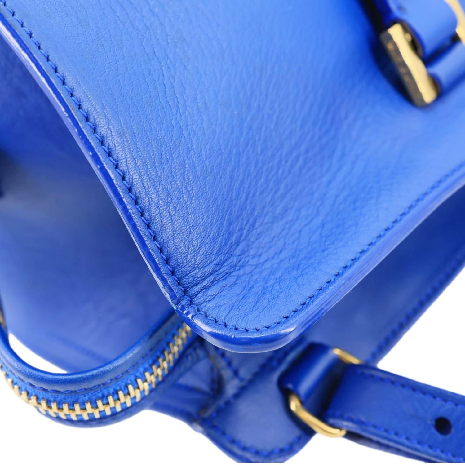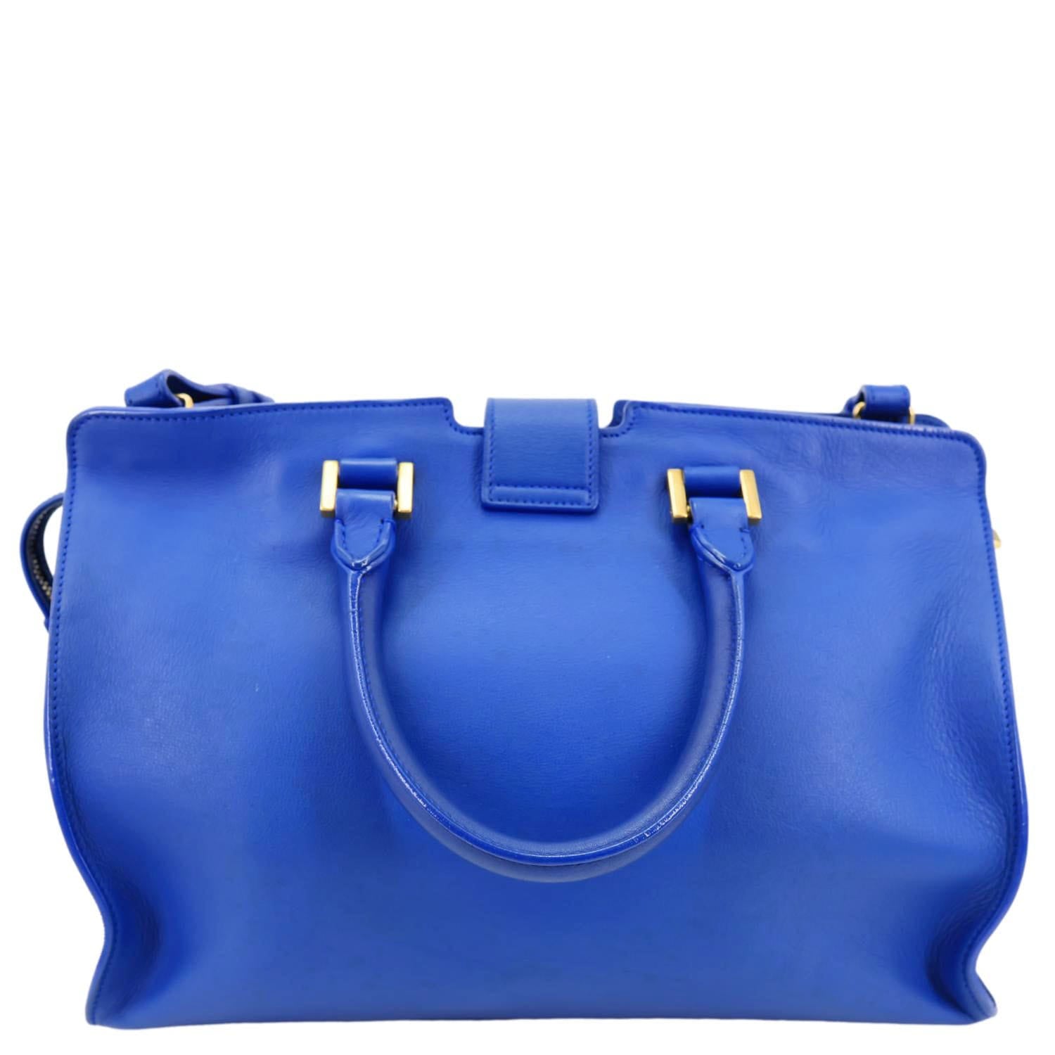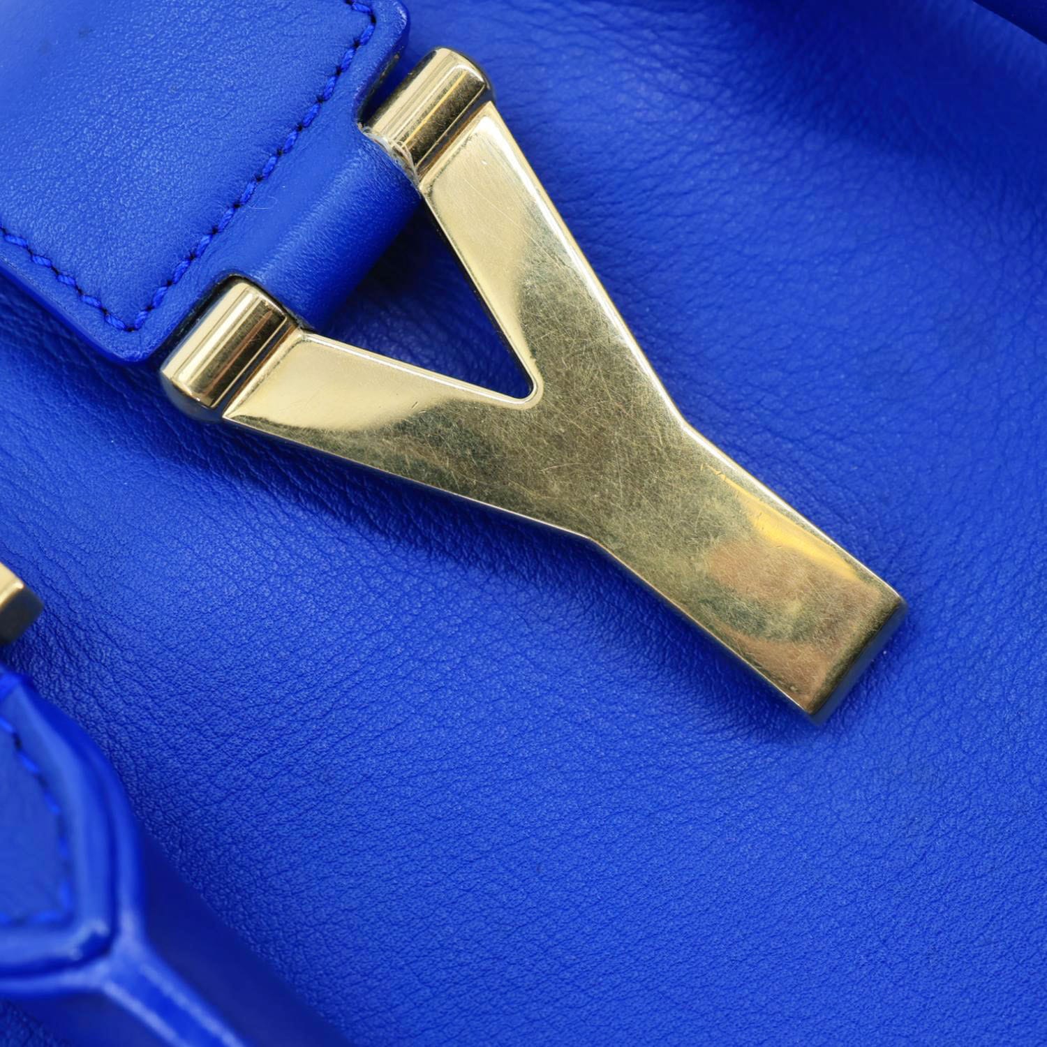 YVES SAINT LAURENT Cabas ChYc Small Crossbody Bag in blue leather featuring the iconic Y-shaped logo detail with a structured, elegant silhouette. Compact yet functional with top handles and a detachable strap, perfect for versatile day-to-evening luxury wear.
