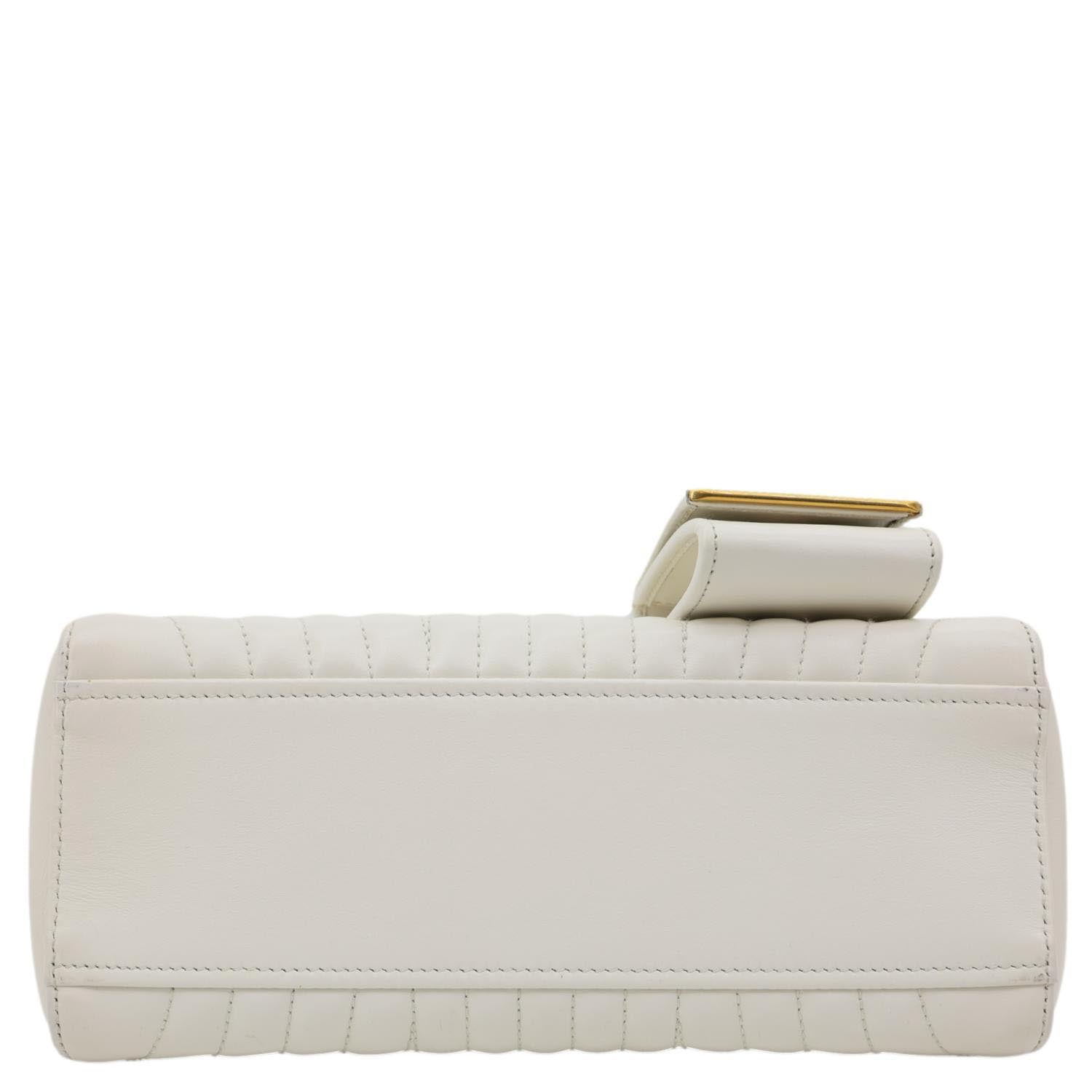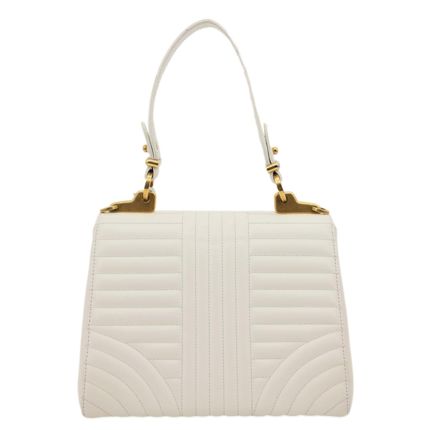 PRADA Diagramme Flap Leather Crossbody Bag White features signature quilted leather with a sleek flap silhouette and metal logo detail. Finished with a chain shoulder strap, it offers a refined and timeless look.