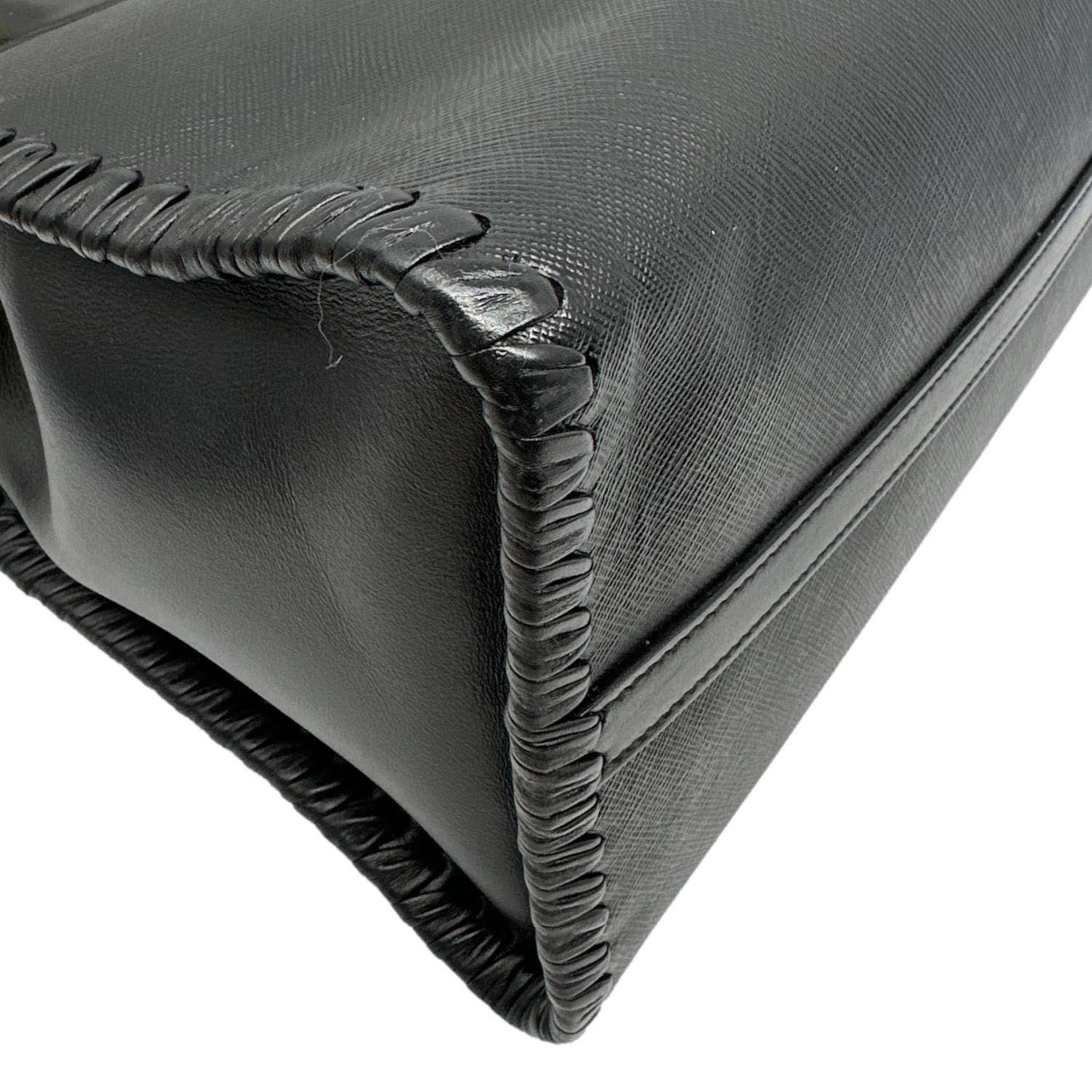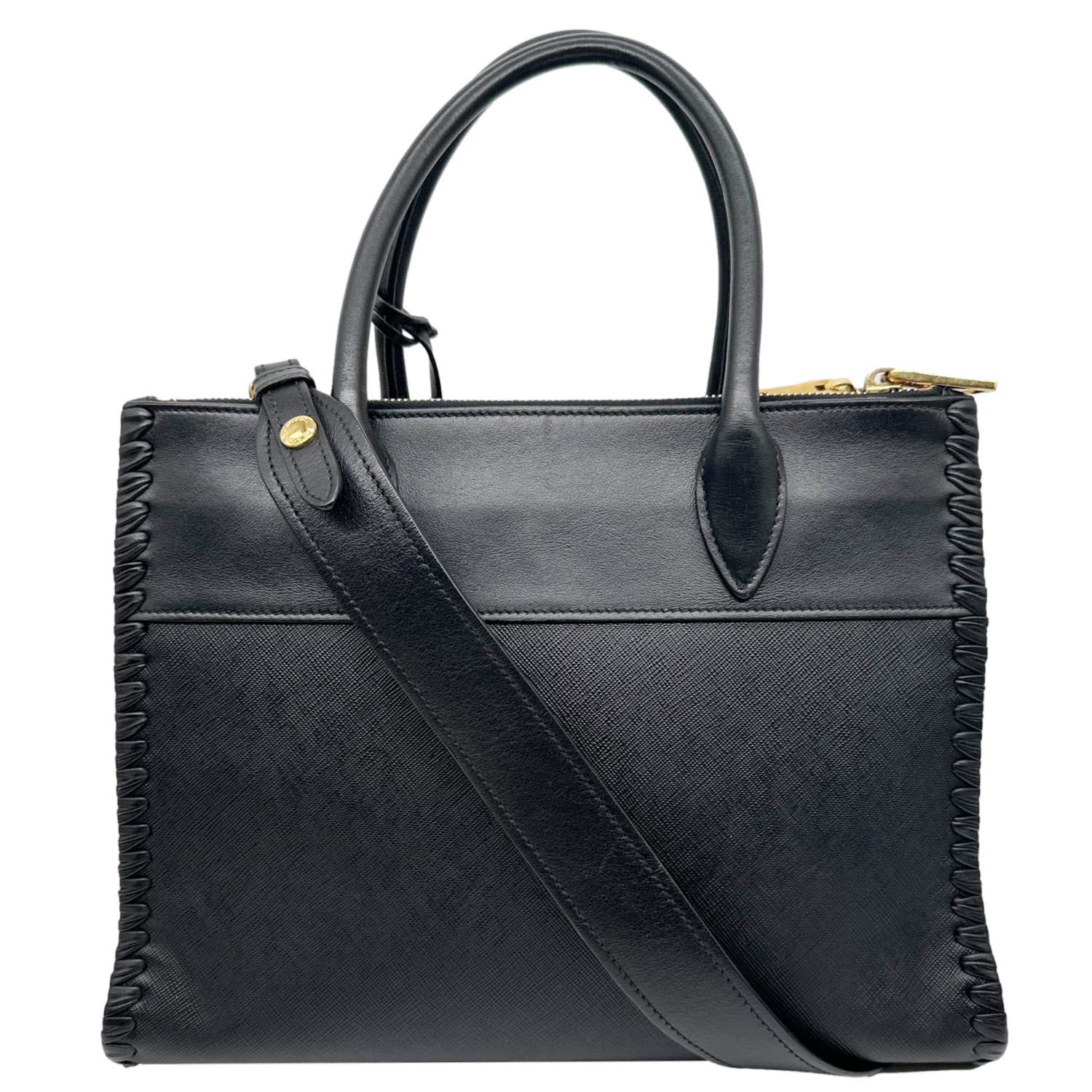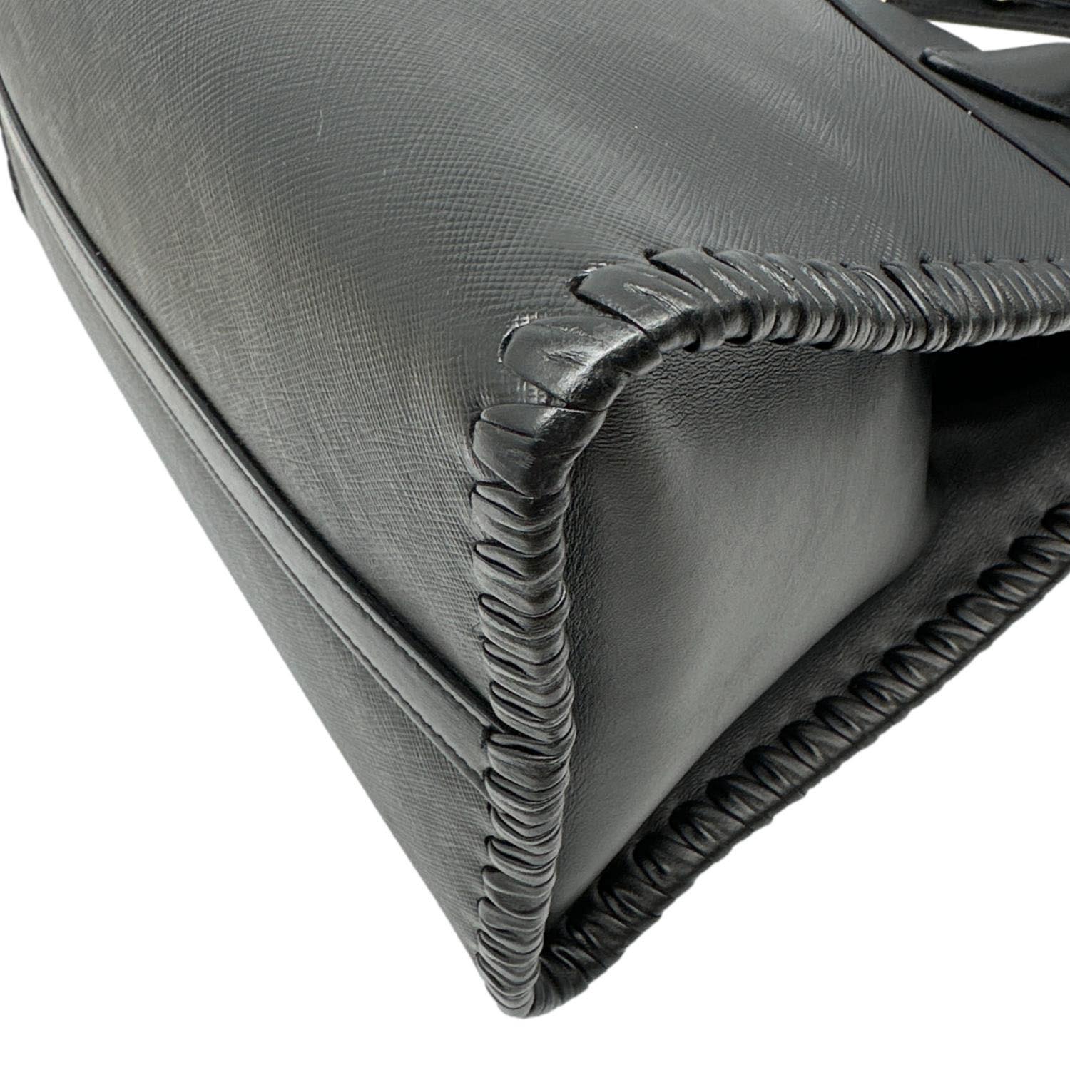 Prada Paradigme Tote in black combines saffiano and calf leather for a sleek, structured silhouette. Featuring a spacious interior and refined hardware, it’s perfect for elevated everyday luxury.