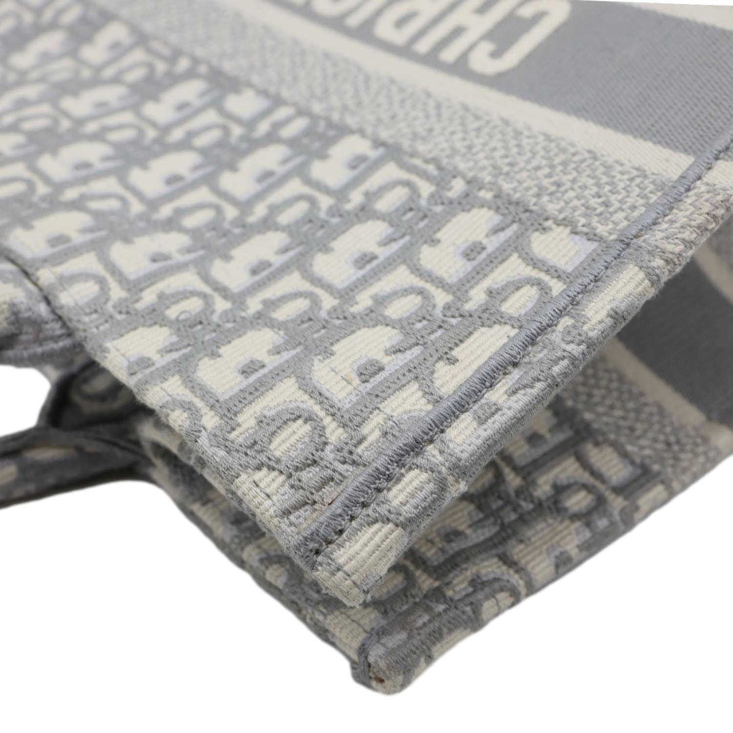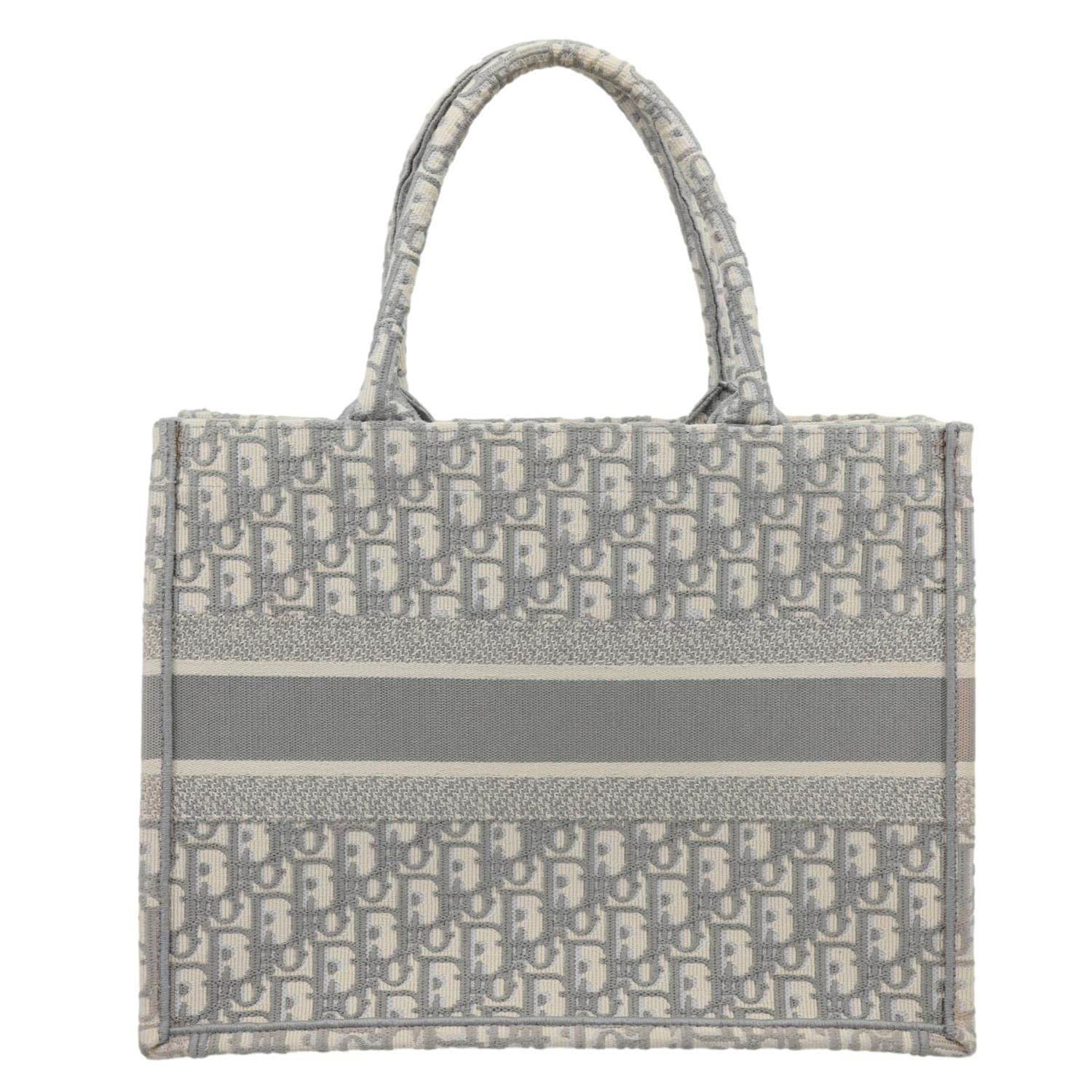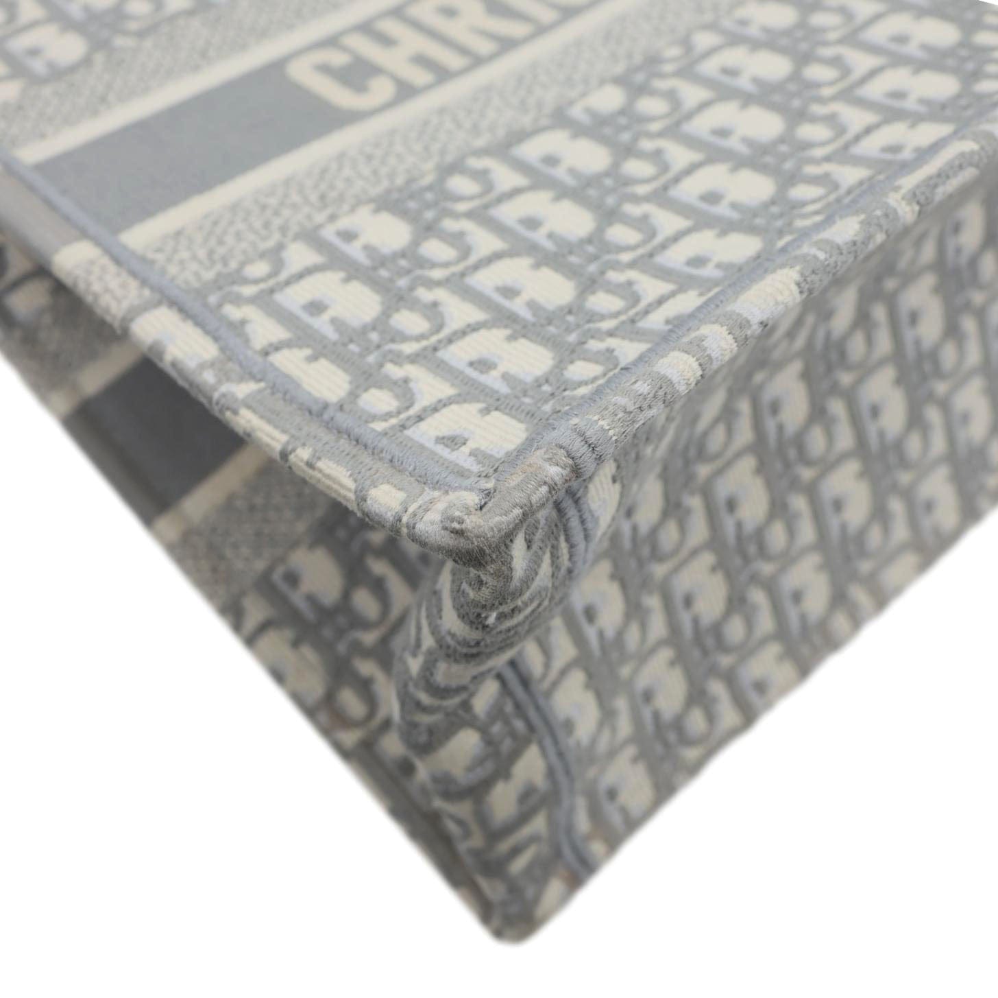 CHRISTIAN DIOR Book Medium Oblique Canvas Tote Bag in Grey showcases the signature. Dior Oblique pattern. A structured, spacious design ideal for everyday elegance and travel.