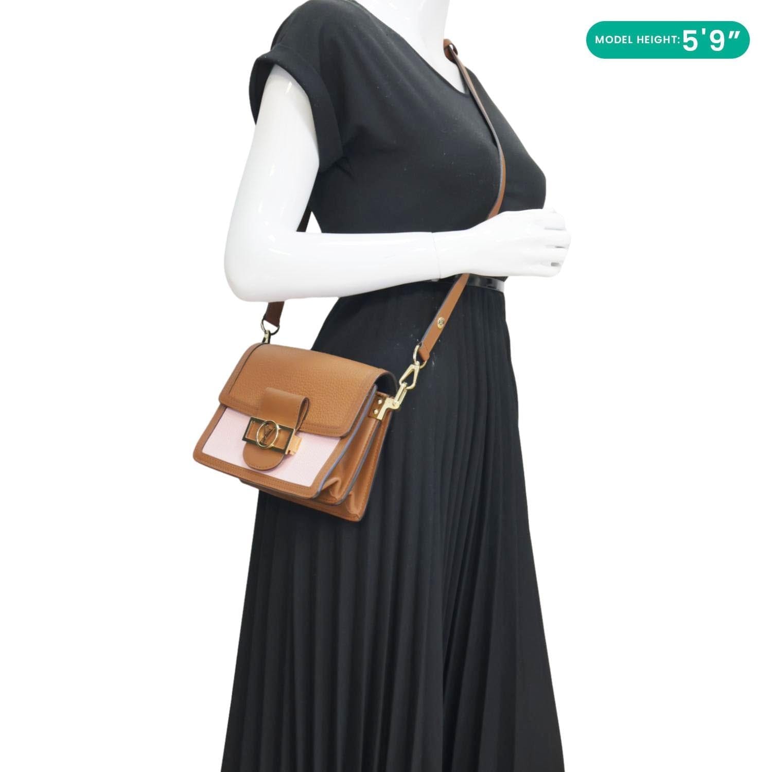 The LOUIS VUITTON Dauphine Mini Taurillon Leather Shoulder Bag in pink is a stylish and feminine accessory, featuring soft Taurillon leather and a magnetic lock closure. This bag offers a touch of elegance and sophistication, perfect for everyday use.