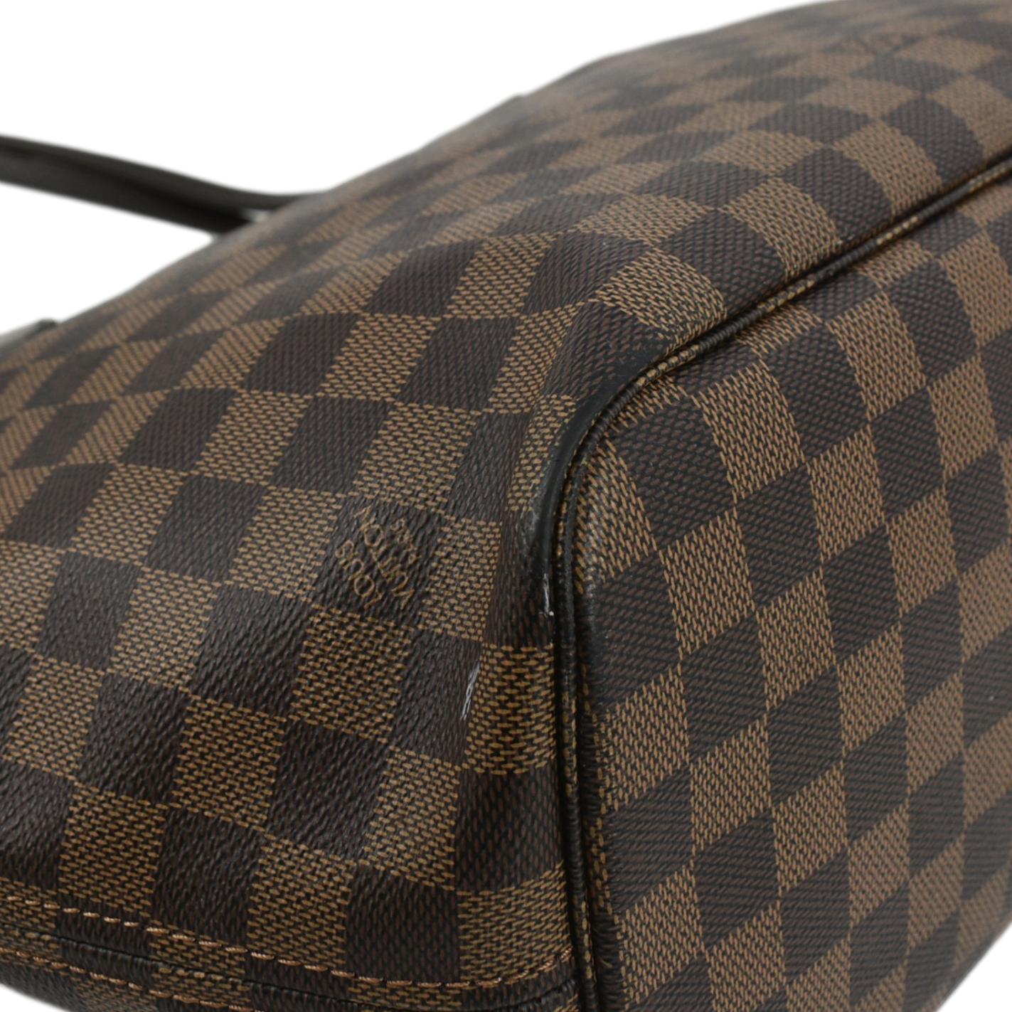 - Material: Damier Ebene with leather trim