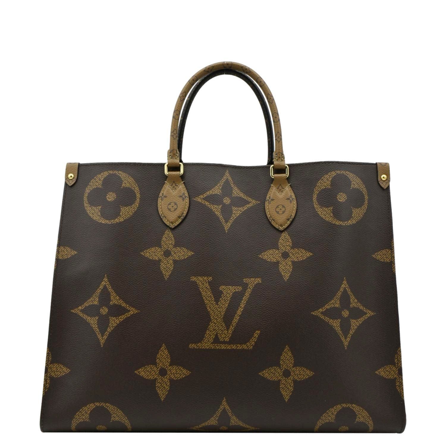 LOUIS VUITTON Onthego GM Giant Monogram Canvas Tote Bag Brown