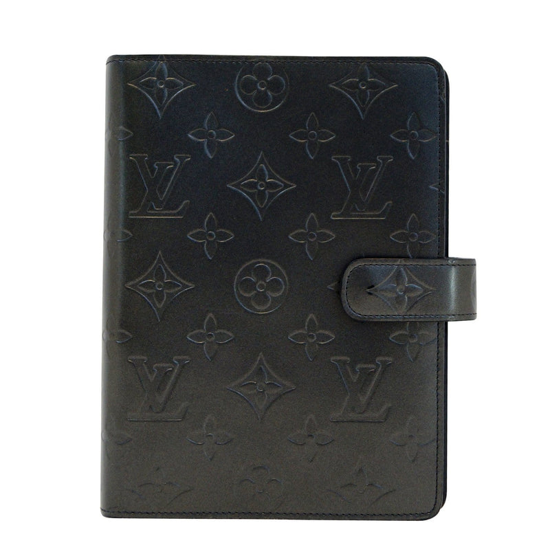 LOUIS VUITTON Monogram Mat Agenda MM Day Planner Cover Black