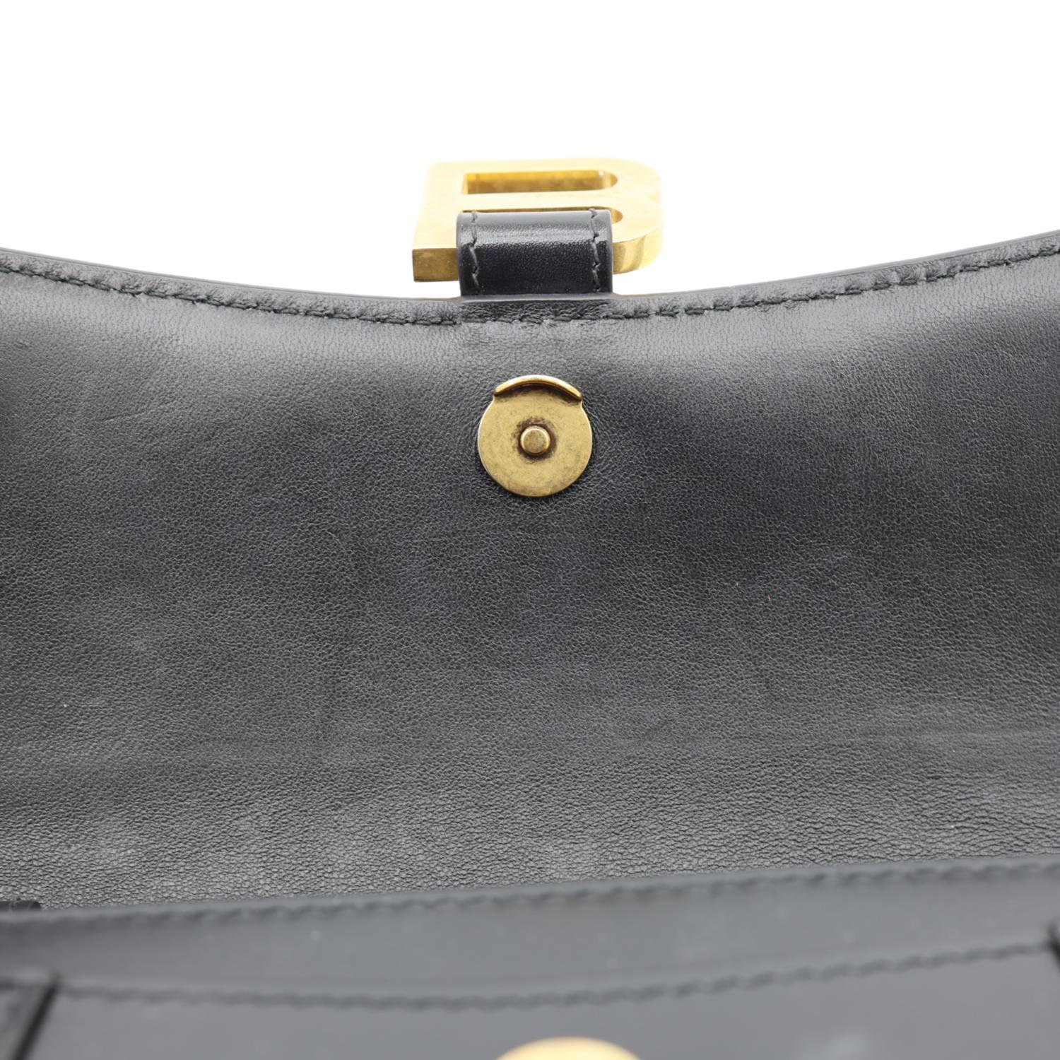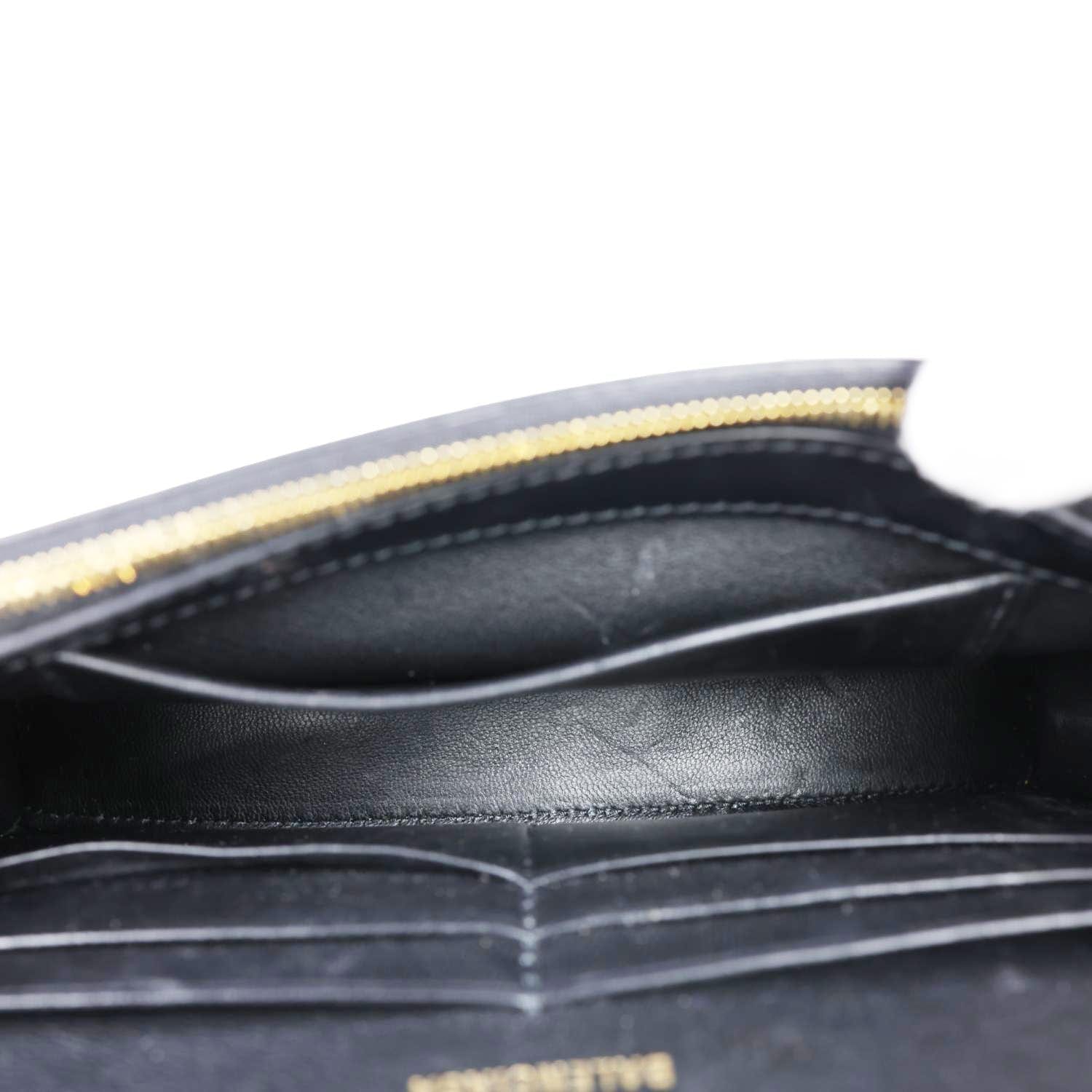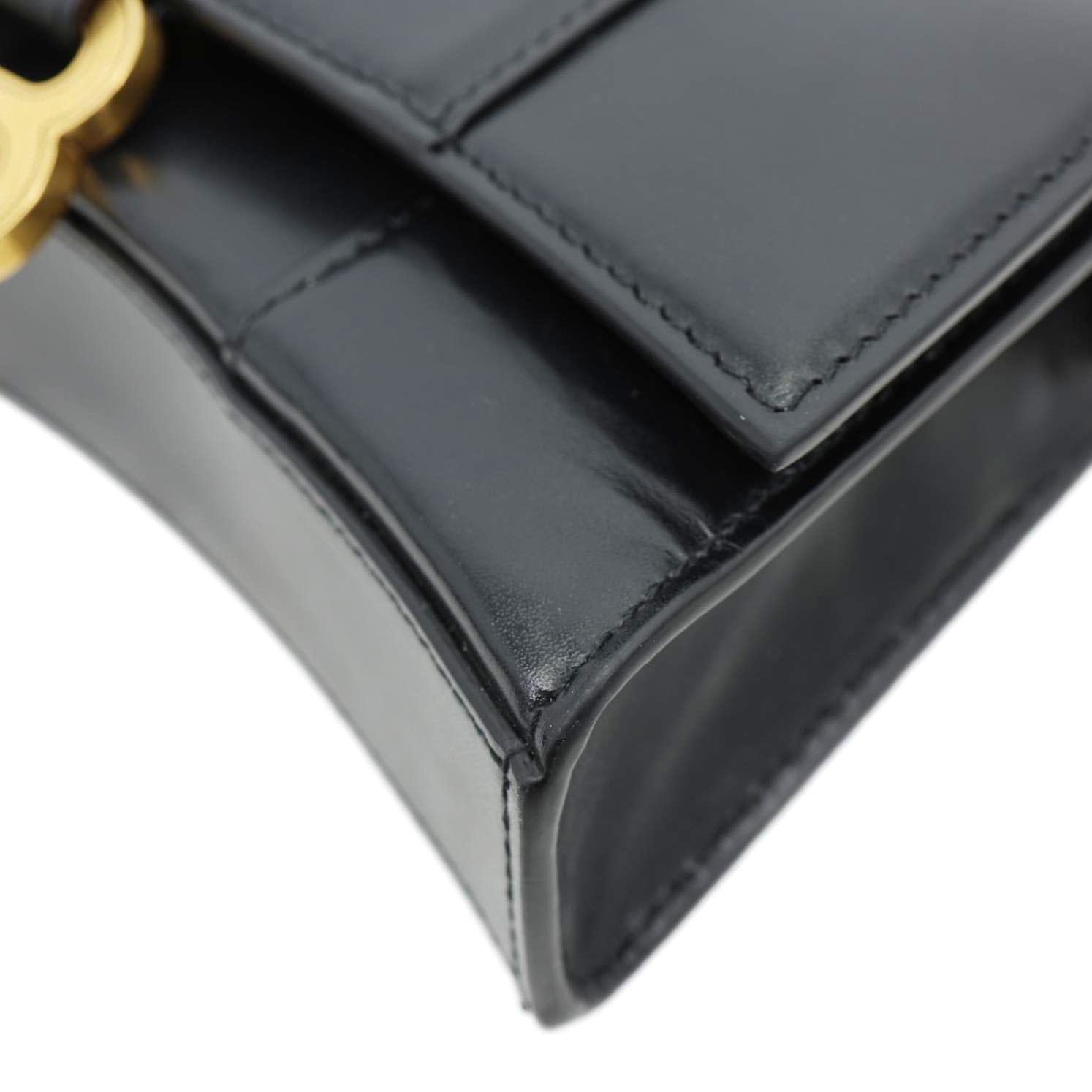 BALENCIAGA Hourglass Shiny Box Calfskin Leather Wallet On Chain Shoulder Bag Black