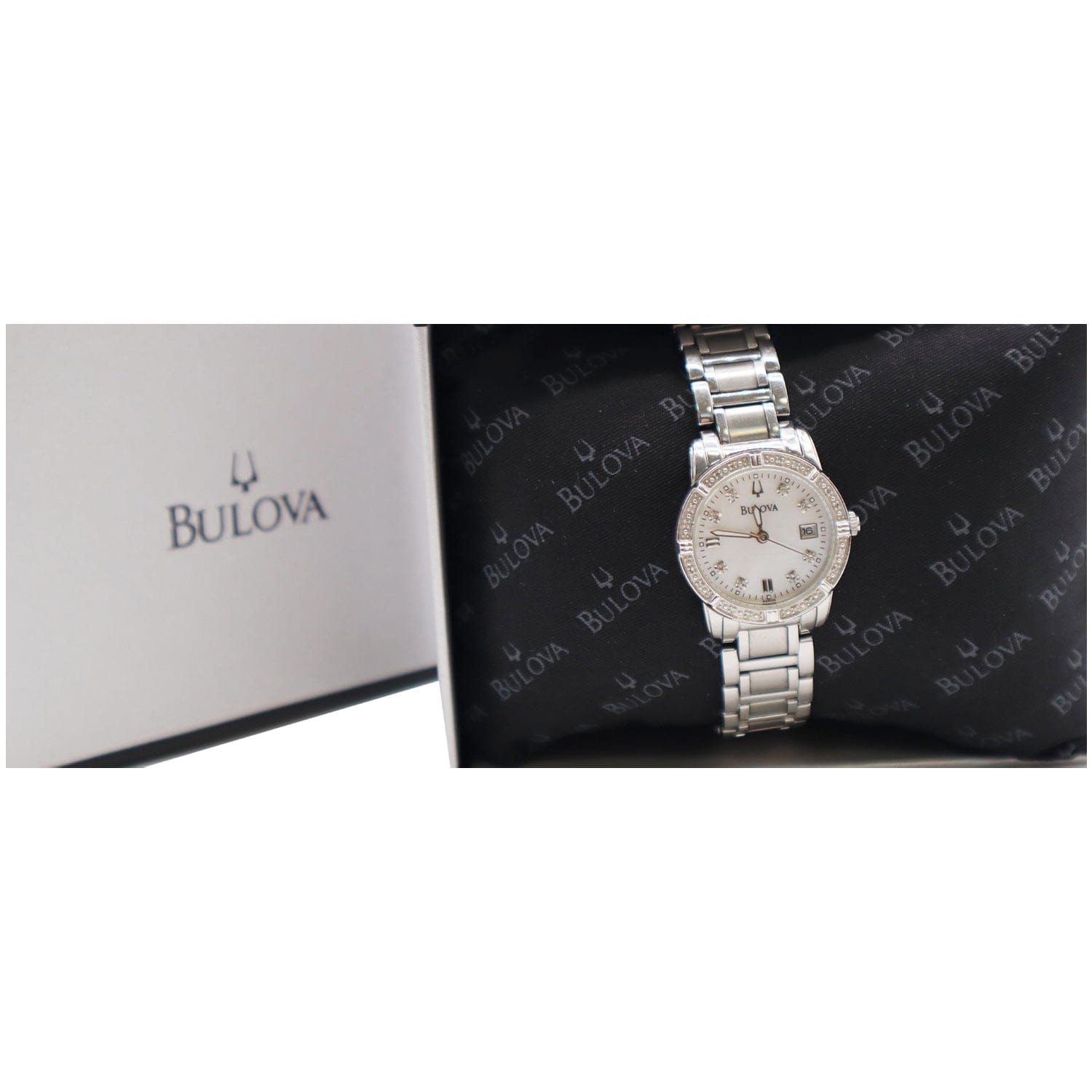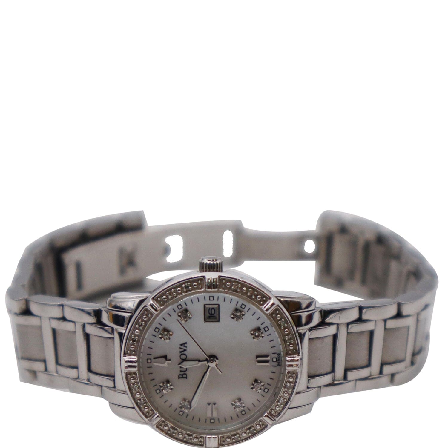 BULOVA Diamond Quartz Stainless Steel Date Watch Mother of Pearl Dial 28MM - 15% OFF
