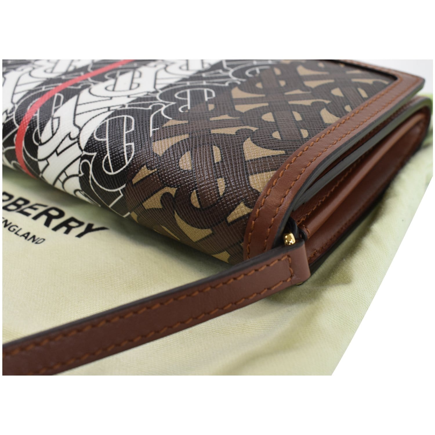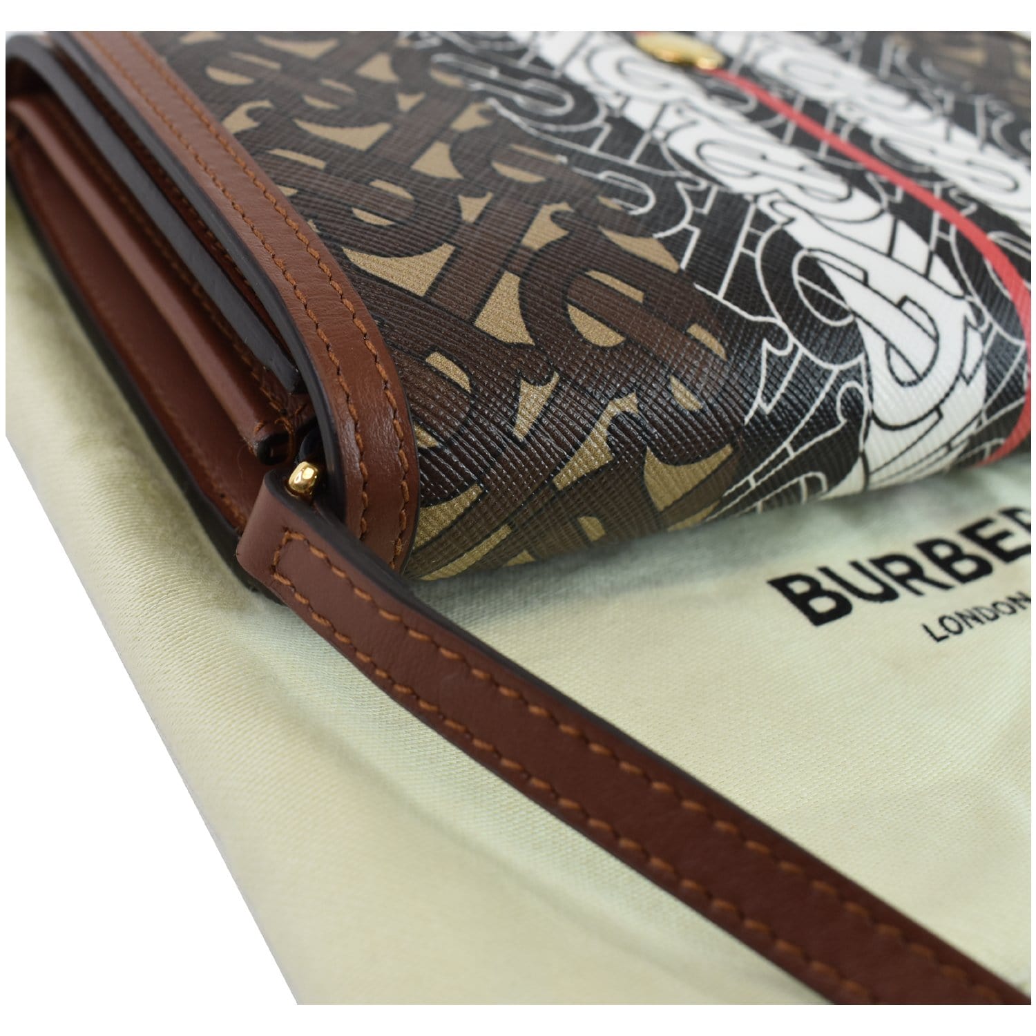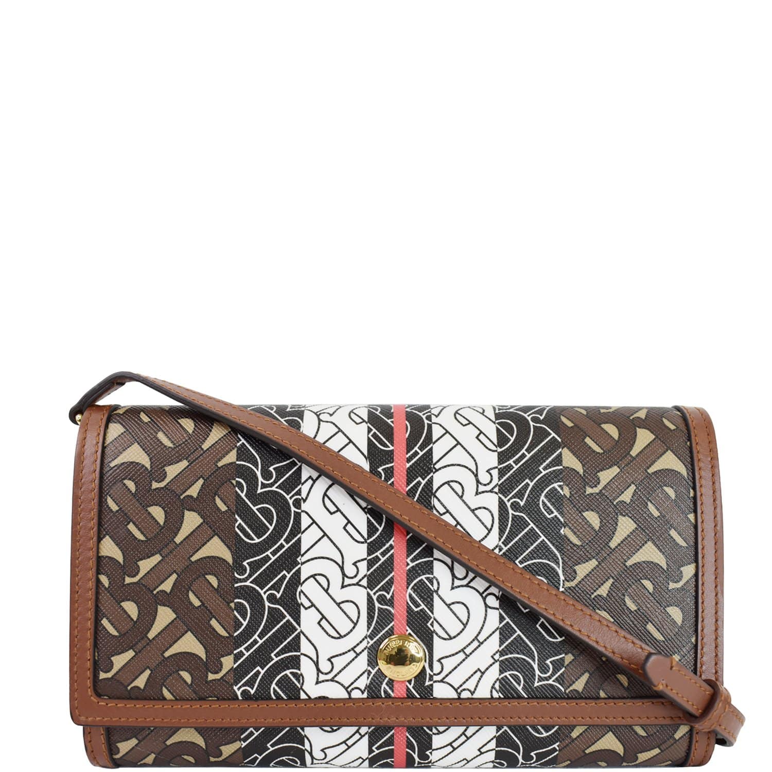 BURBERRY Monogram Stripe E-canvas Strap Wallet Brown